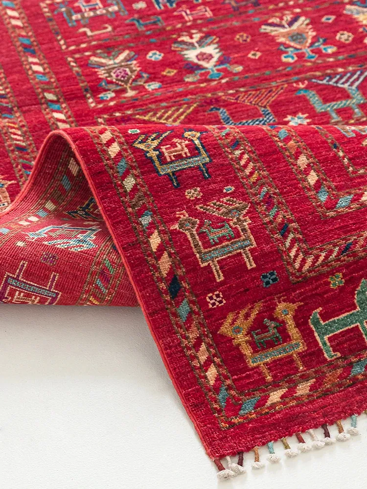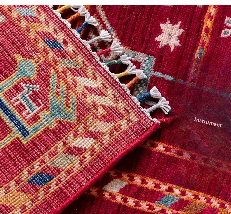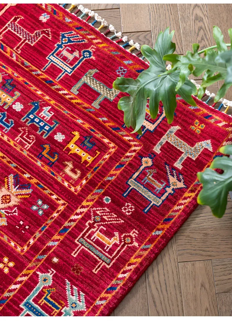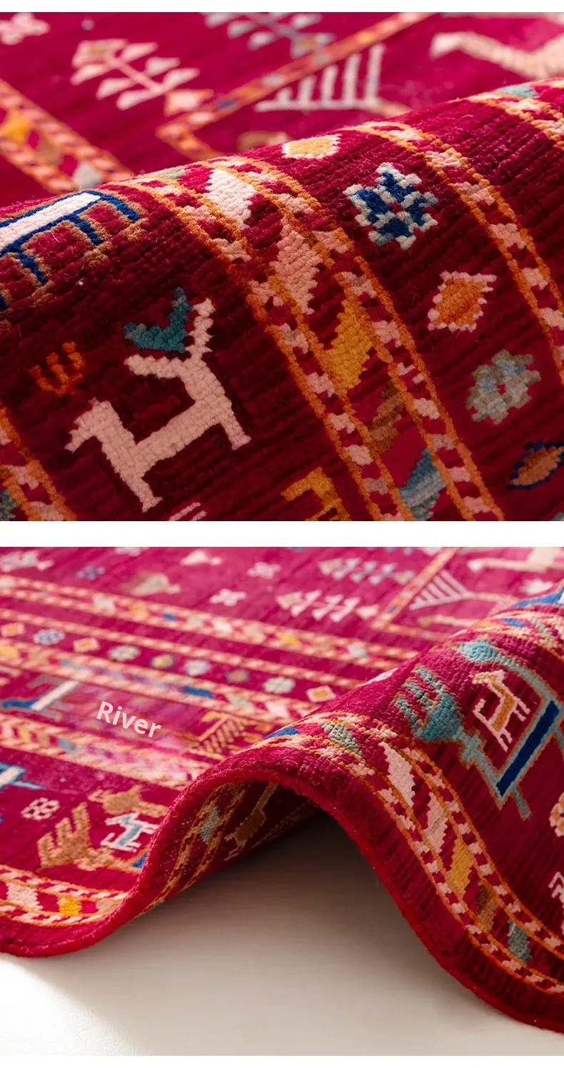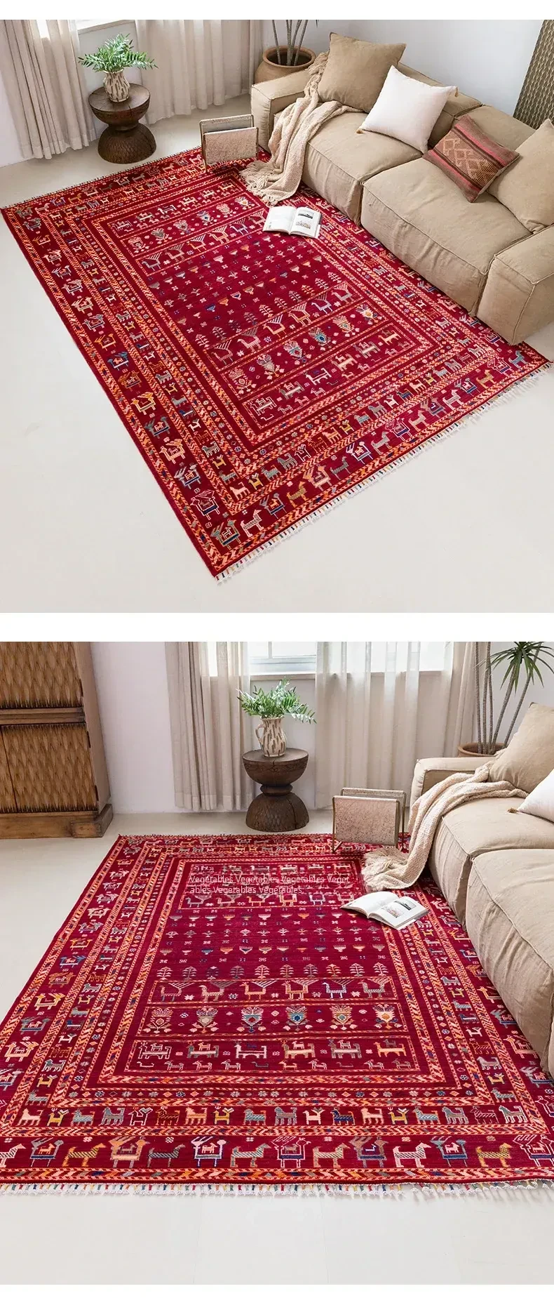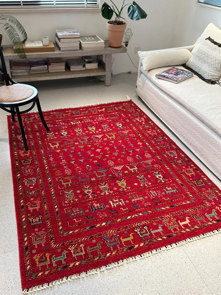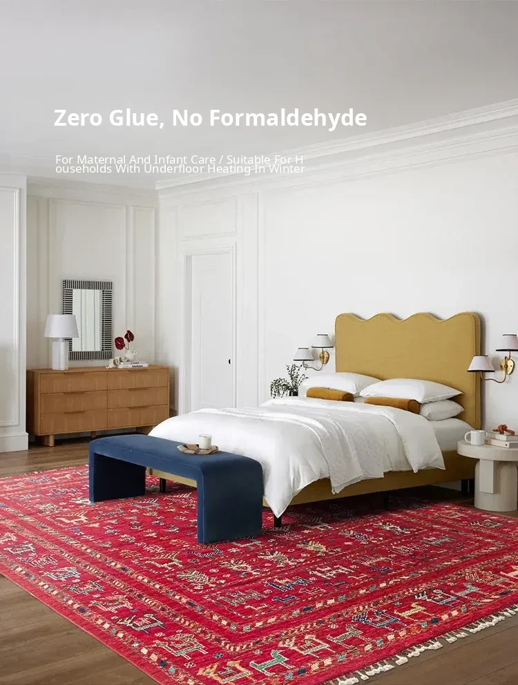 Visual Taste Imported Handcrafted Red Wool Knotted Carpet - Premium American Style Living Room Rug, Non-Toxic and Formaldehyde-Free