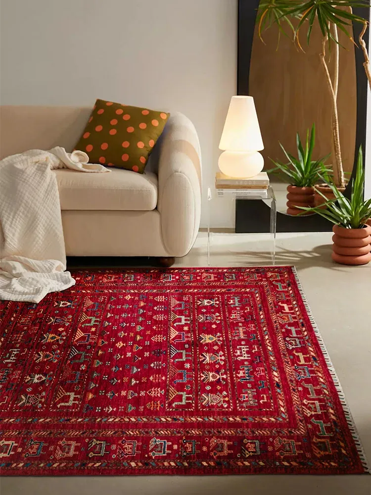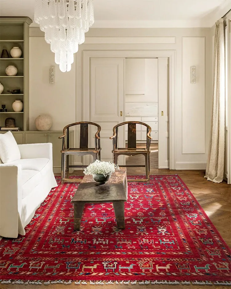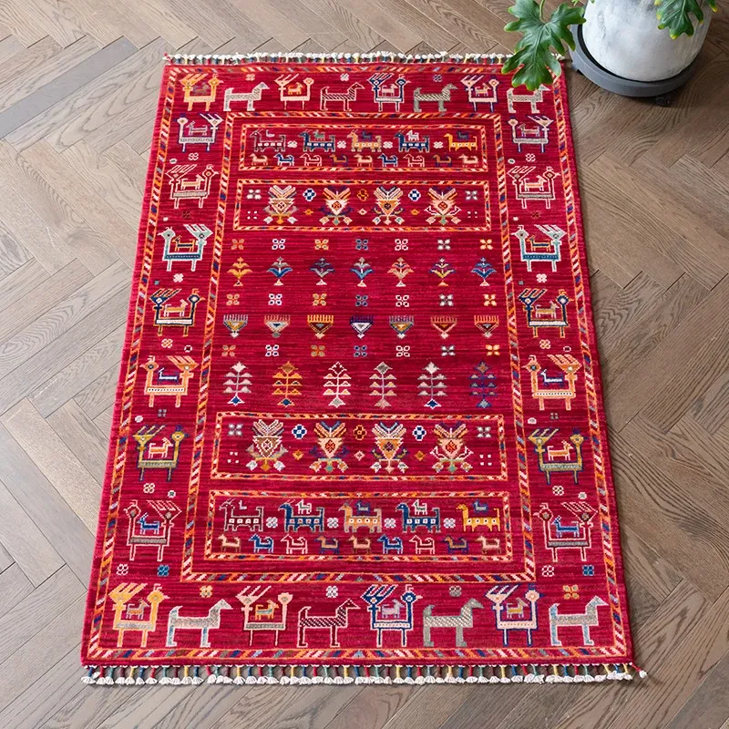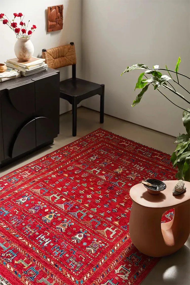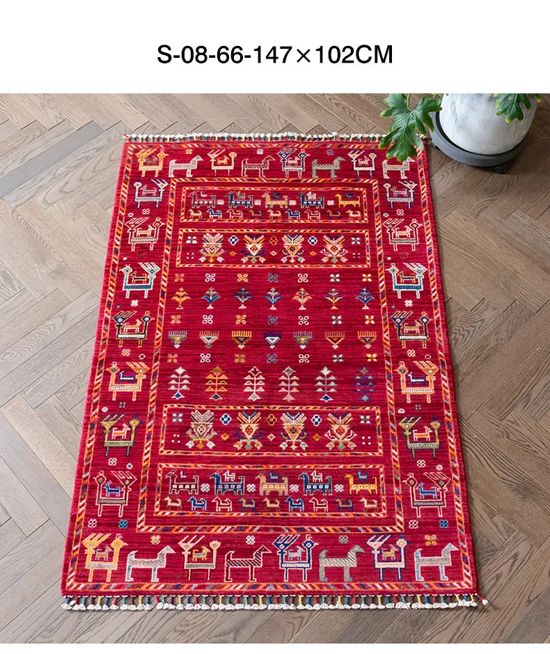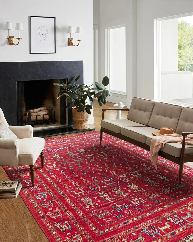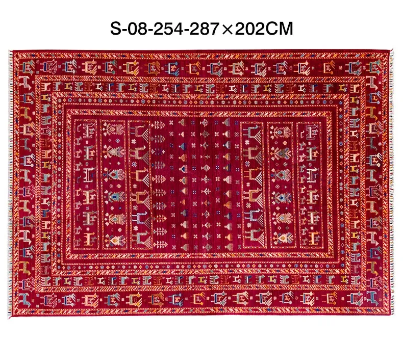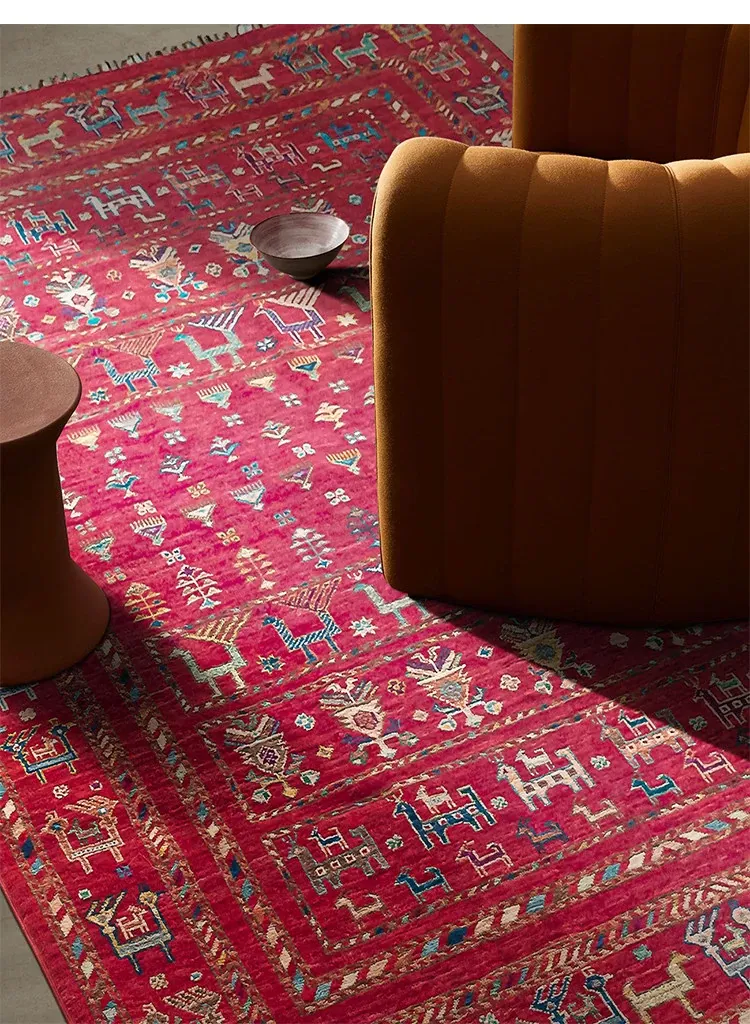 Visual Taste Imported Handcrafted Red Wool Knotted Carpet - Premium American Style Living Room Rug, Non-Toxic and Formaldehyde-Free