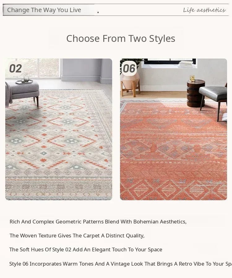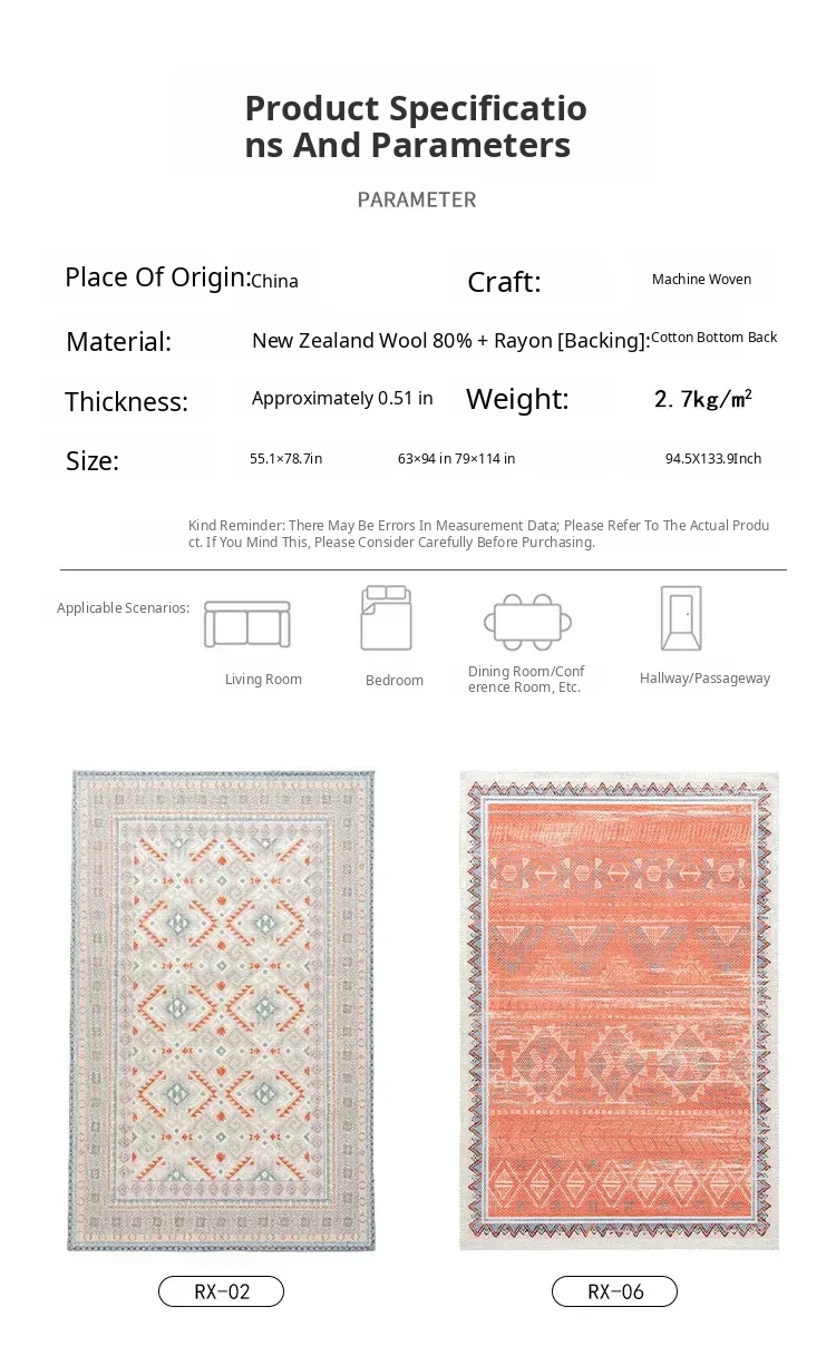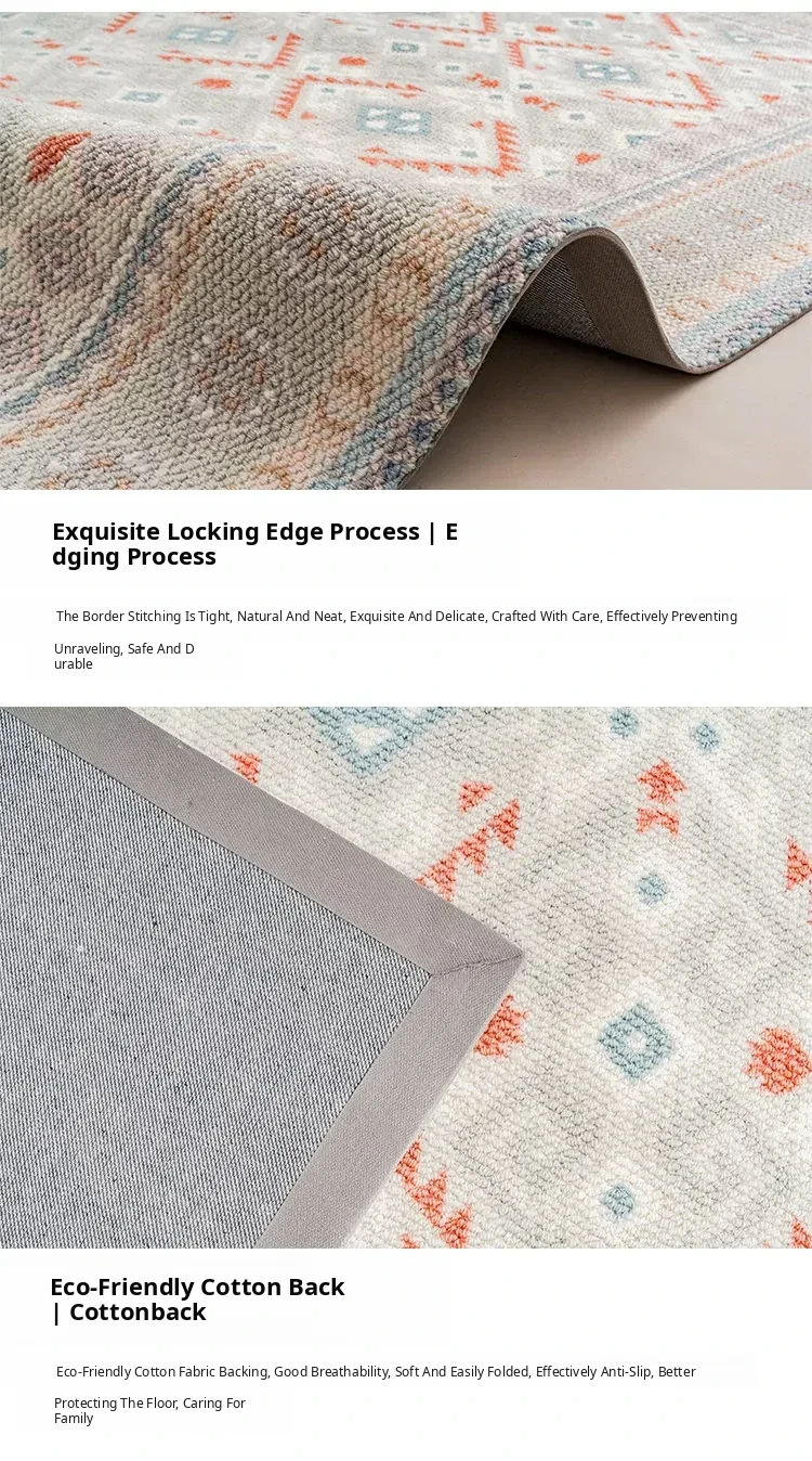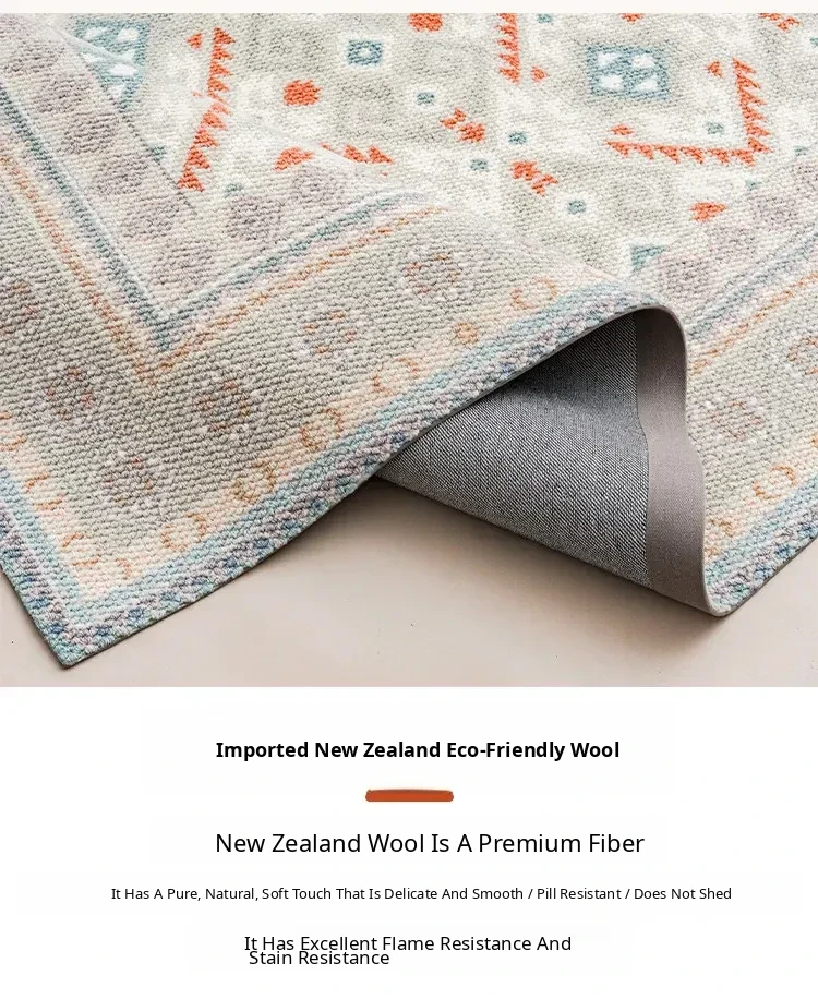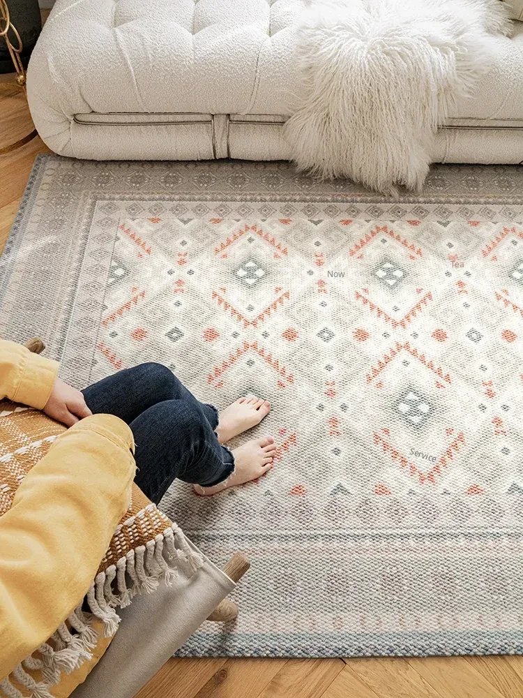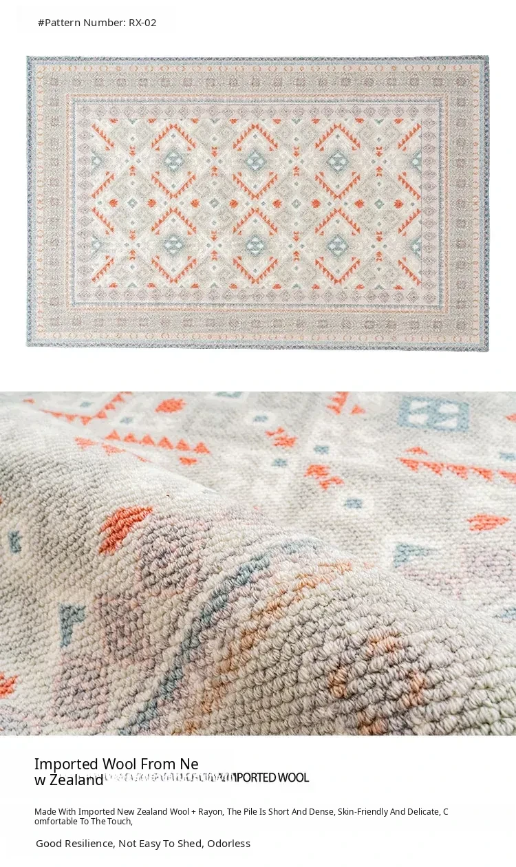 Visual Taste: Original Turkish Ethnic Style Wool Area Rug - Minimalist INS Fresh Design for Living Room or Bedroom Tea Table Mat