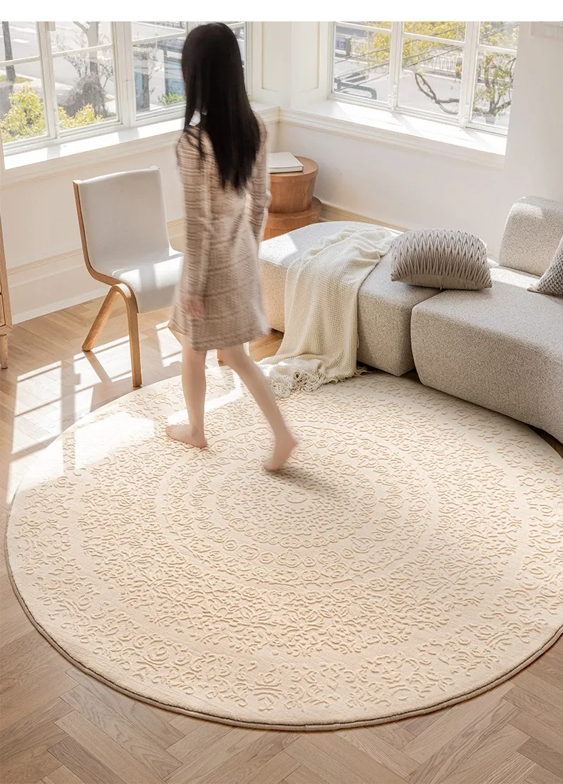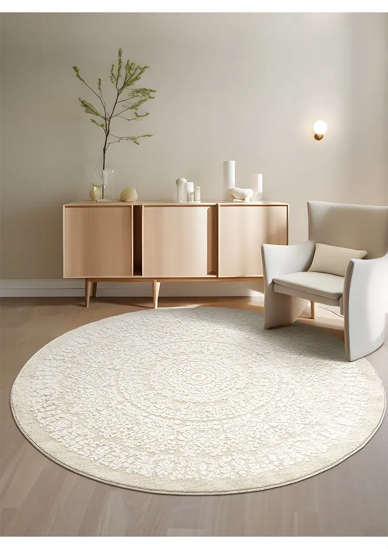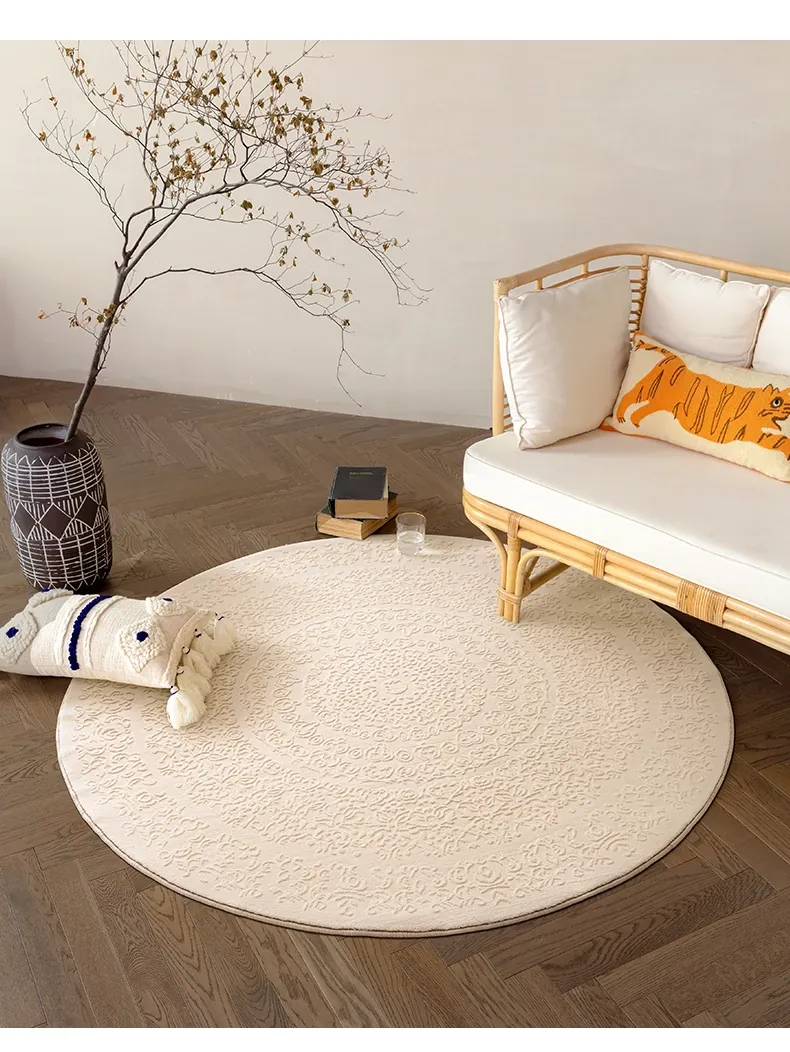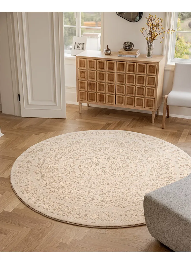 Visual Taste: Wool Round Rug in Ins Style - Japanese Minimalist Luxury for Living Room, Bedroom, Walk-in Closet, Wabi-Sabi Inspired Bedside Mat