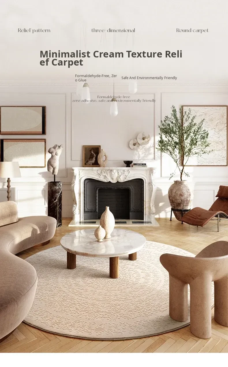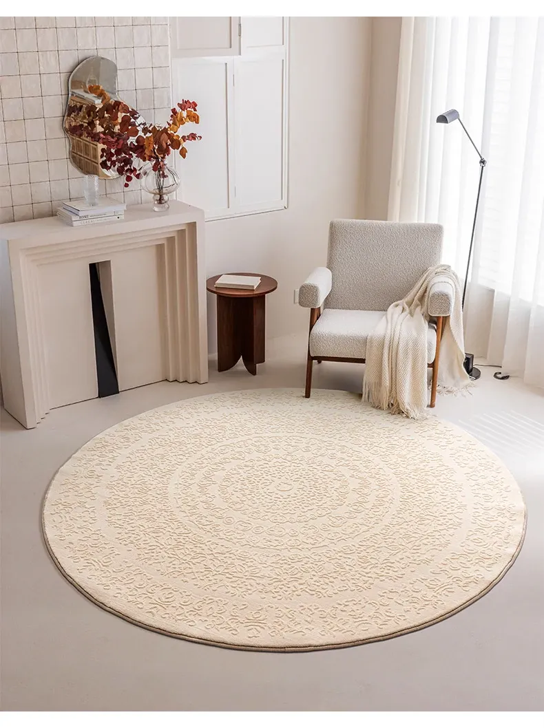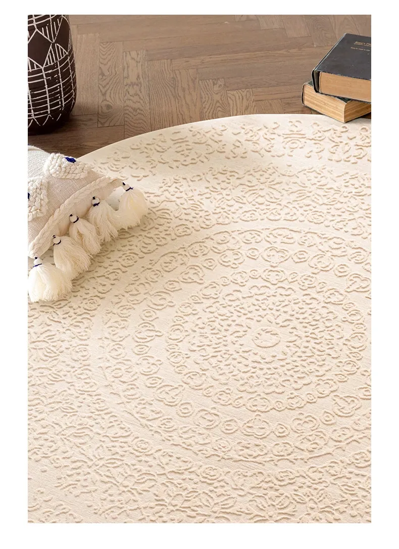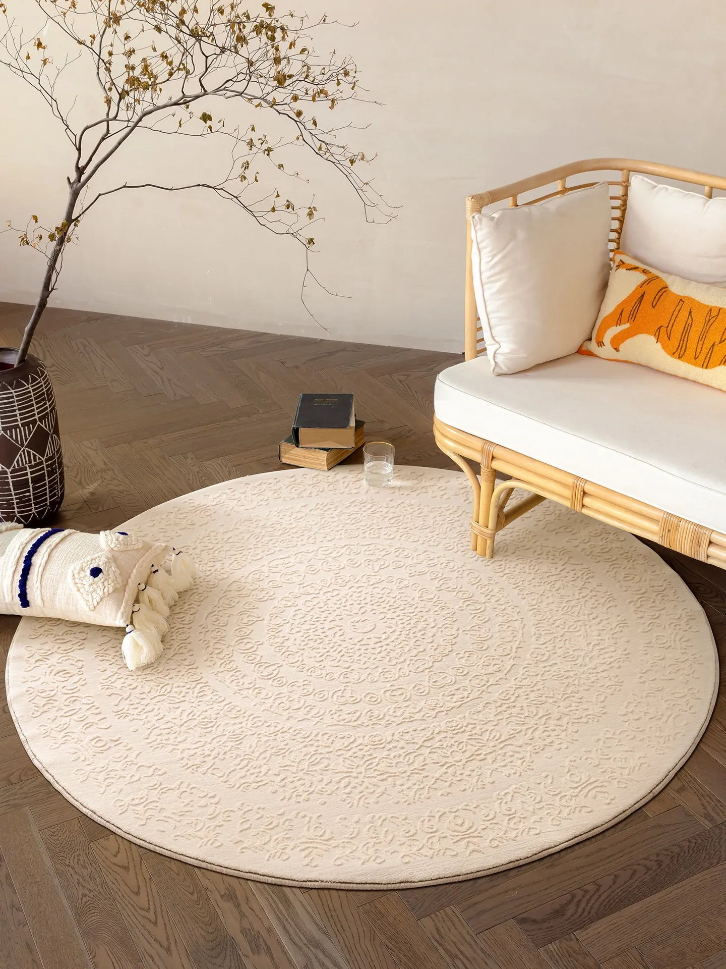 Visual Taste: Wool Round Rug in Ins Style - Japanese Minimalist Luxury for Living Room, Bedroom, Walk-in Closet, Wabi-Sabi Inspired Bedside Mat