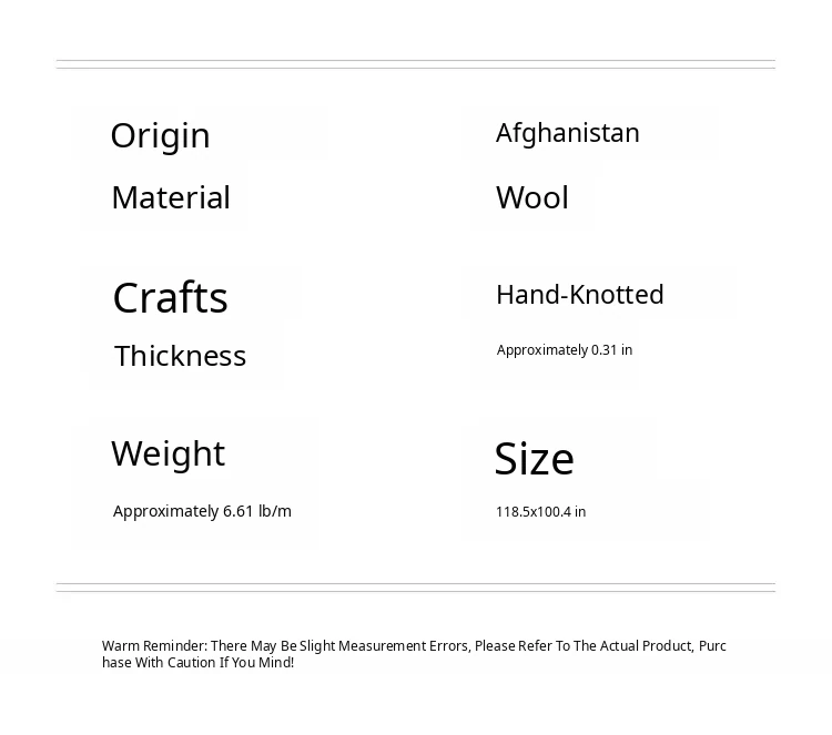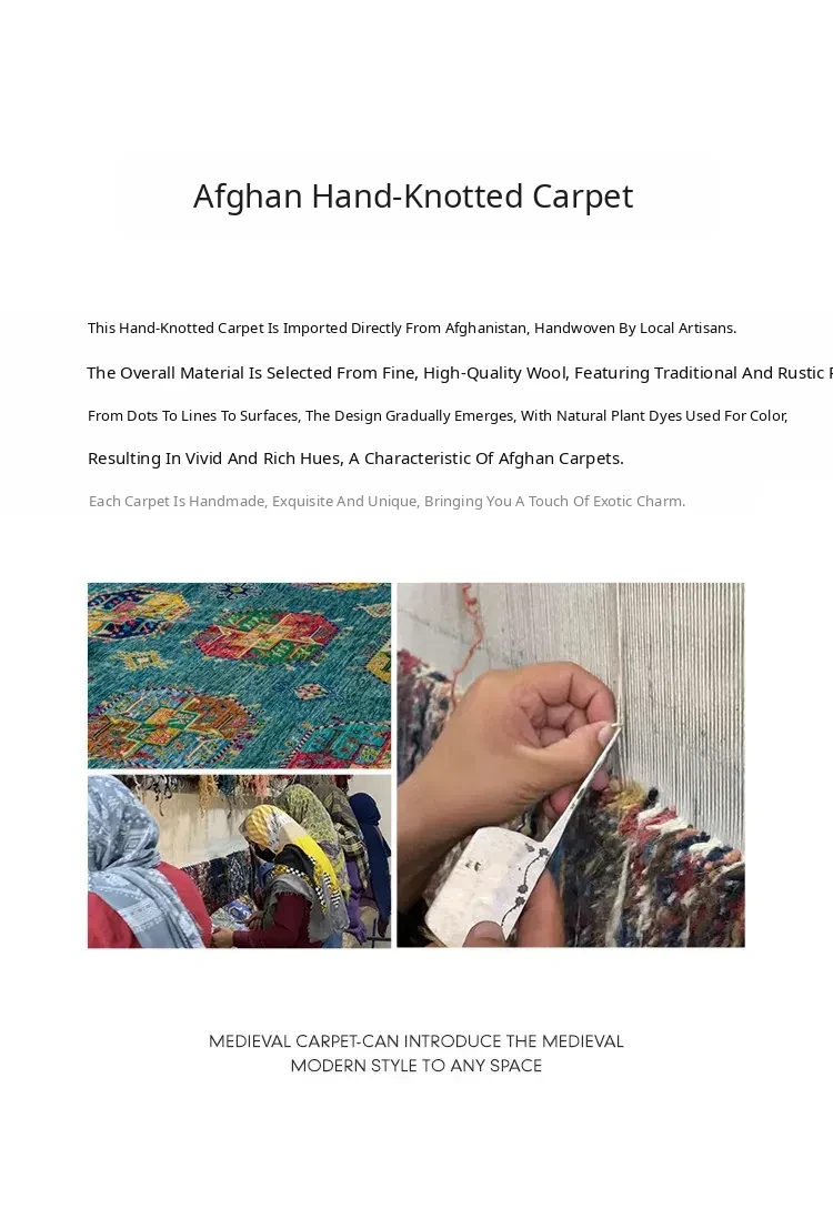 Visually Appealing Afghan Wool Carpet - Hand-Knotted, Imported for Villas & Living Rooms, Perfect for Coffee Tables, Eco-Friendly & Formaldehyde-Free