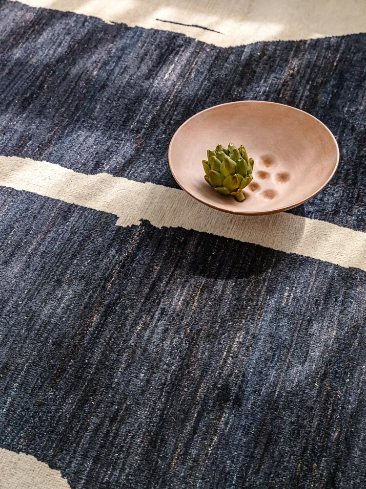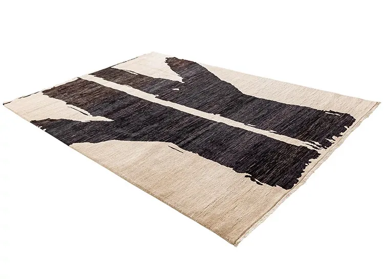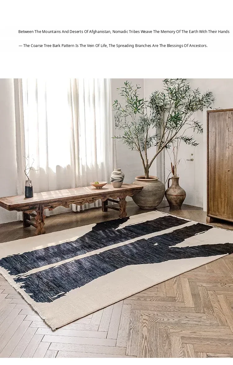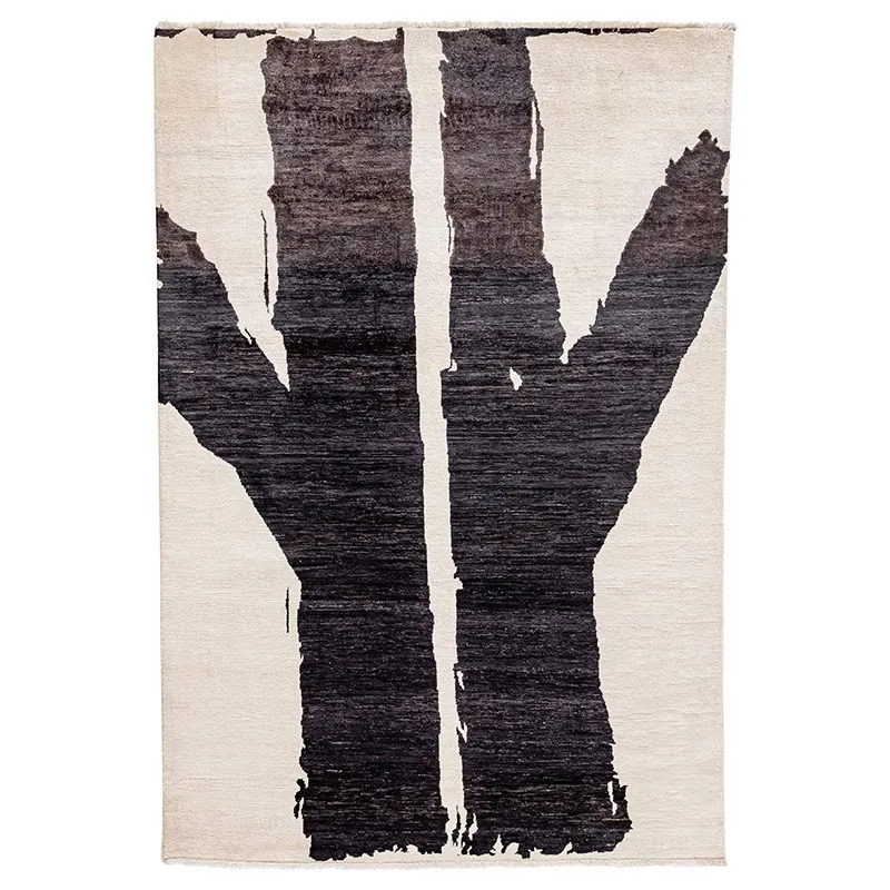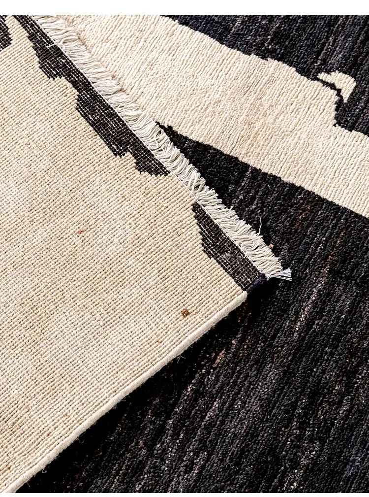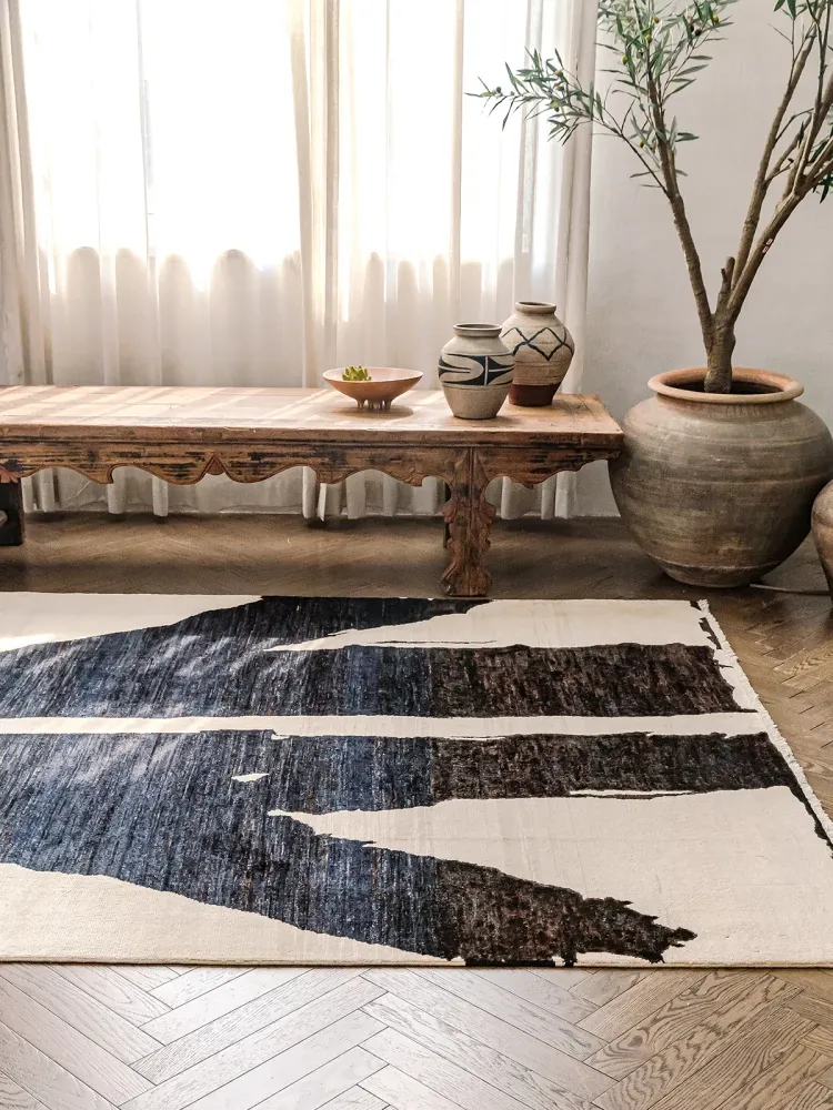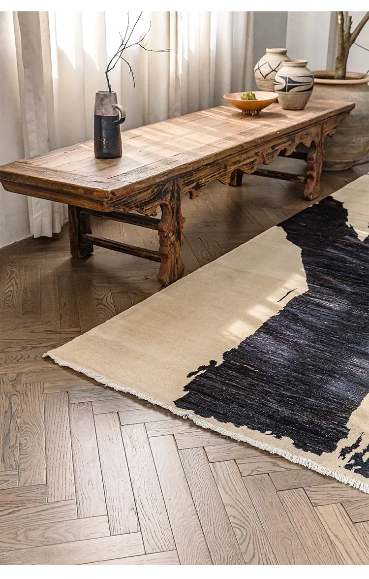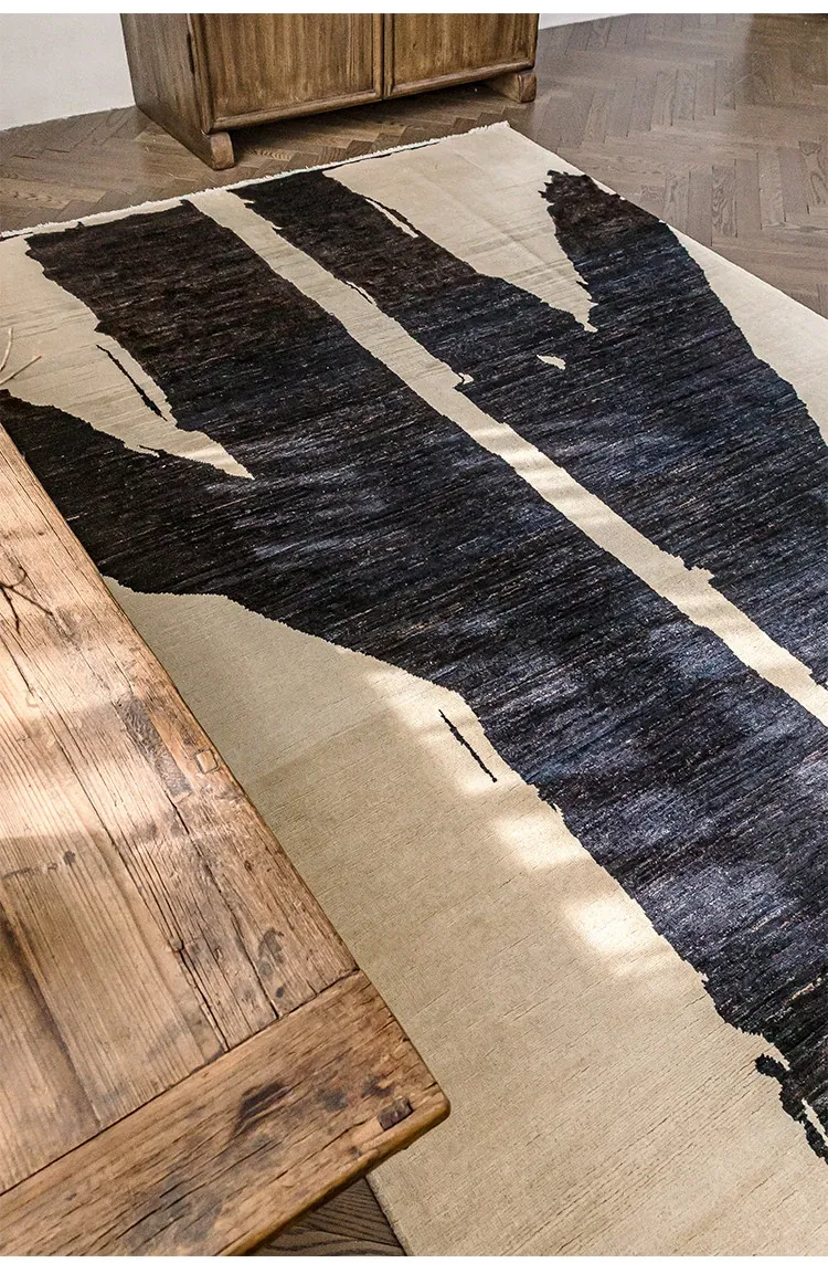 Visually Appealing Wabi-Sabi Style Imported Wool Rug – Black and White Minimalist Luxury Carpet for Living Rooms and Boutique Hotels