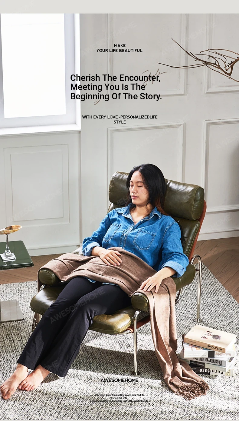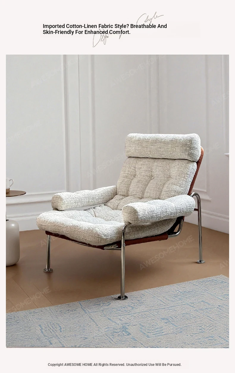 Yaqi Furniture | Elegant Rumm Armchair - Cotton Linen Leisure Chair for Living Room & Study - Vintage Chic Bauhaus Style