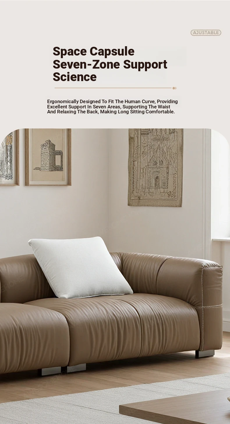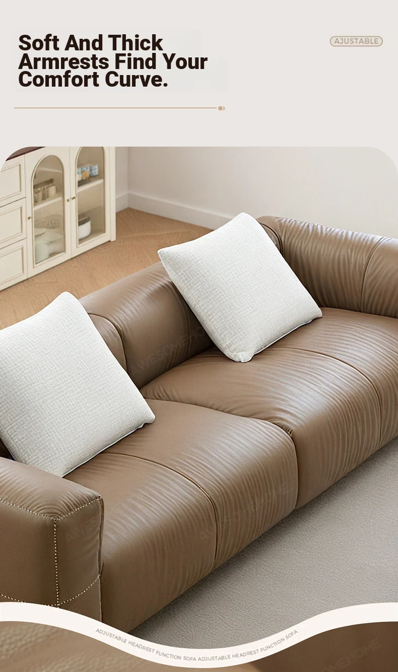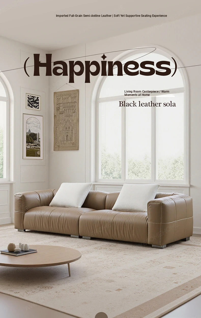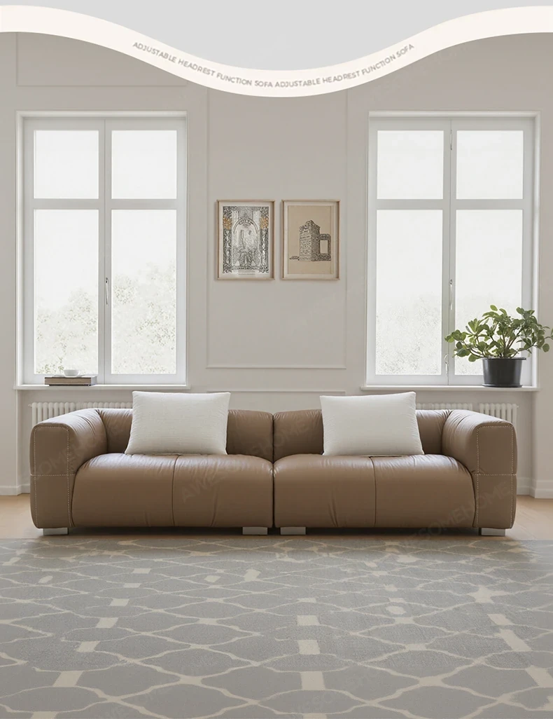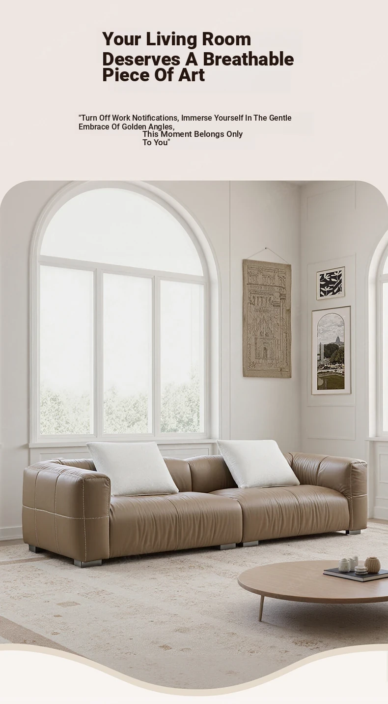 Yaqi Furniture | Italian Minimalist Baseball Sofa in Genuine Top-Grain Leather - Retro Style Living Room Straight Sofa