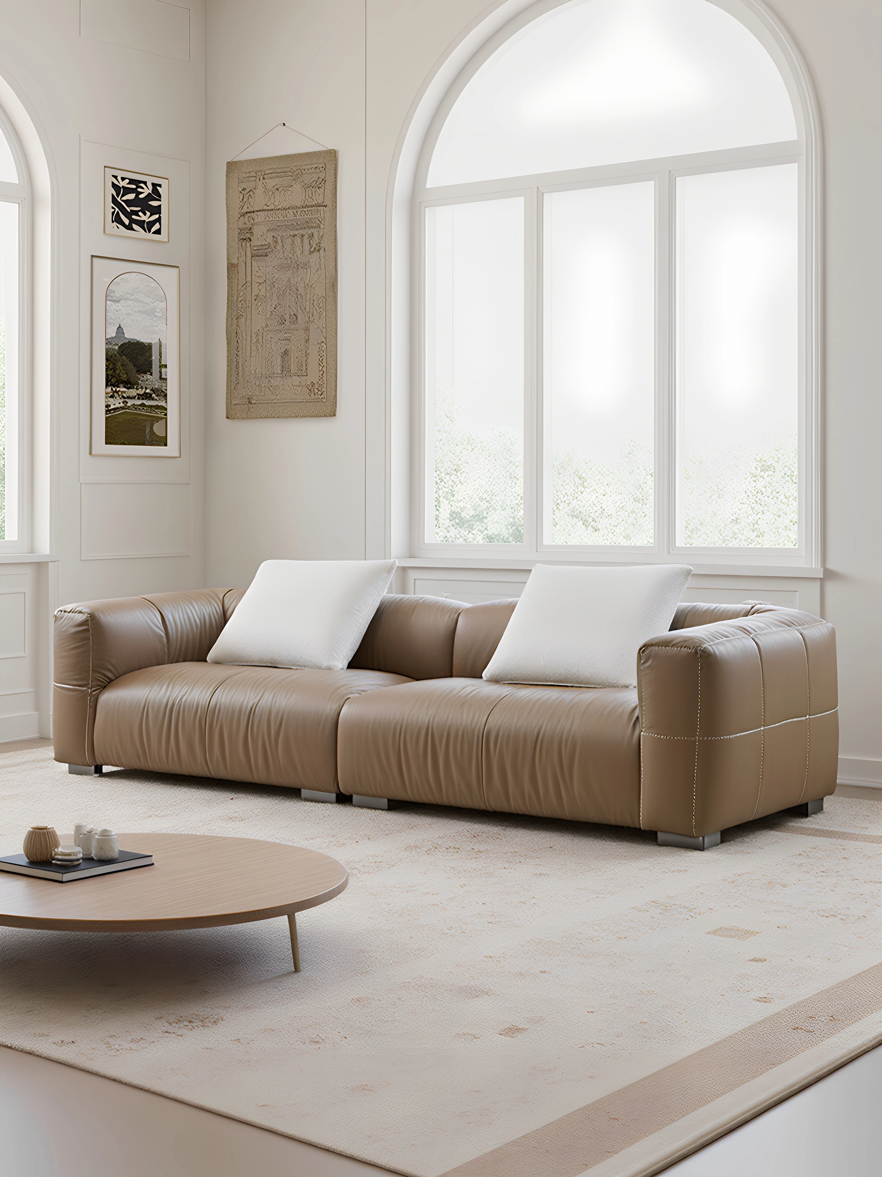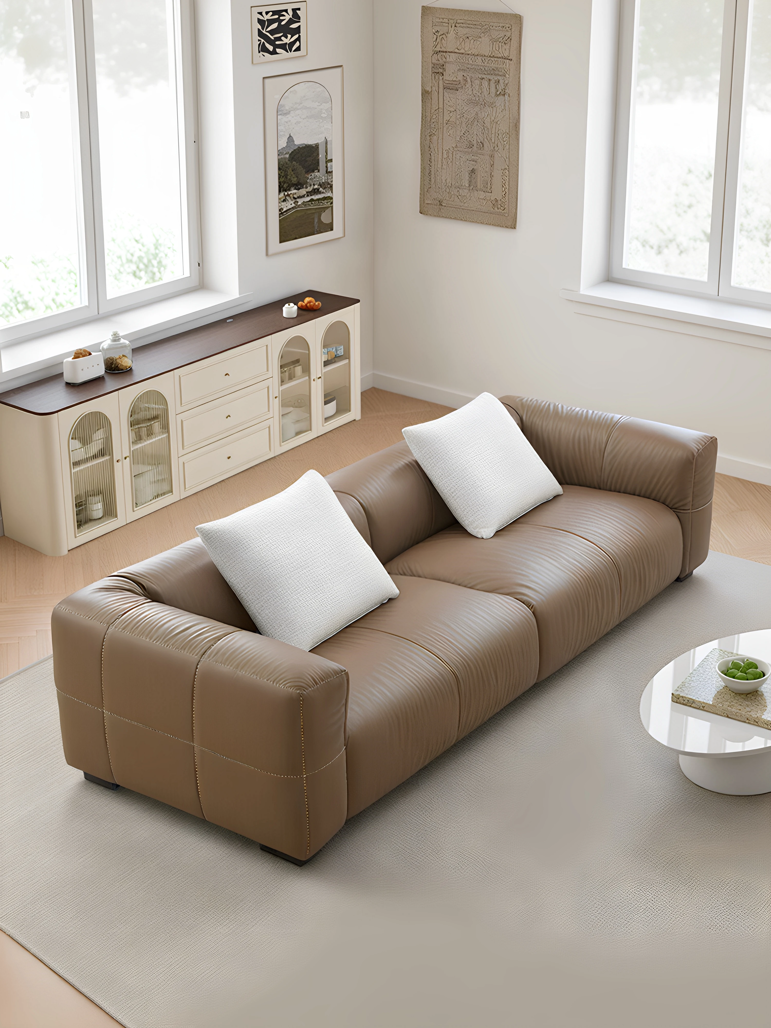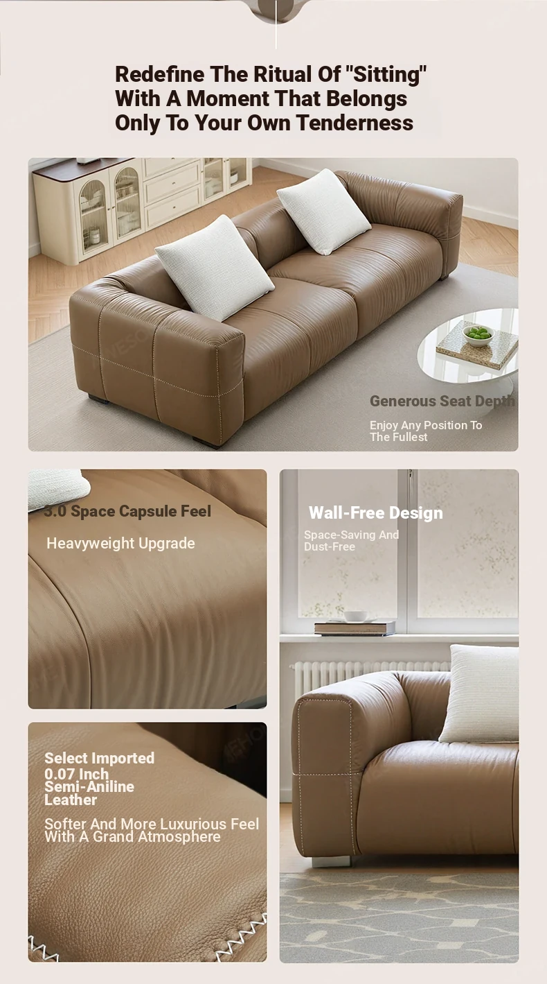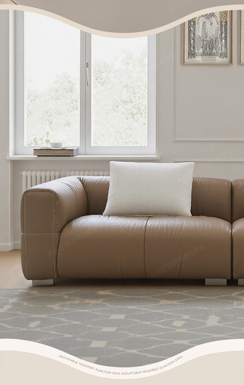 Yaqi Furniture | Italian Minimalist Baseball Sofa in Genuine Top-Grain Leather - Retro Style Living Room Straight Sofa