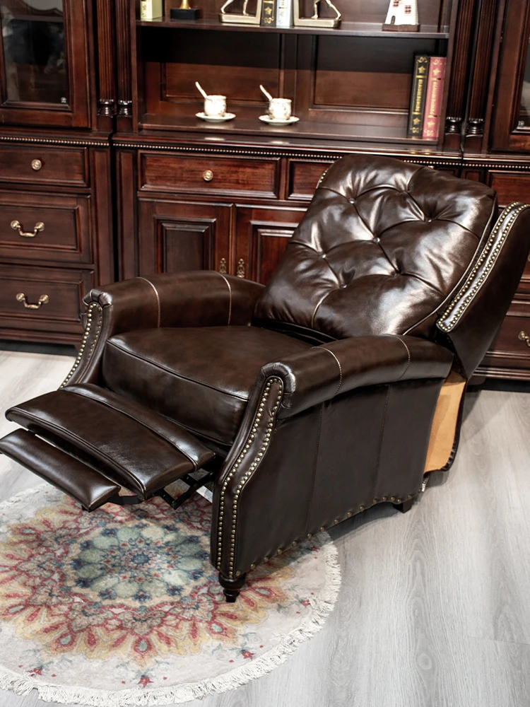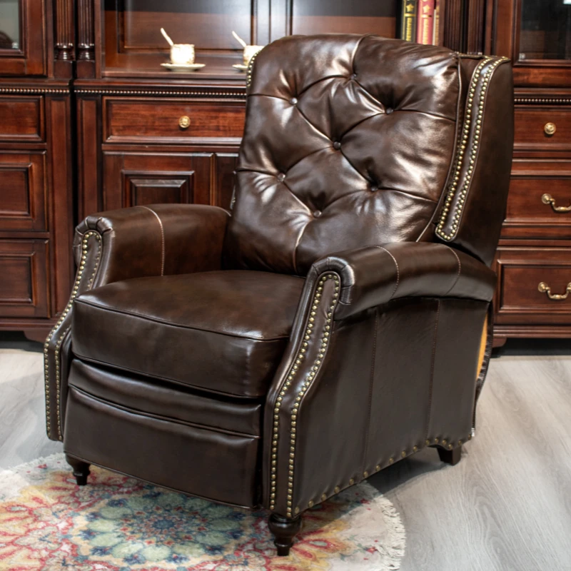 2025年新款アメリカンスタイル本革リビング用ソファ|高級感溢れるシンプルデザインの木製フレーム|機能的な一人用リクライニングチェアで快適なひとときをお楽しみください!