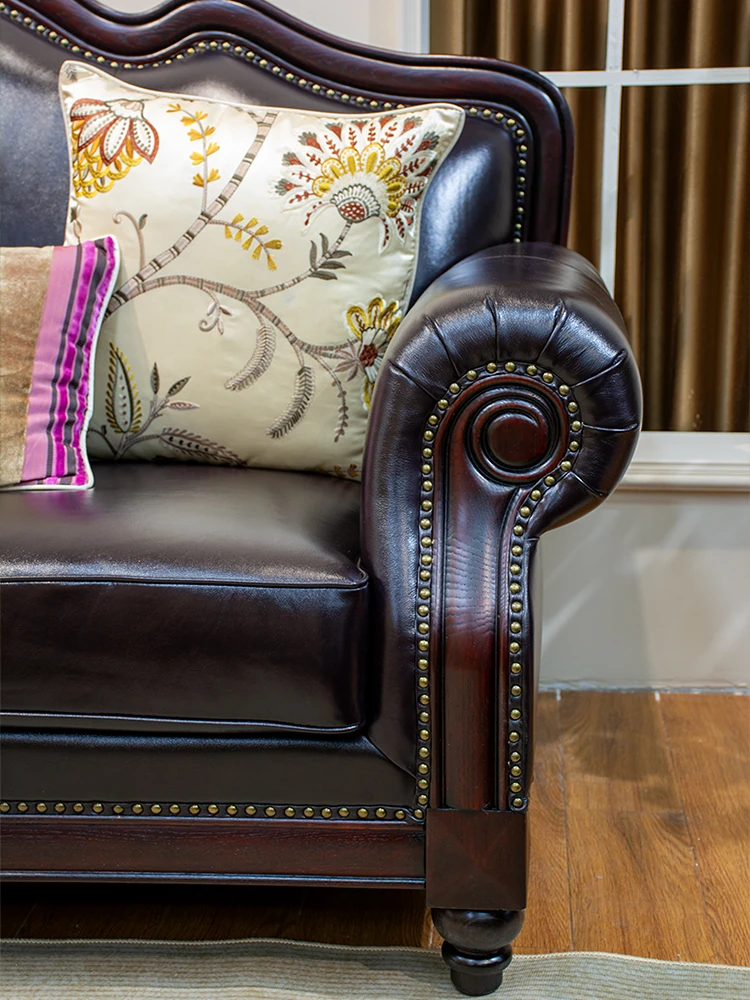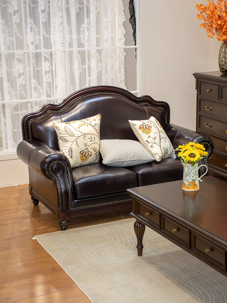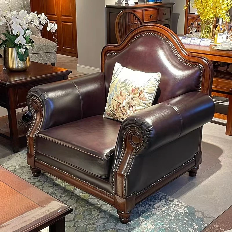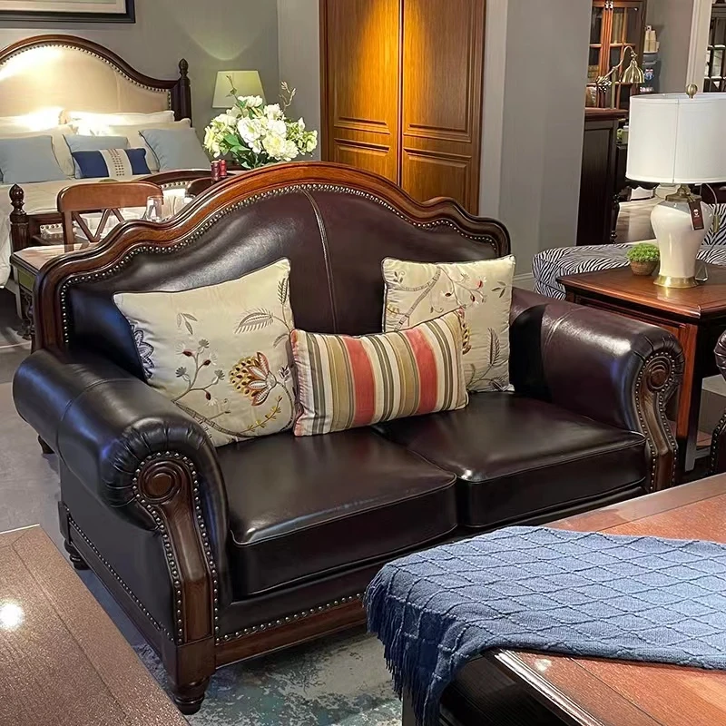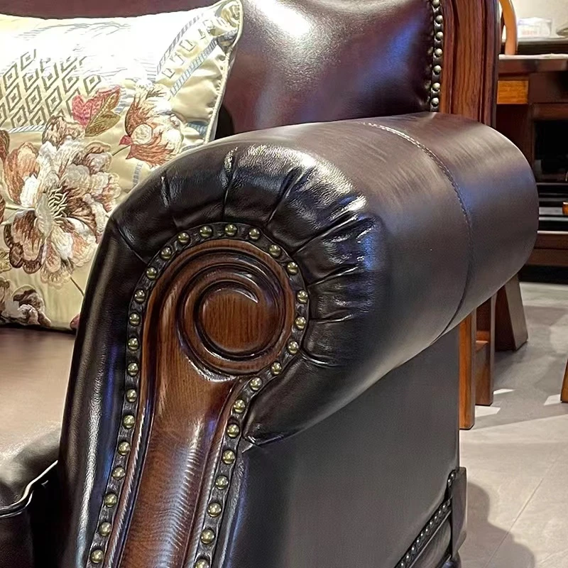 2025年新作!アメリカンスタイルのラグジュアリー本革ソファー、リビングにぴったりの三人掛けコンビネーション。高級感あふれる天然木と本革の贅沢な組み合わせで、あなたの居住空間を一新!