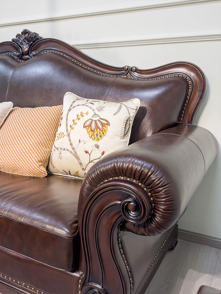 2025年新作!アメリカンスタイル本革ソファ リビングルーム用 レトロで高級感溢れる124人掛けコンビネーション 無垢材全セット家具 贅沢な空間を演出します!