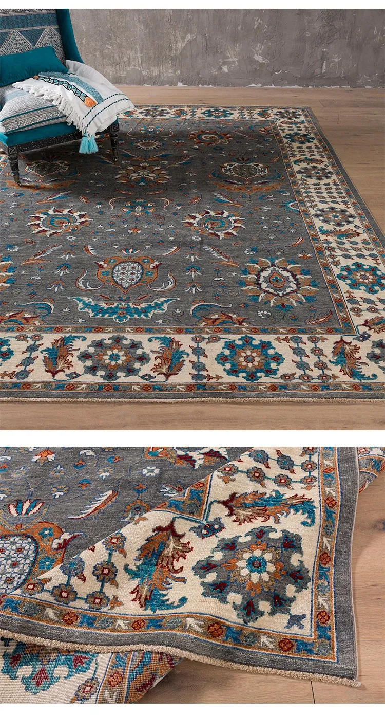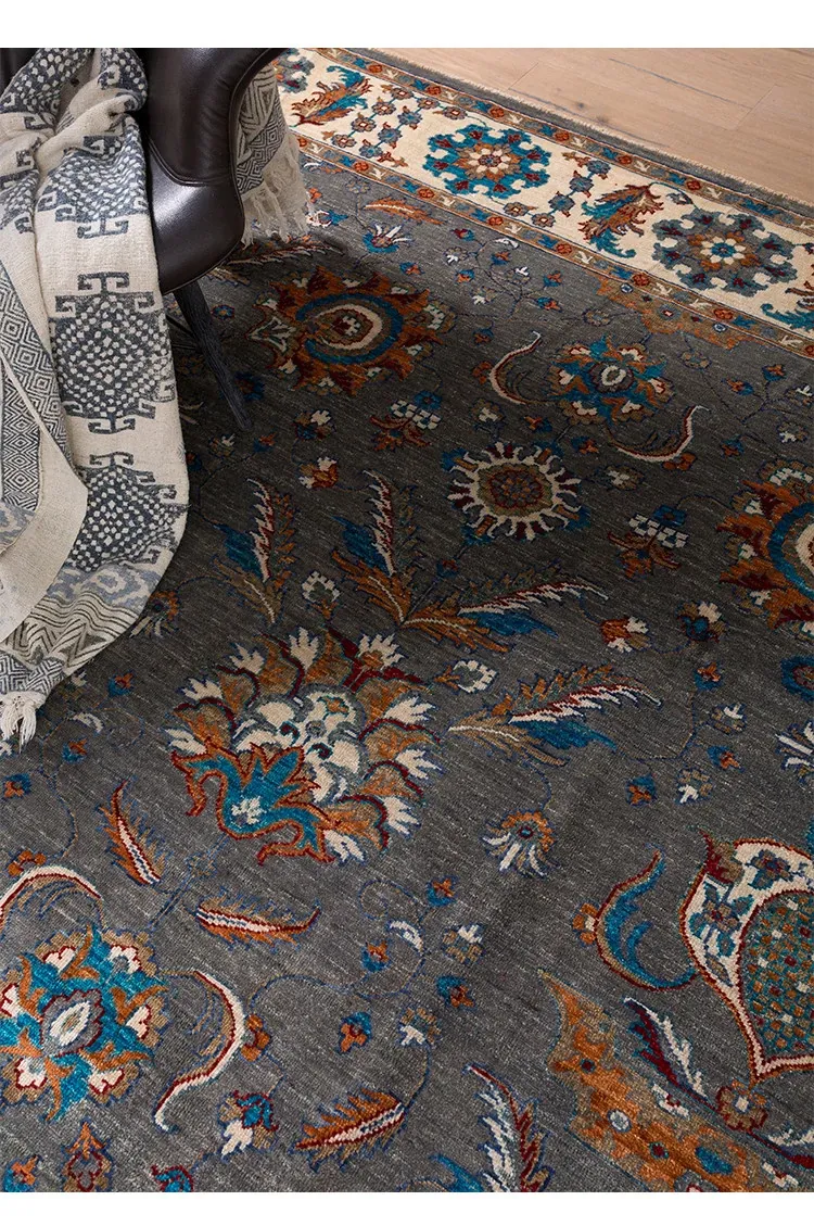 アフガニスタン直輸入のラグジュアリーなヴィンテージアメリカン・ペルシャデザイン 手作りノットのウールカーペット リビングルームや寝室に最適!あなたの空間を一層引き立てる上品な逸品です。