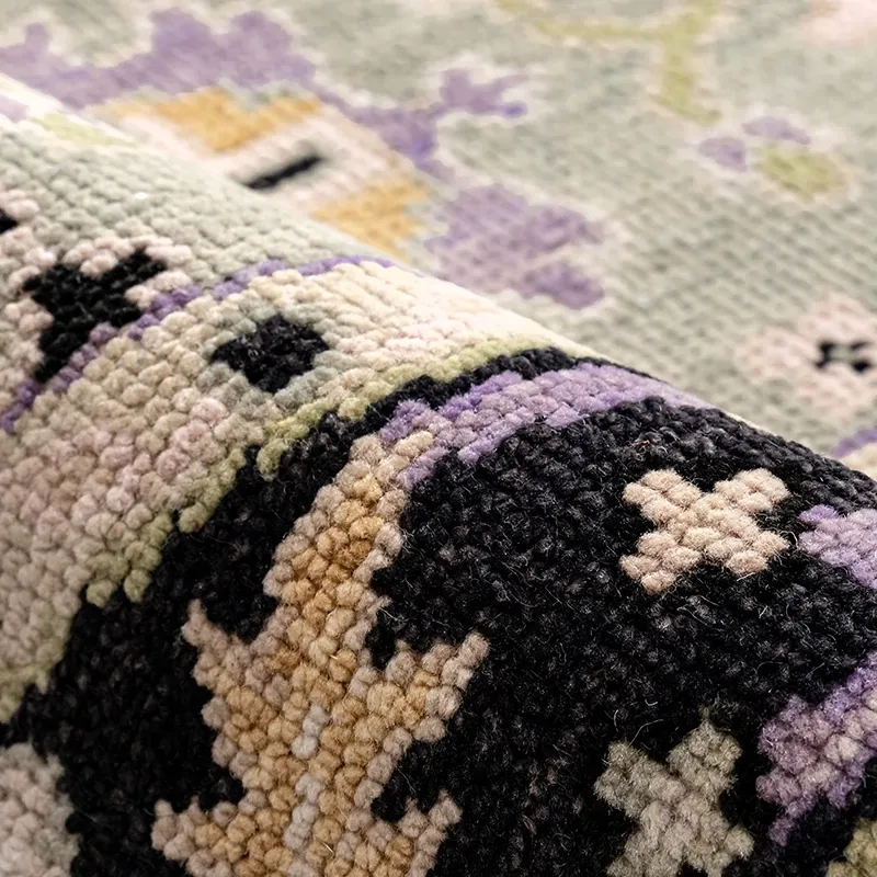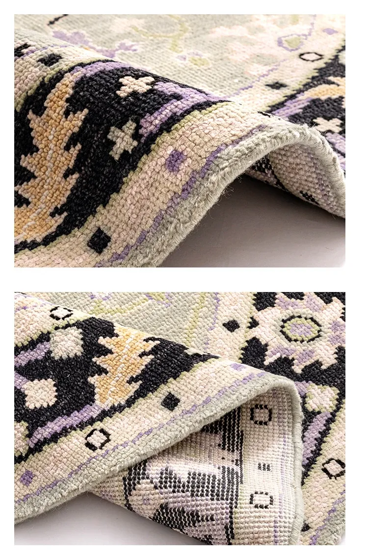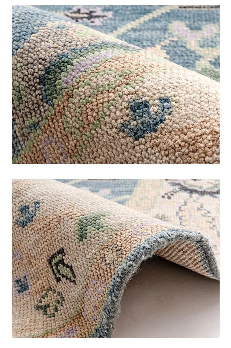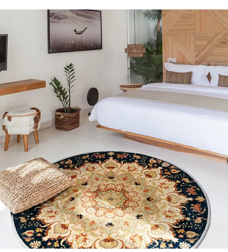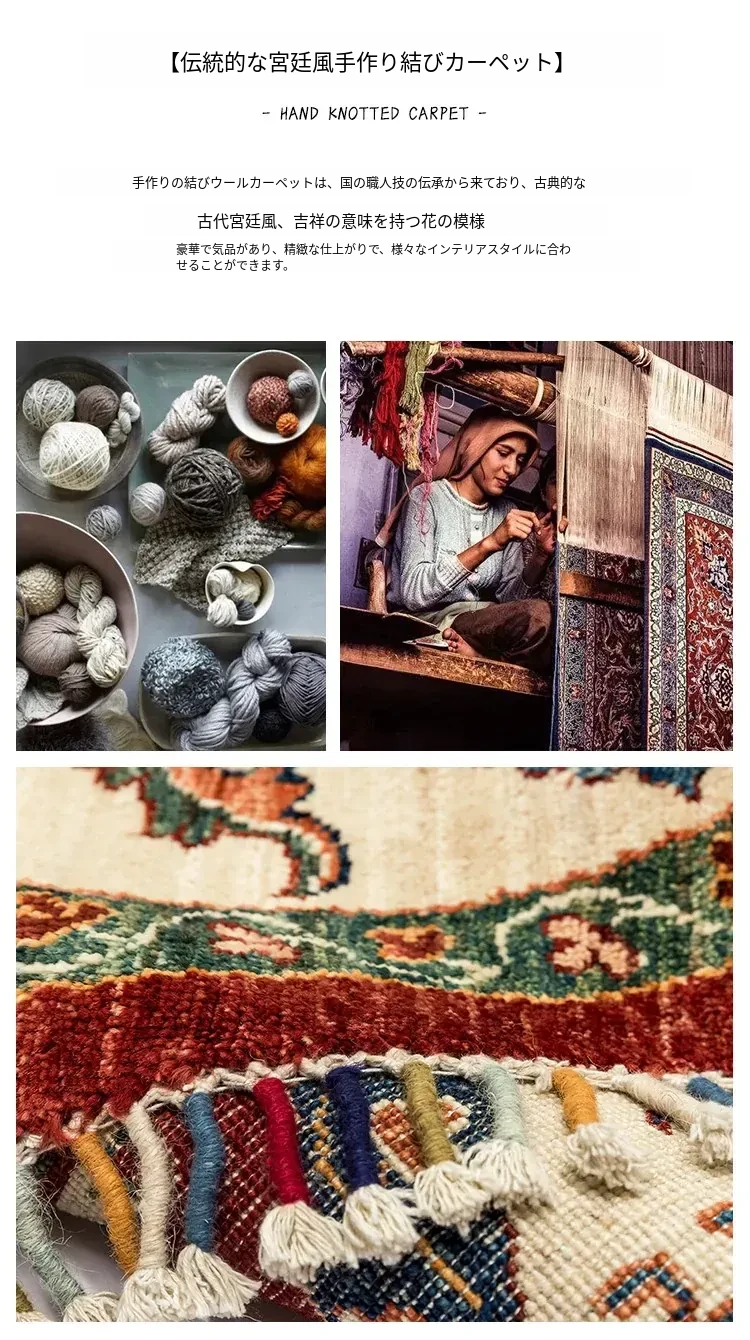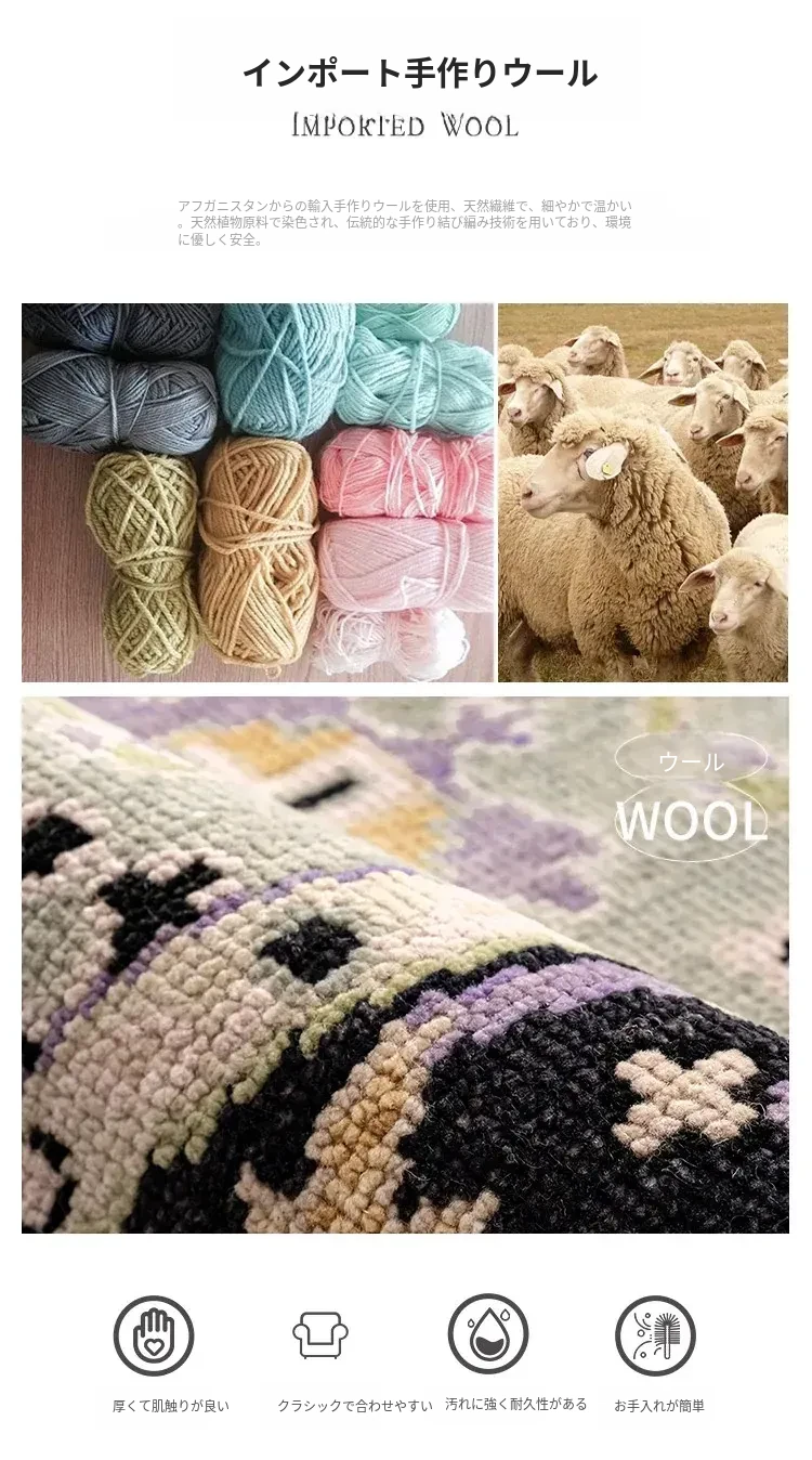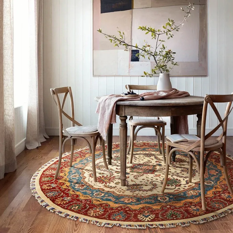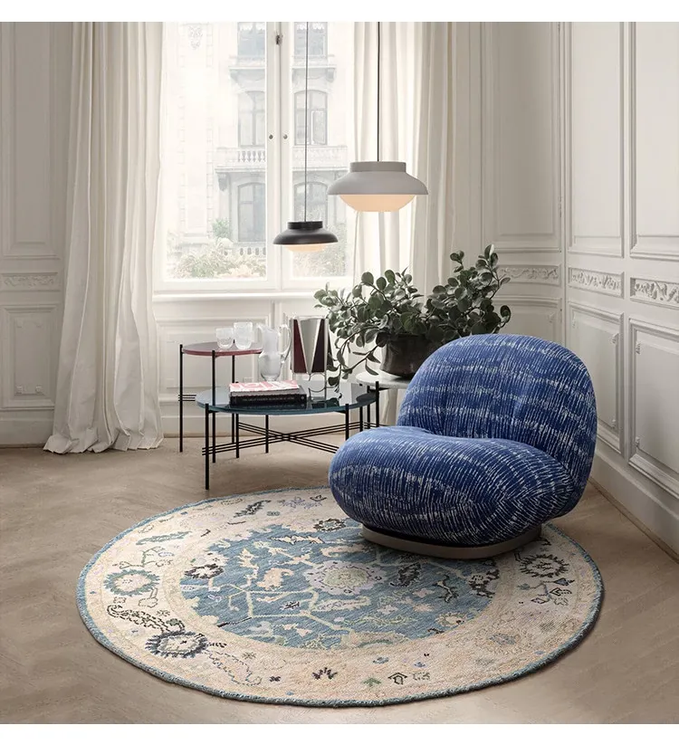 アフガニスタン直輸入のラグジュアリーな円形ヴィンテージモダンスタイルのウール手織りラグ。豪邸のリビングにぴったりな手作りの結び目の絨毯で、空間を華やかに演出します。