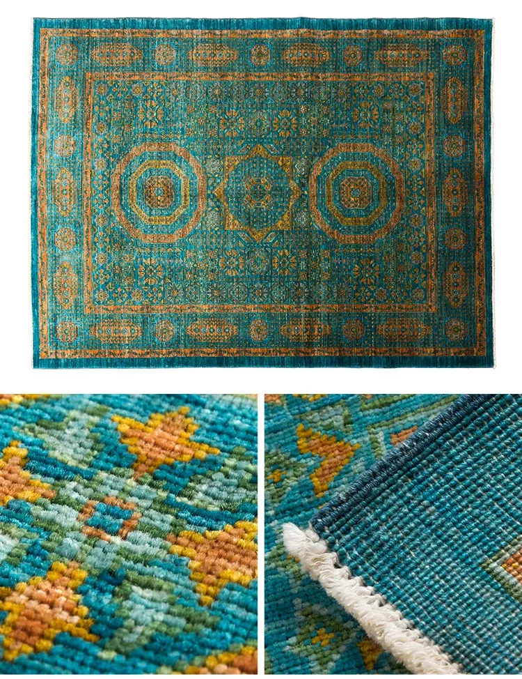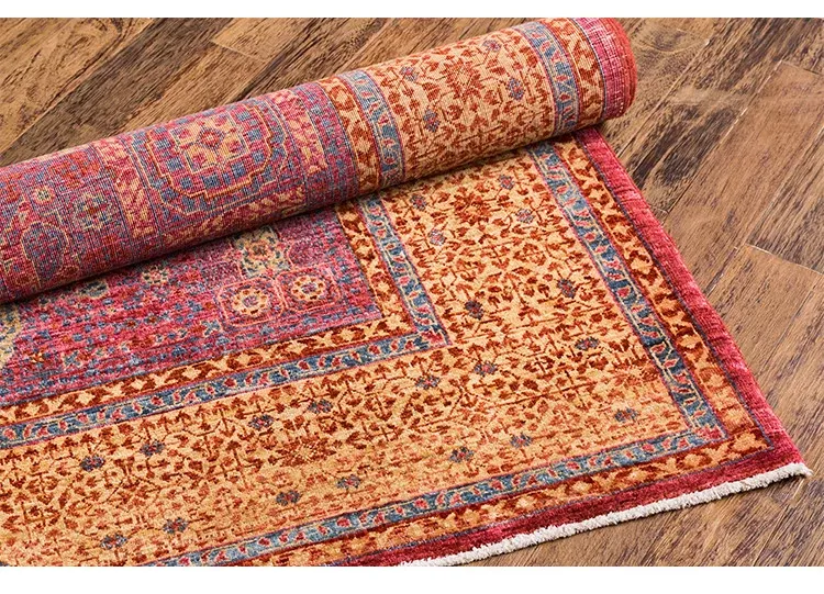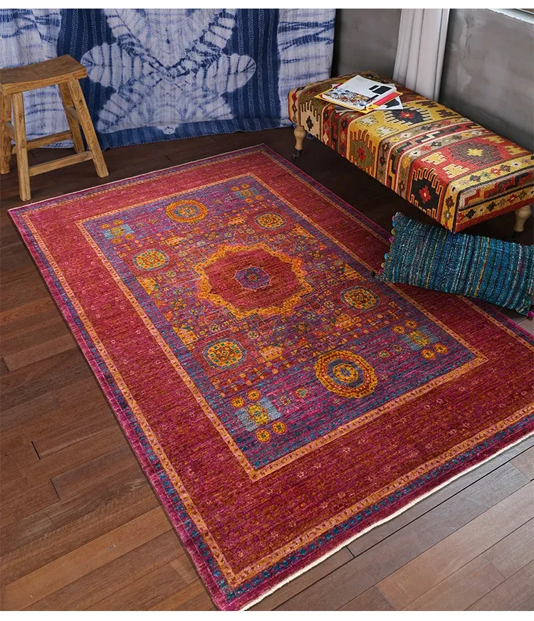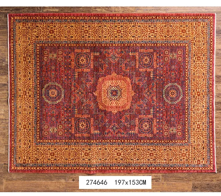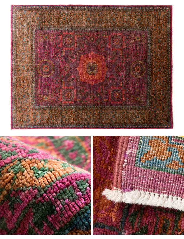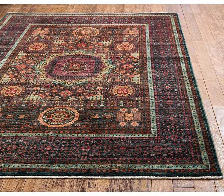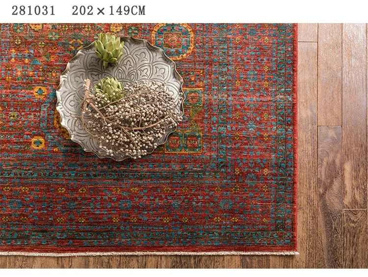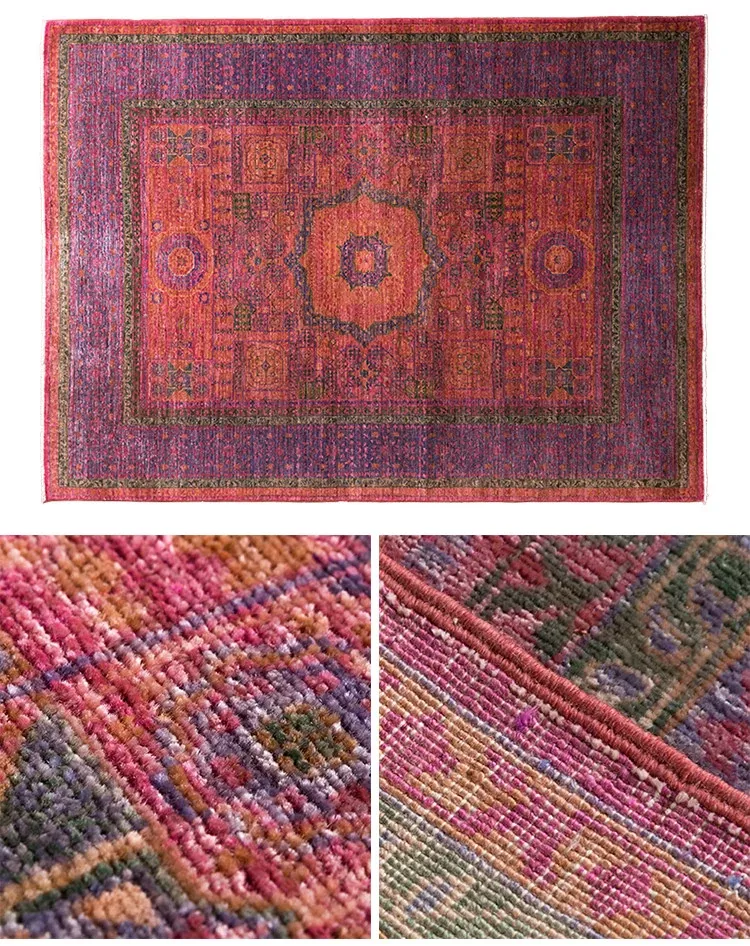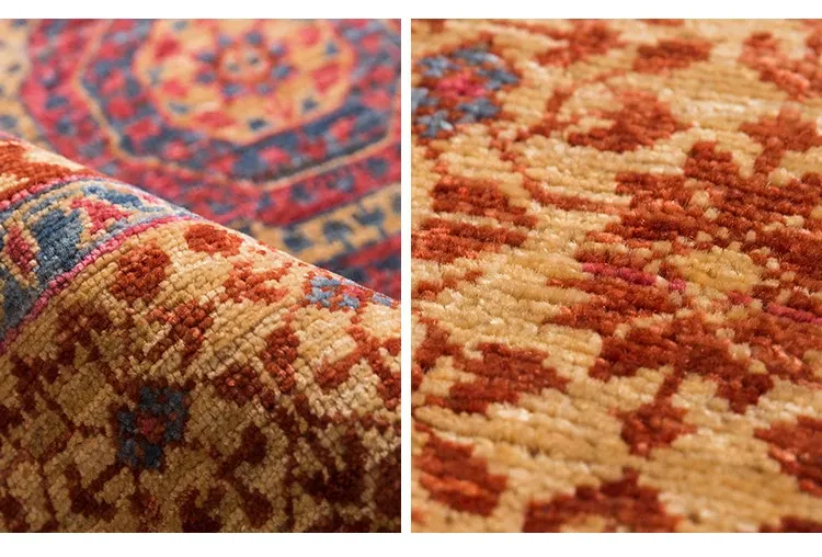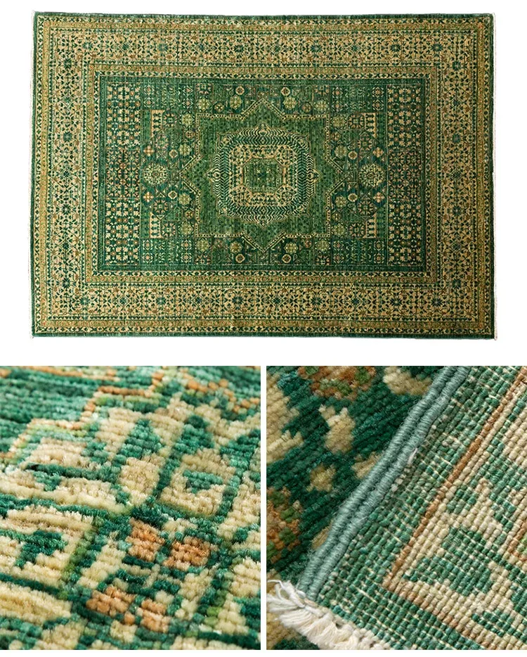 アフガニスタン直輸入!アメリカンレトロスタイルのペルシャ柄手作りウールラグ。寝室やリビングにぴったりの民族風デザイン、ふわふわの肌触りで心地よい空間を演出します。