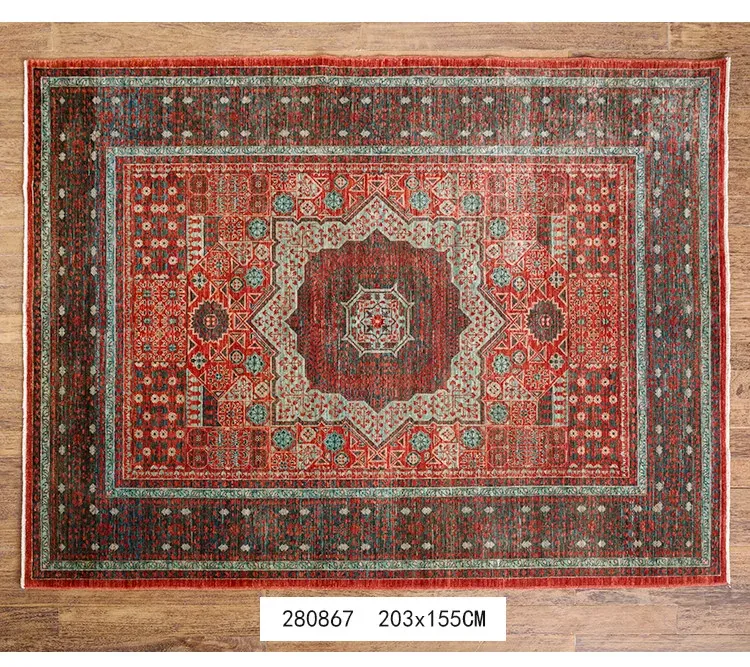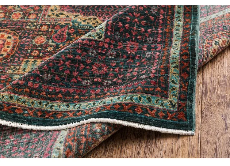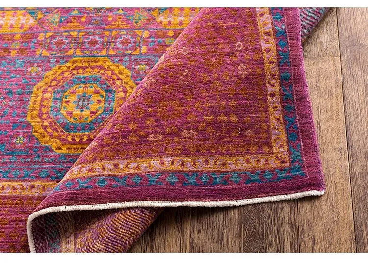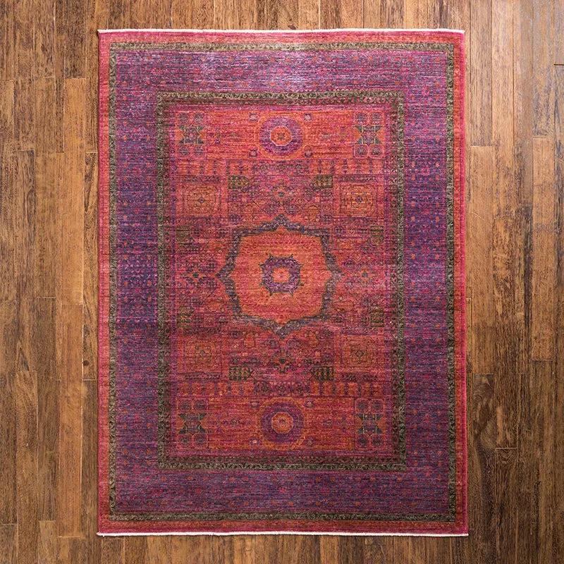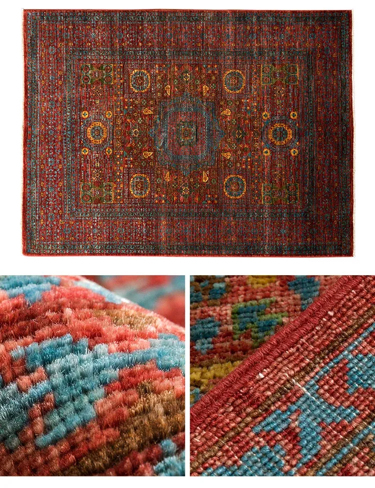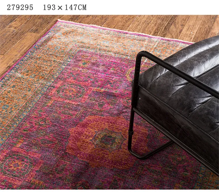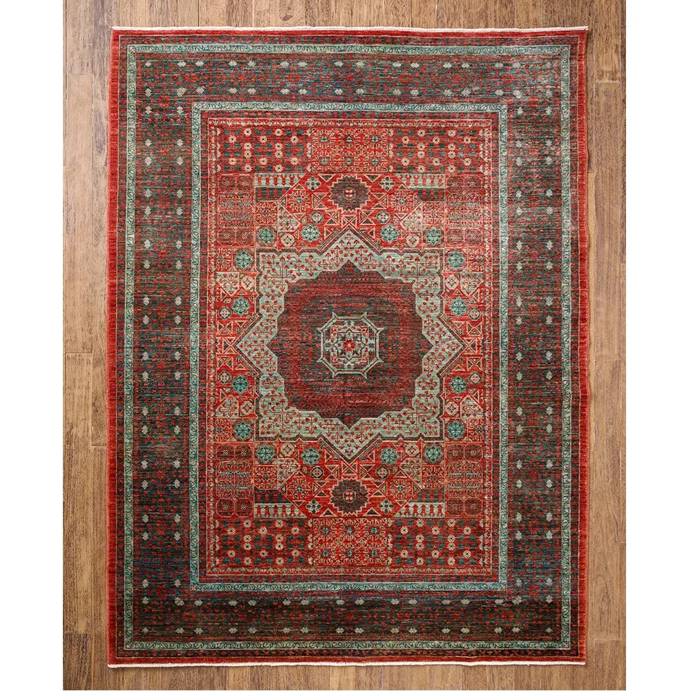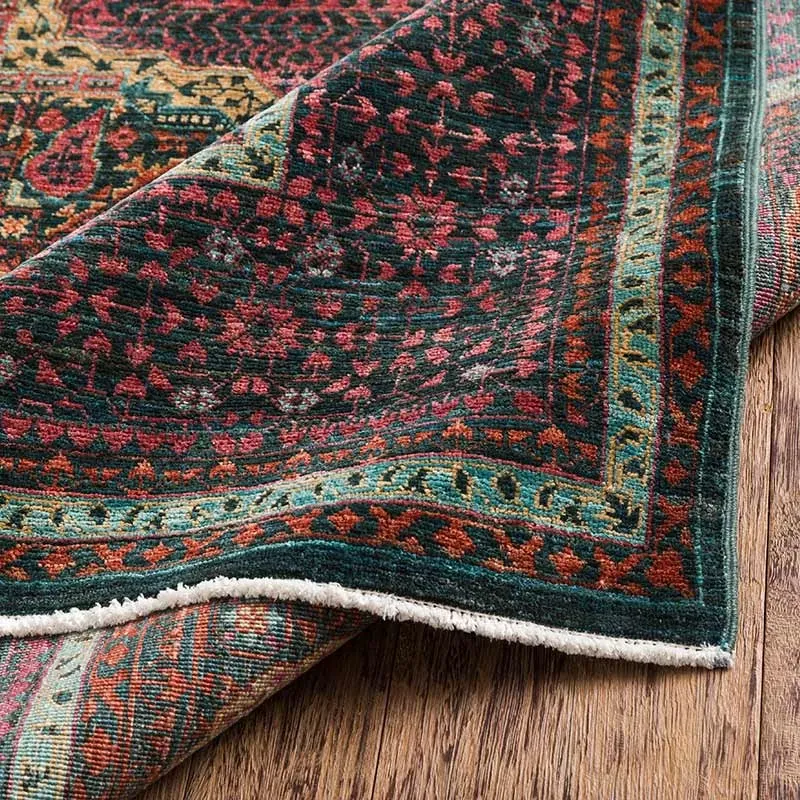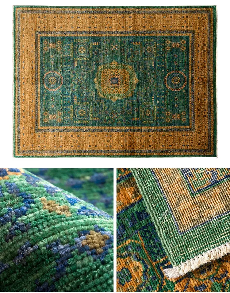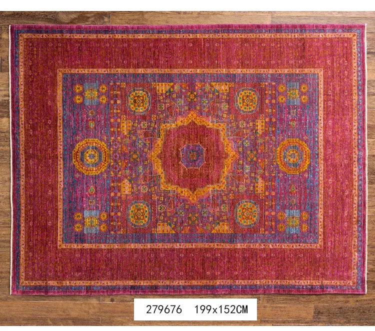 アフガニスタン直輸入!アメリカンレトロスタイルのペルシャ柄手作りウールラグ。寝室やリビングにぴったりの民族風デザイン、ふわふわの肌触りで心地よい空間を演出します。