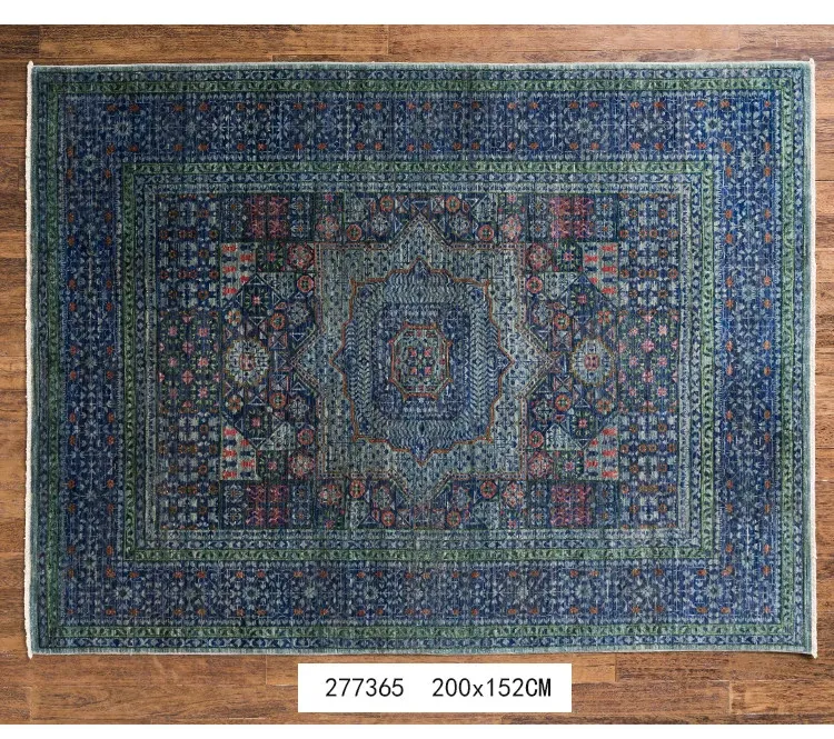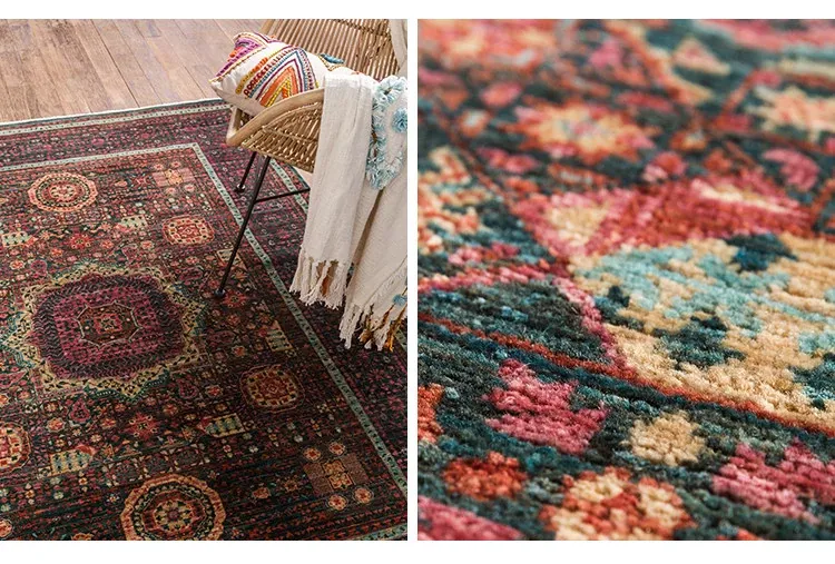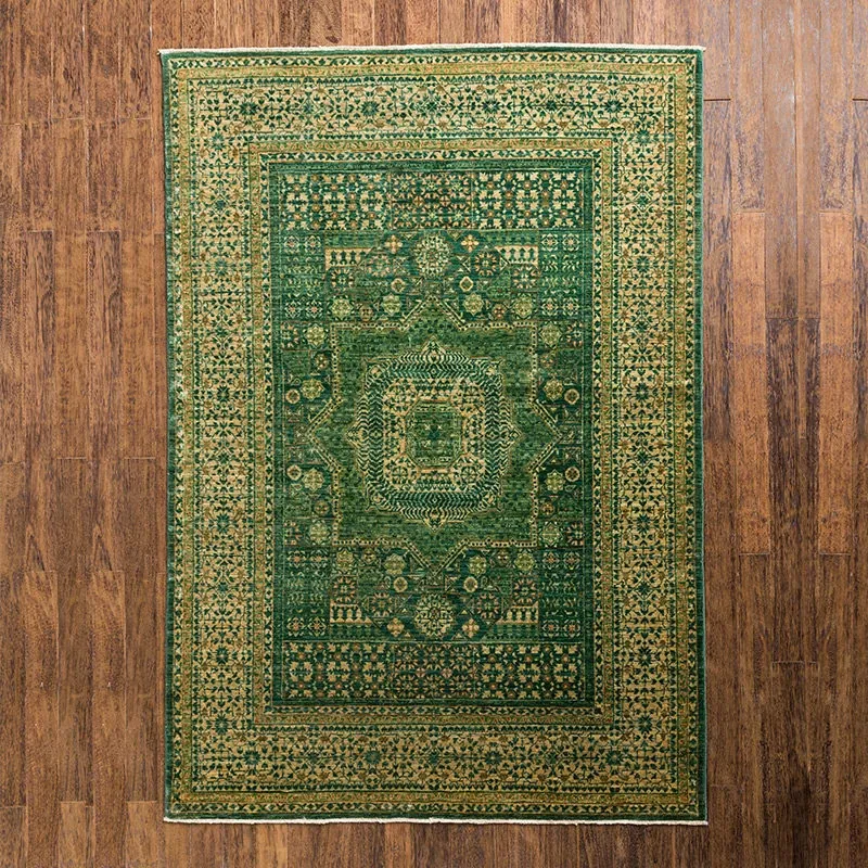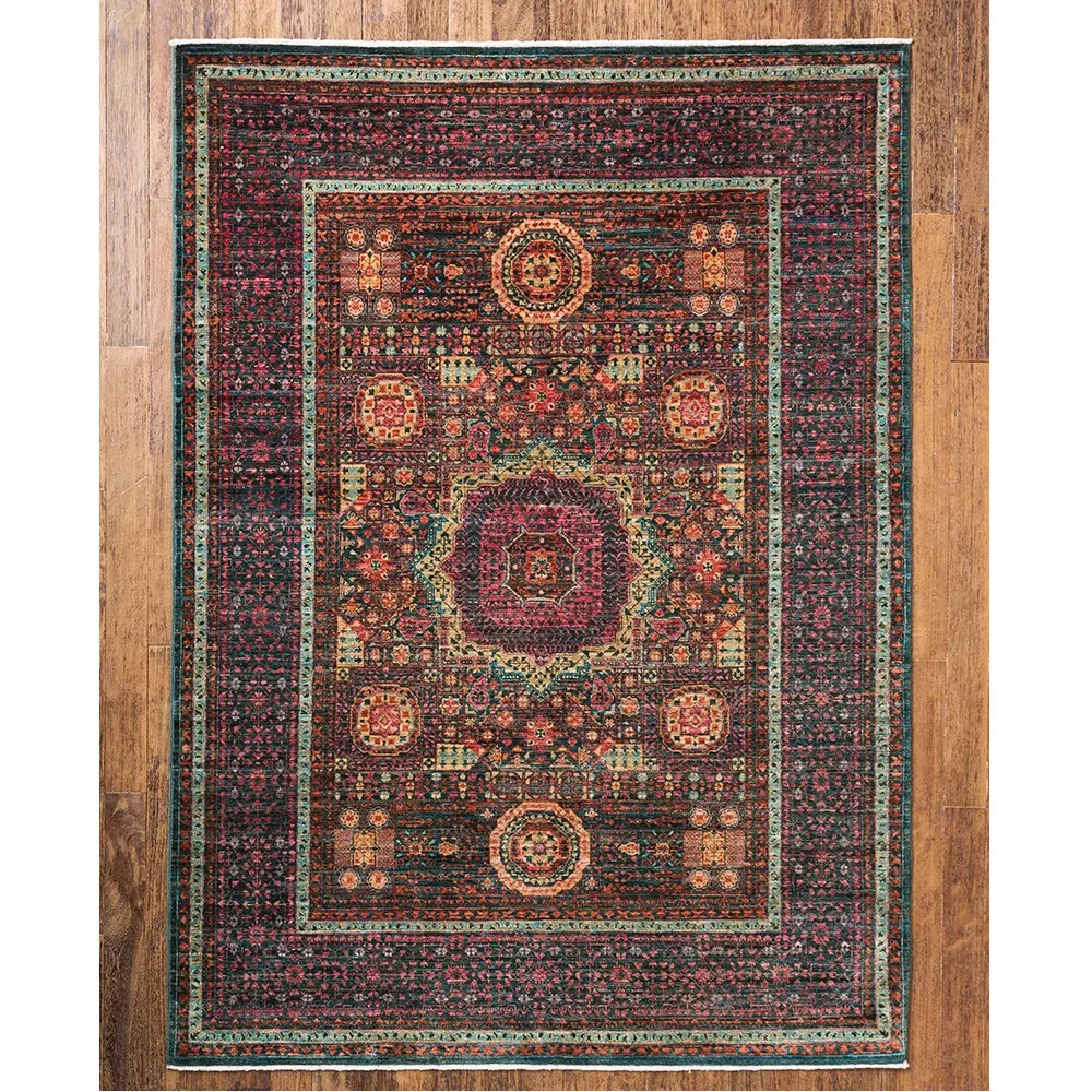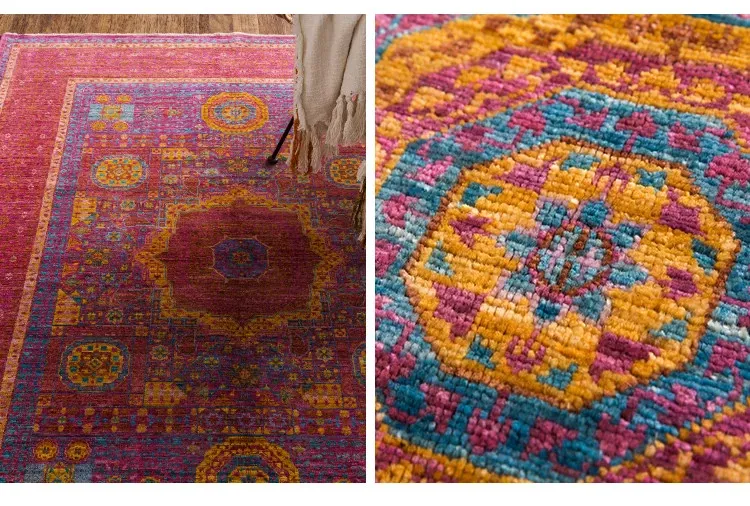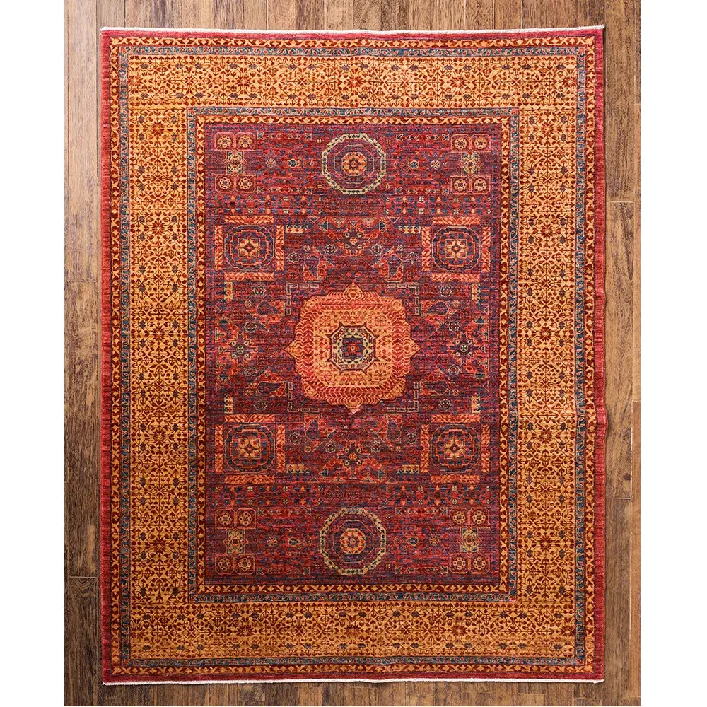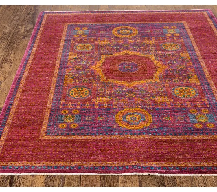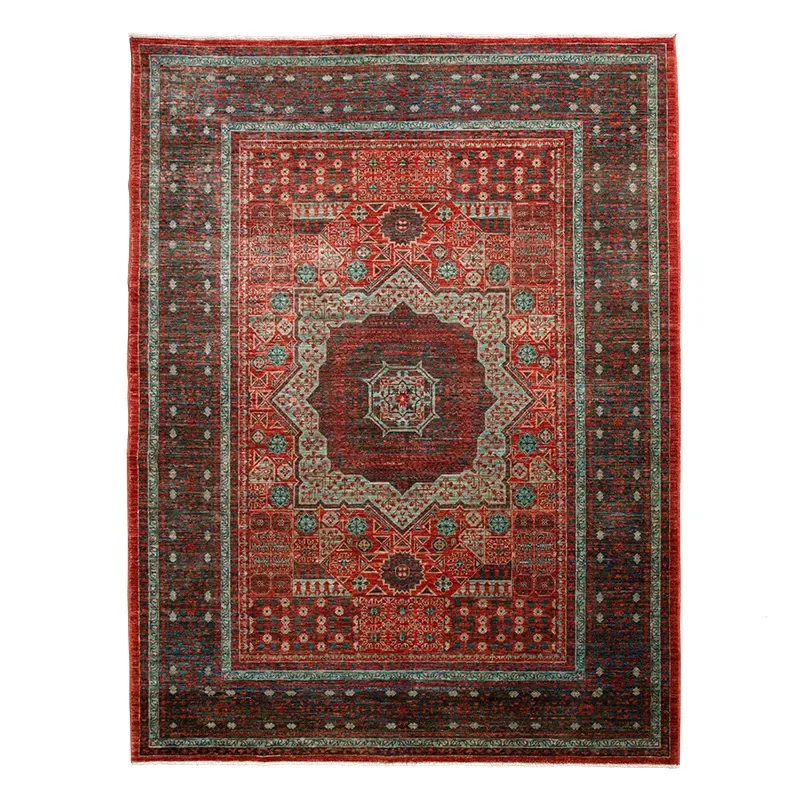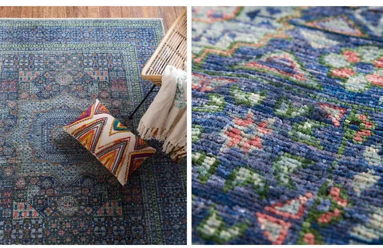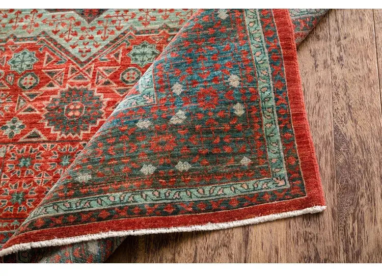 アフガニスタン直輸入!アメリカンレトロスタイルのペルシャ柄手作りウールラグ。寝室やリビングにぴったりの民族風デザイン、ふわふわの肌触りで心地よい空間を演出します。