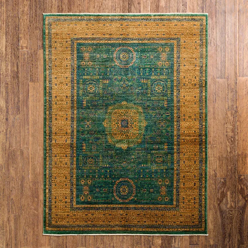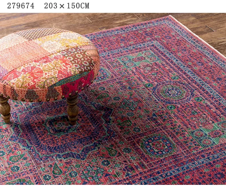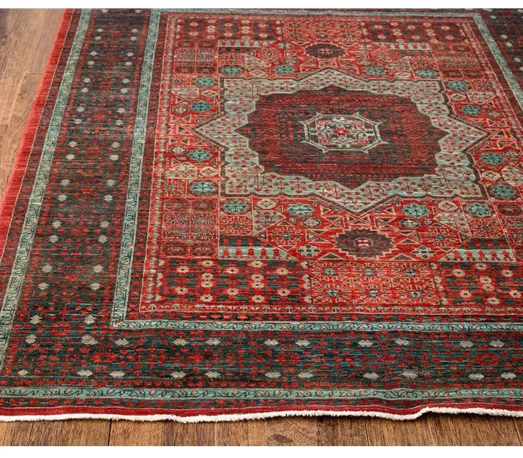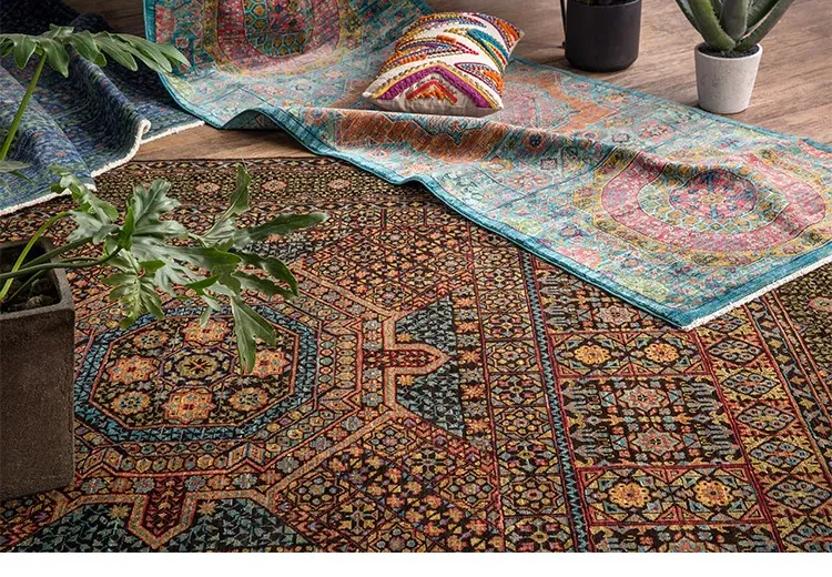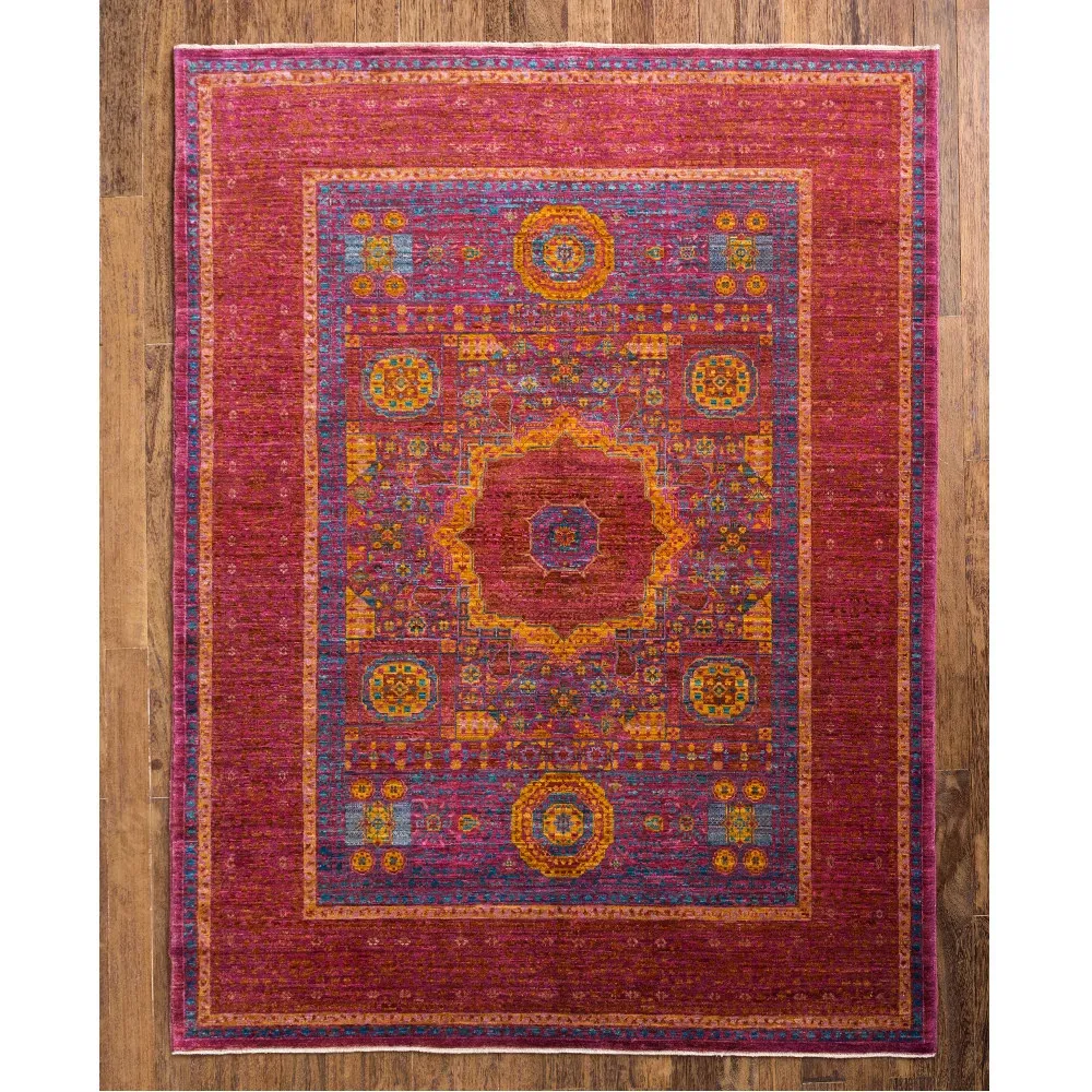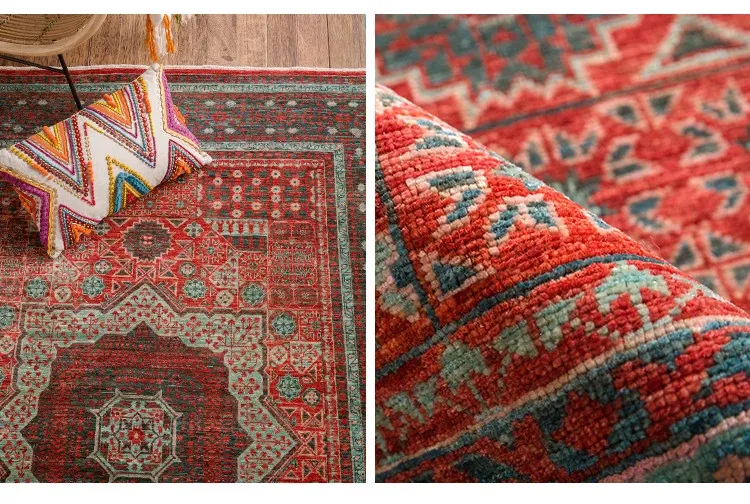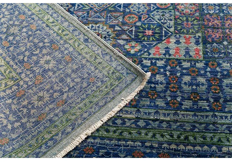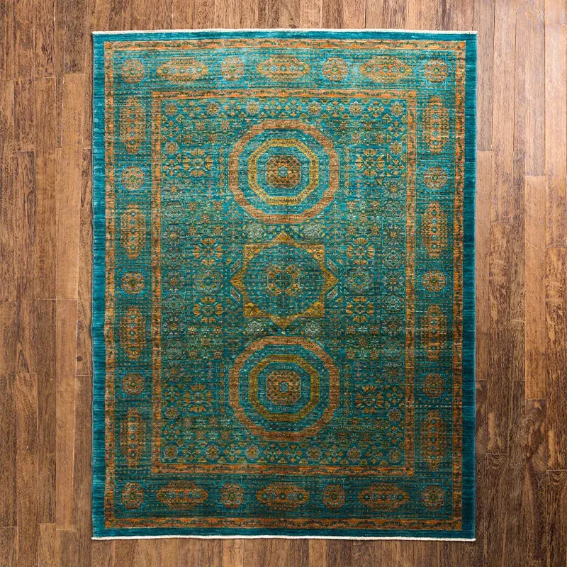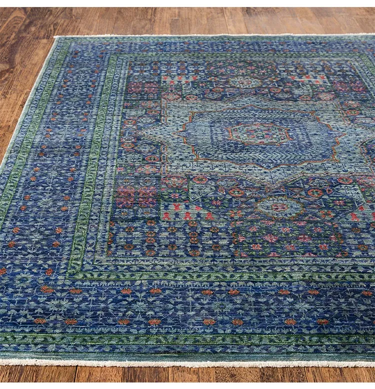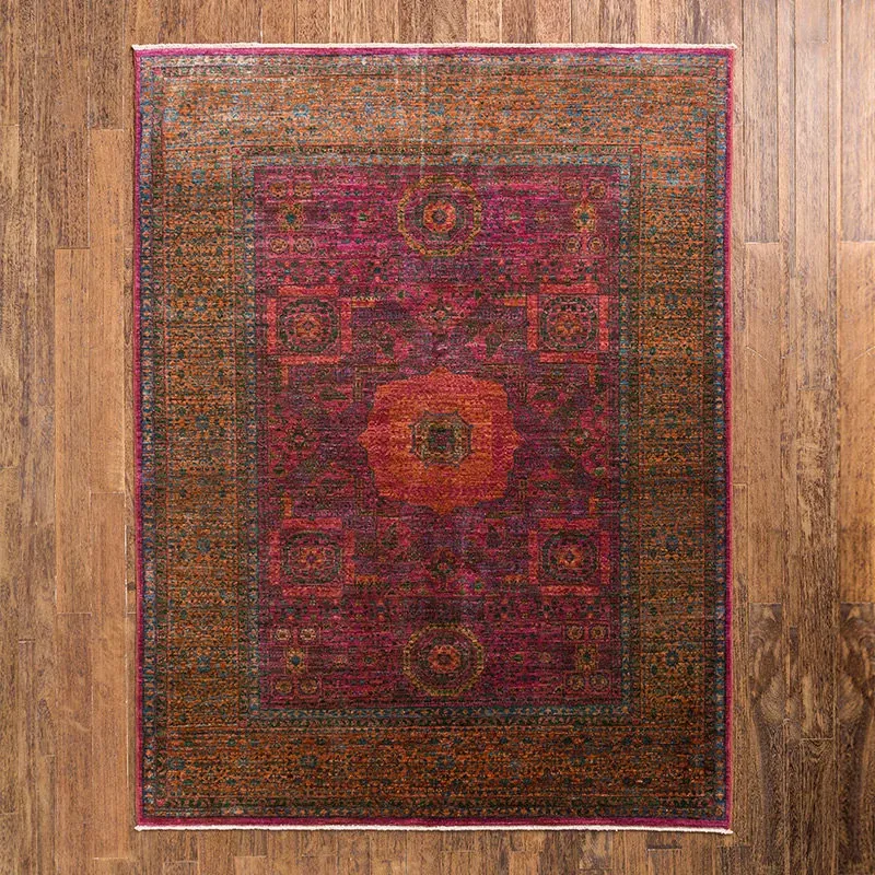 アフガニスタン直輸入!アメリカンレトロスタイルのペルシャ柄手作りウールラグ。寝室やリビングにぴったりの民族風デザイン、ふわふわの肌触りで心地よい空間を演出します。