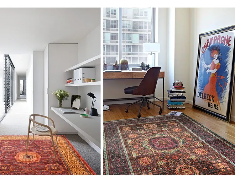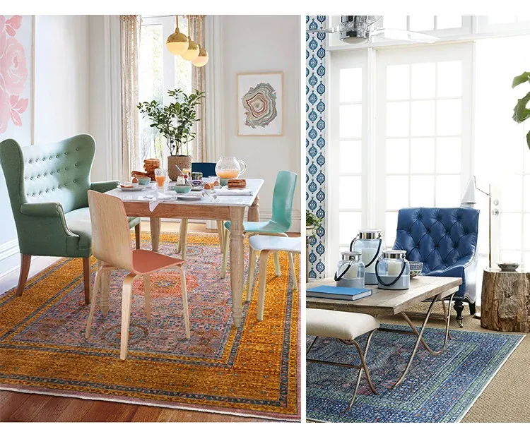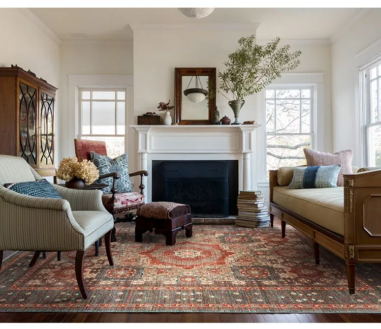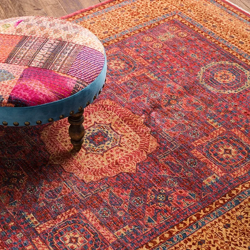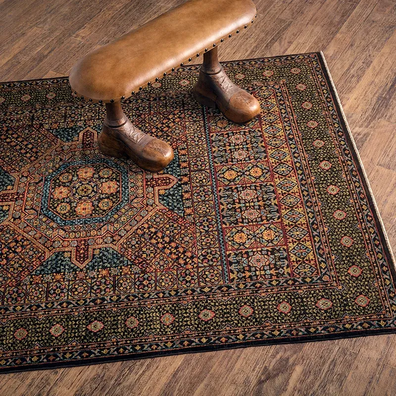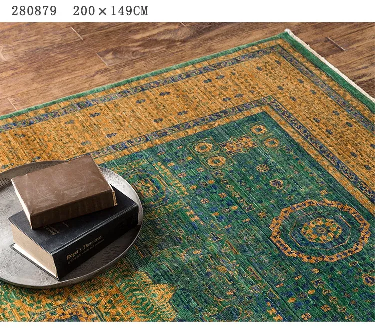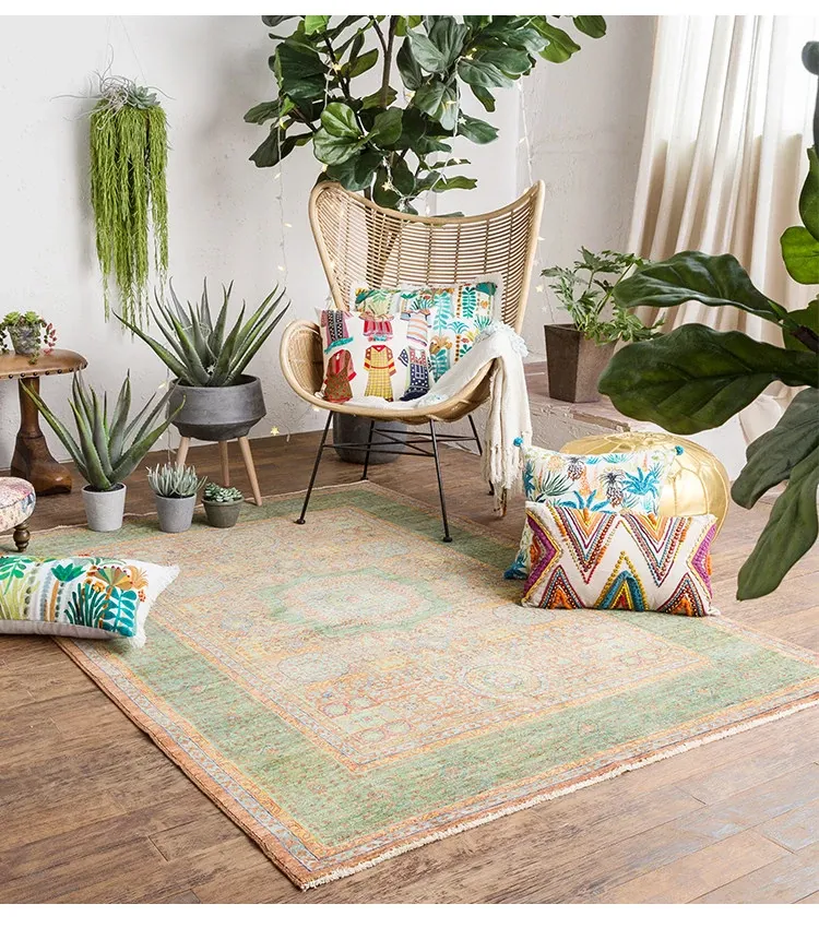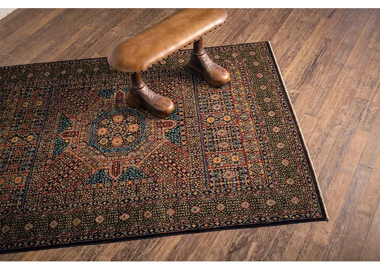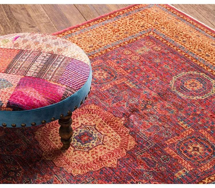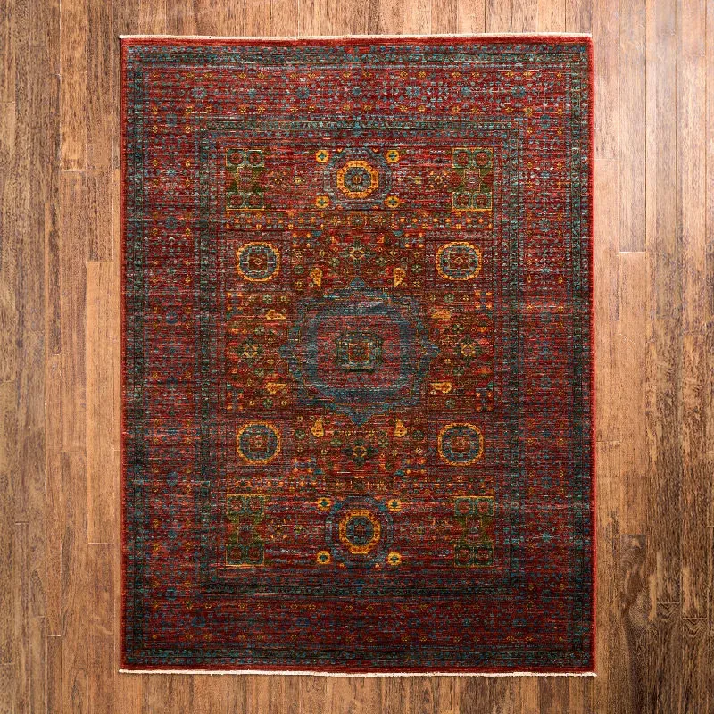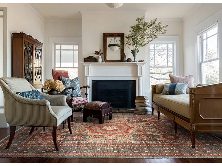 アフガニスタン直輸入!アメリカンレトロスタイルのペルシャ柄手作りウールラグ。寝室やリビングにぴったりの民族風デザイン、ふわふわの肌触りで心地よい空間を演出します。