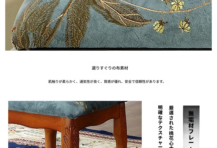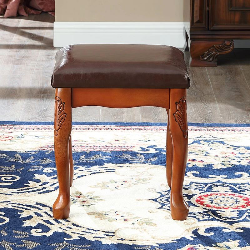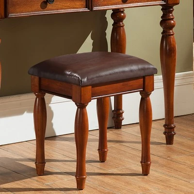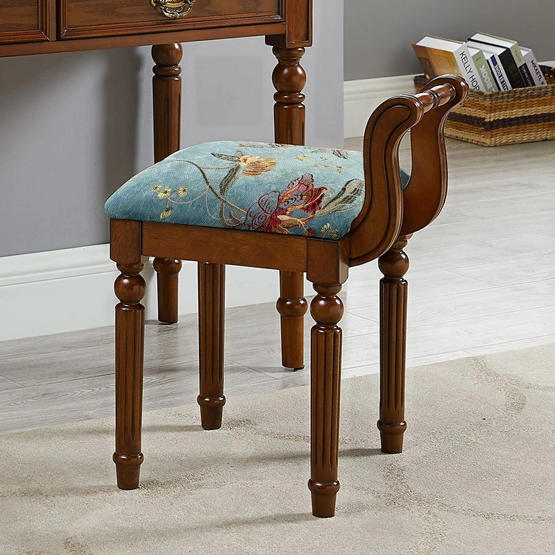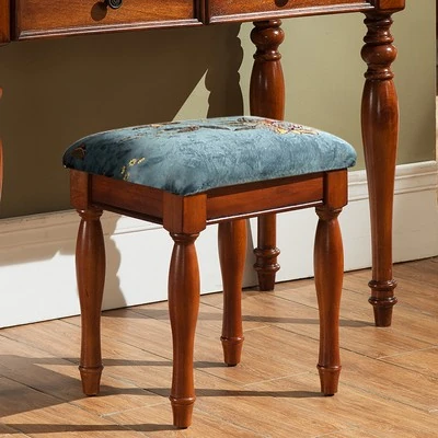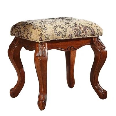 アメリカンスタイルの全木製化粧台スツール - 寝室や靴を履くための便利なスツール!エレガントな欧州風のファブリック仕上げ、古箏やピアノ用にも最適!特別価格で在庫一掃中!