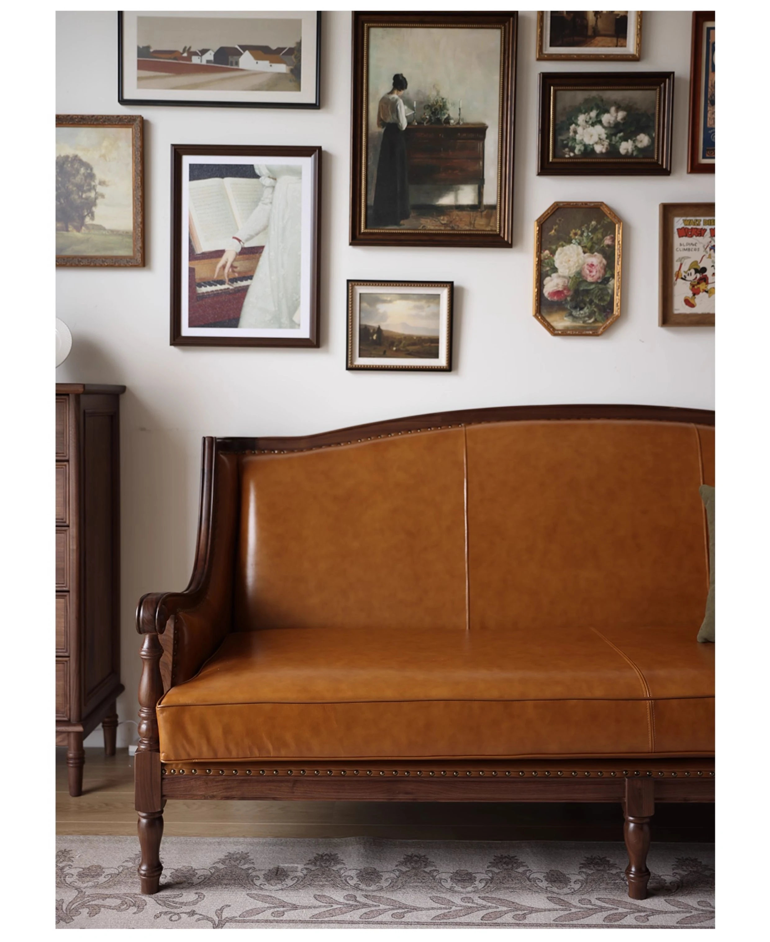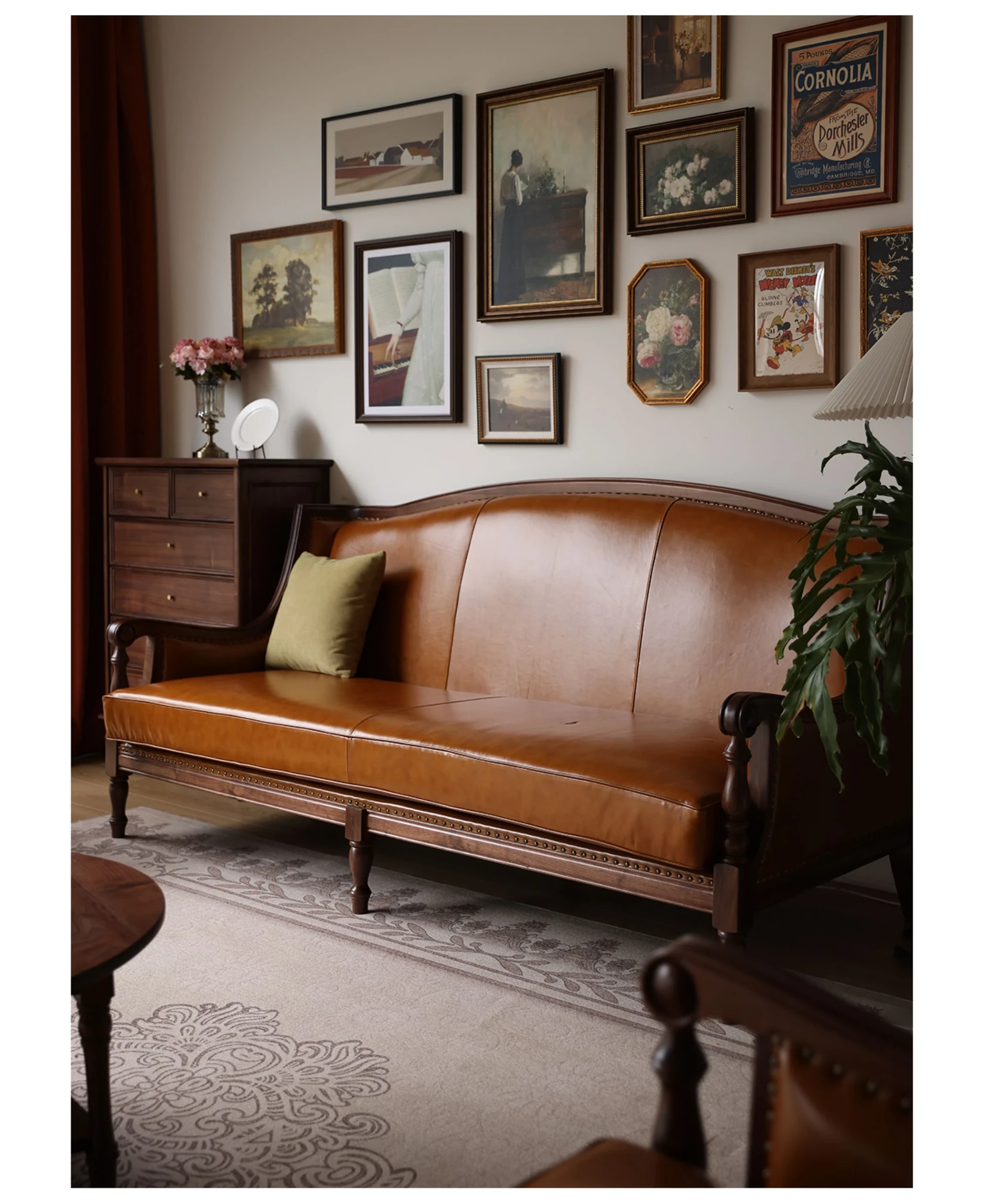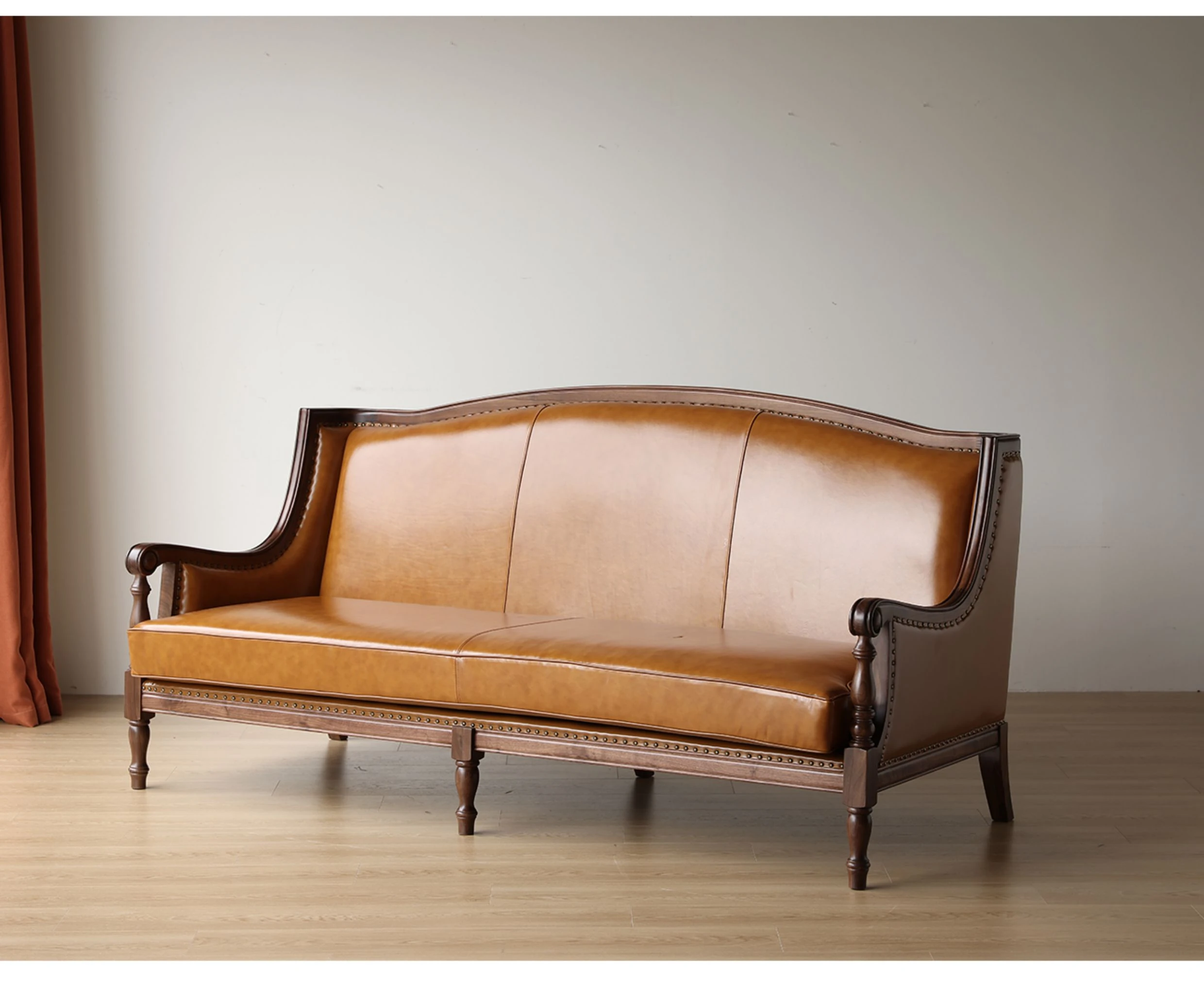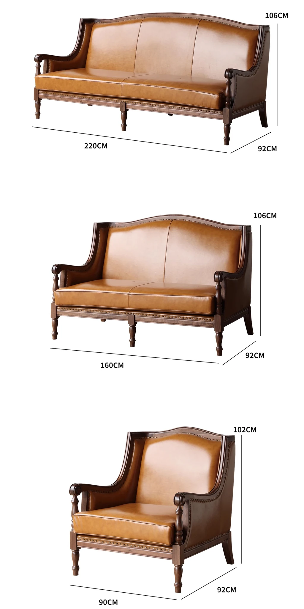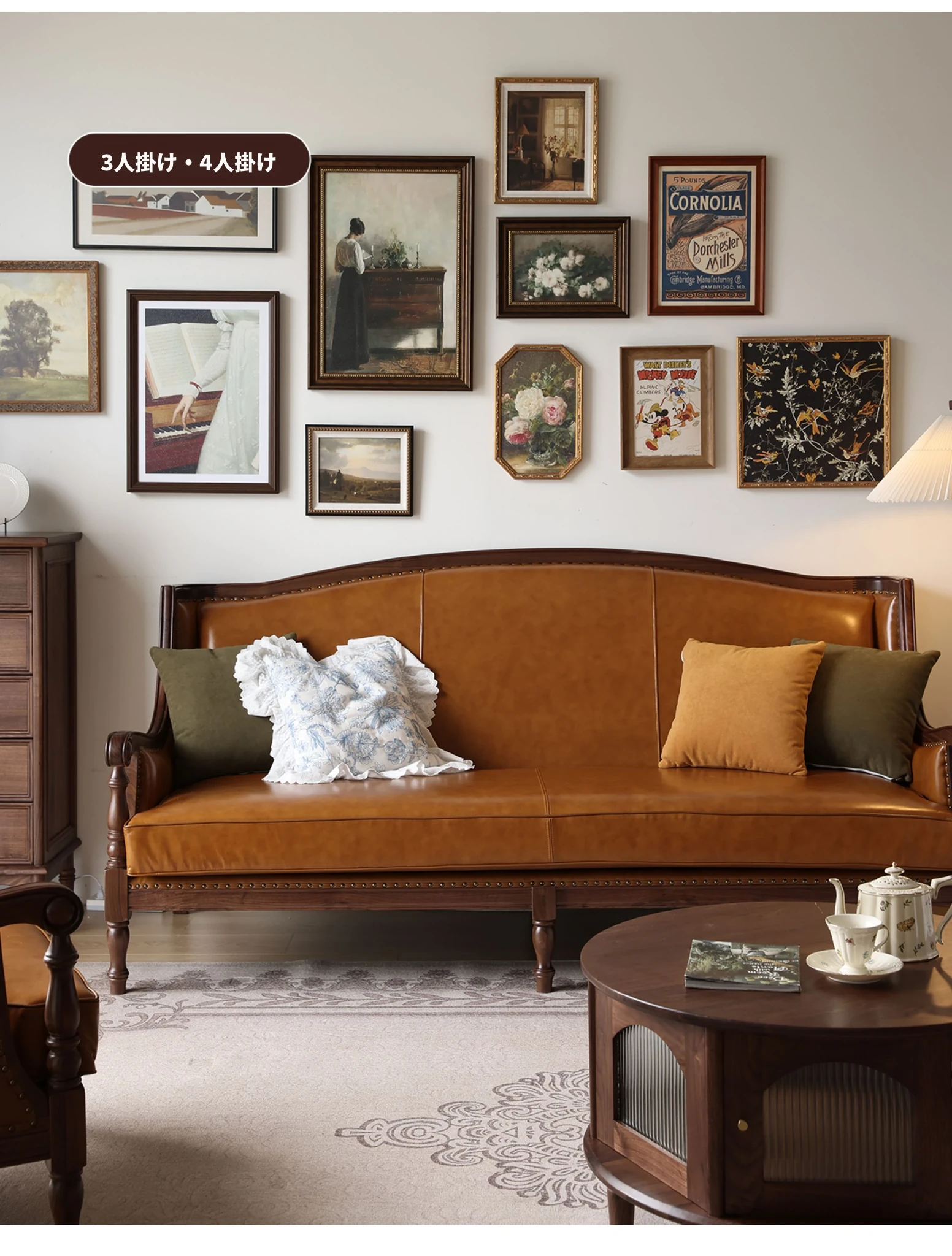 アメリカンレトロの無垢材と本革ソファ|北米産ブラックウォールナット使用|123cmコンビネーション|シンプルで洗練された高級ヴィラリビングルーム家具