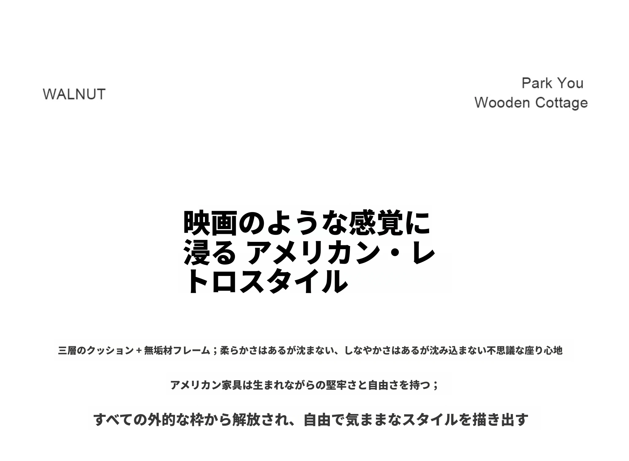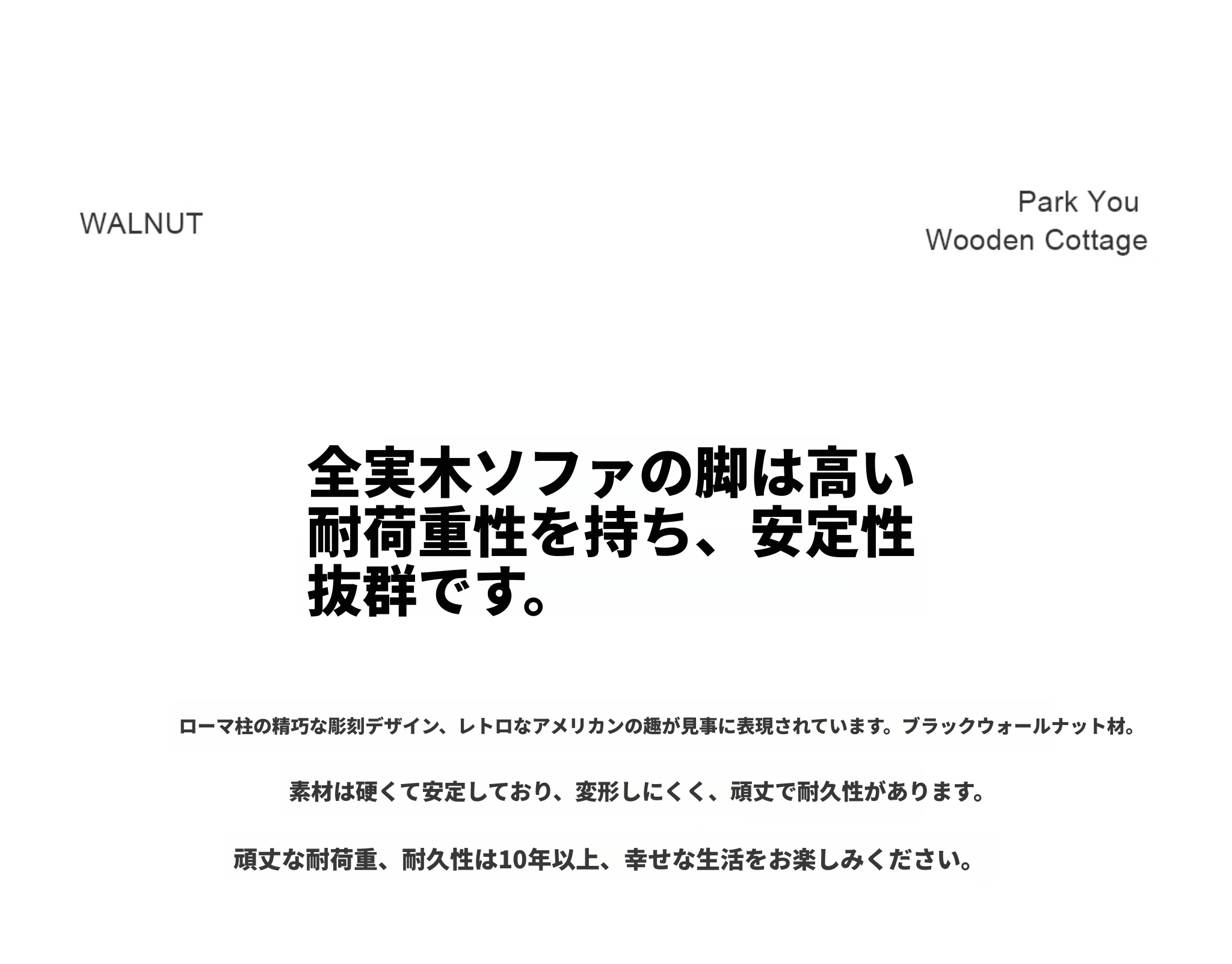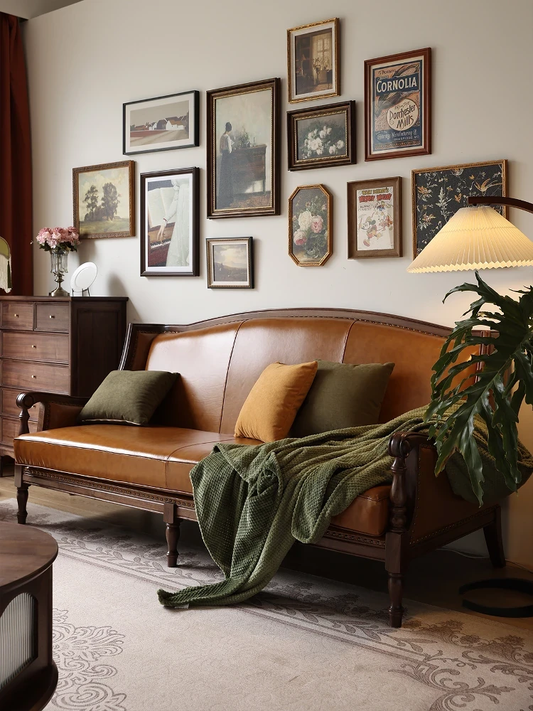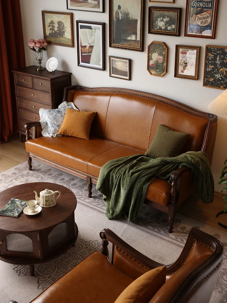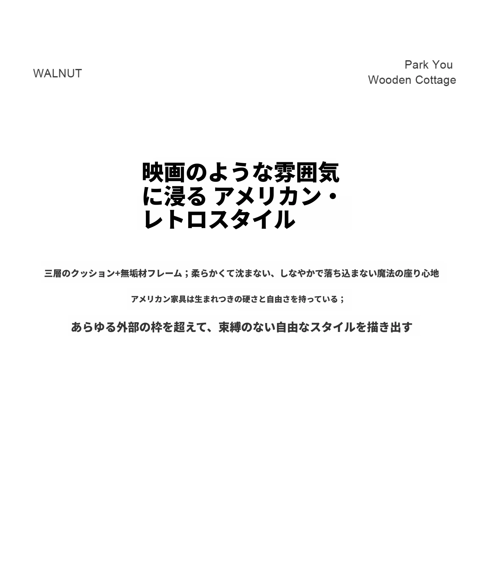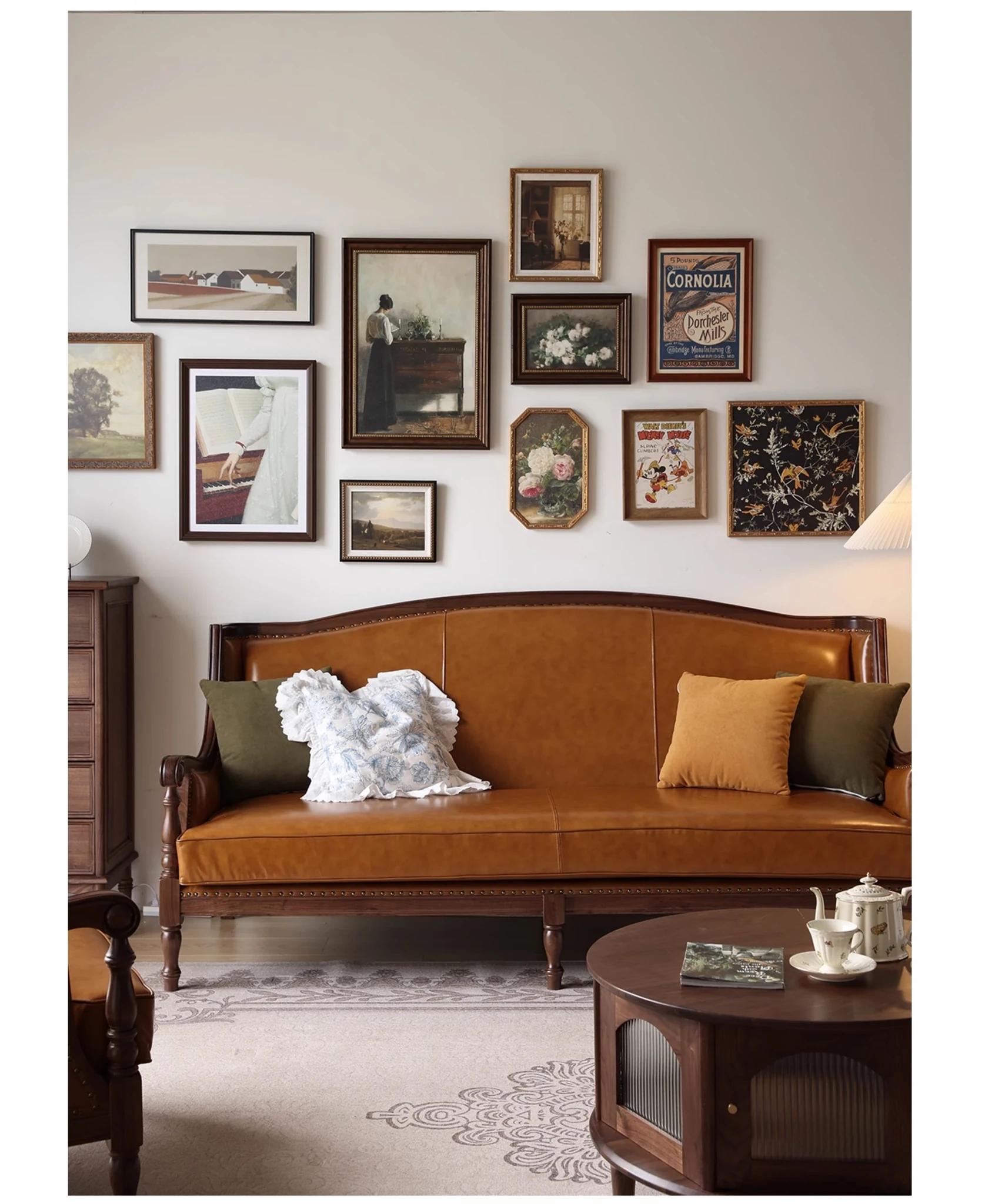 アメリカンレトロの無垢材と本革ソファ|北米産ブラックウォールナット使用|123cmコンビネーション|シンプルで洗練された高級ヴィラリビングルーム家具