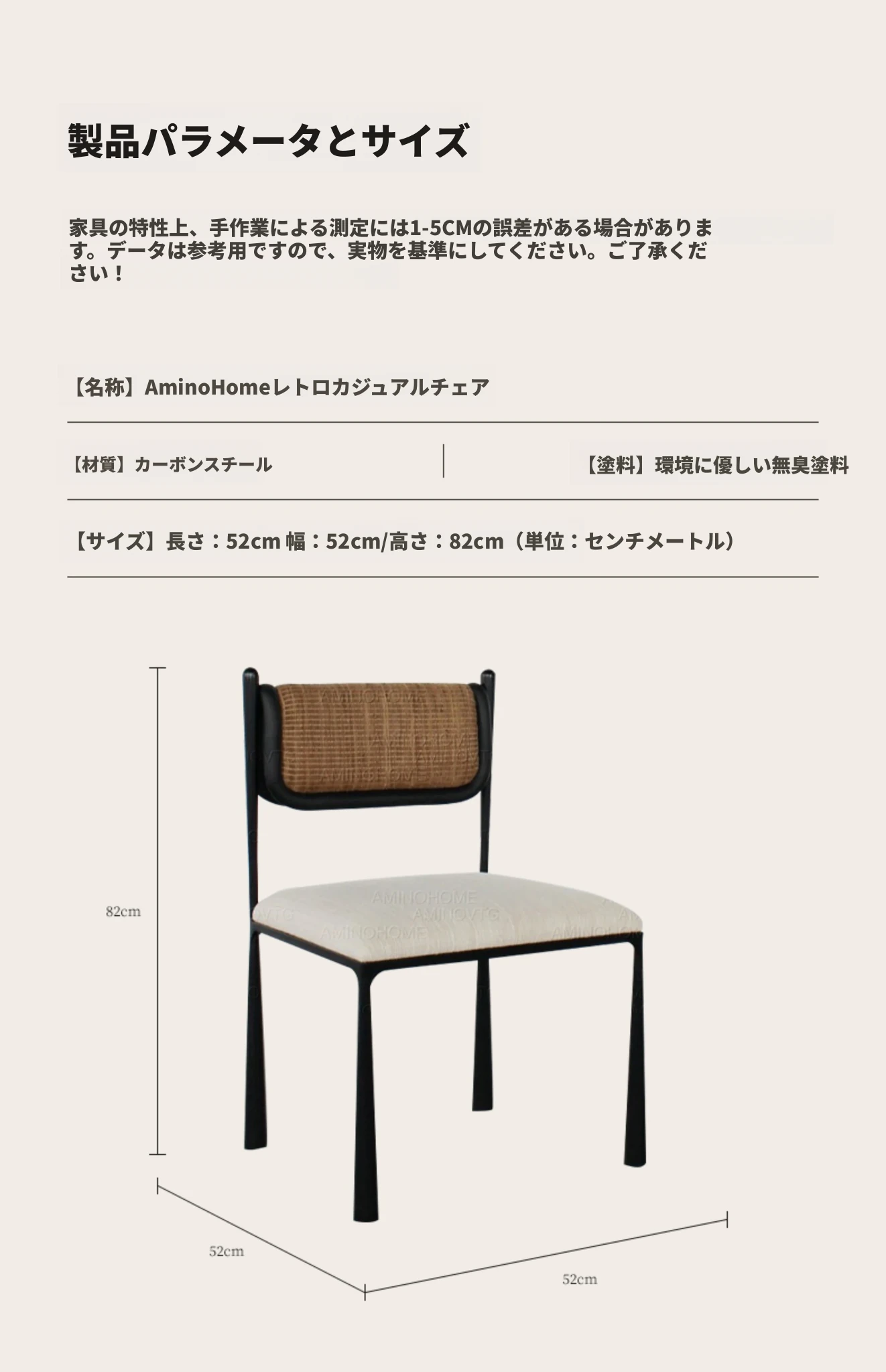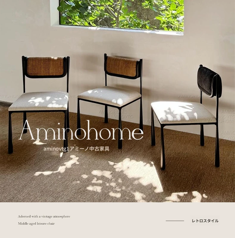 Aminohome/中古風レトロダイニングチェア|高級デザイナーの布製書斎椅子|侘寂スタイルでおしゃれな一脚|心地よい空間を演出するこだわりの逸品