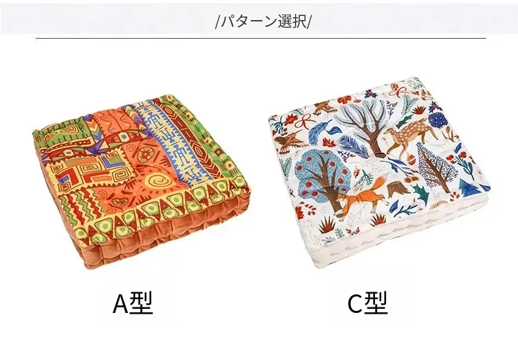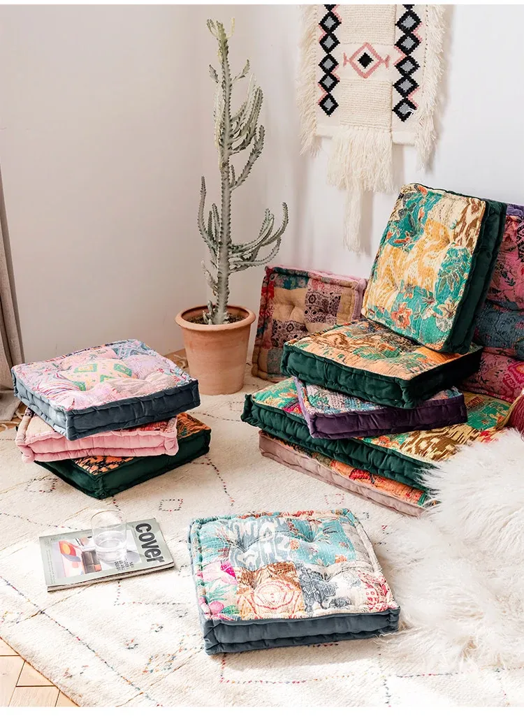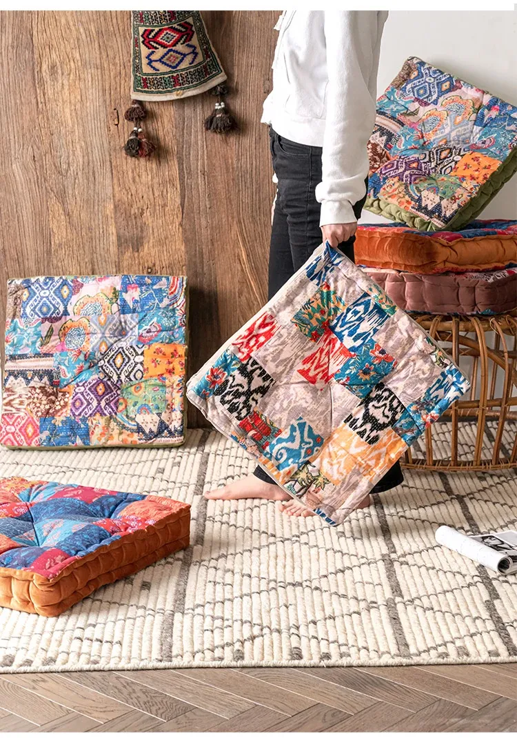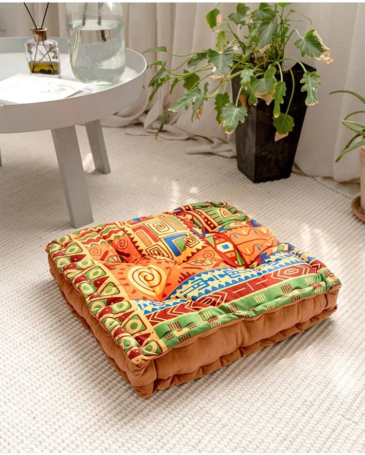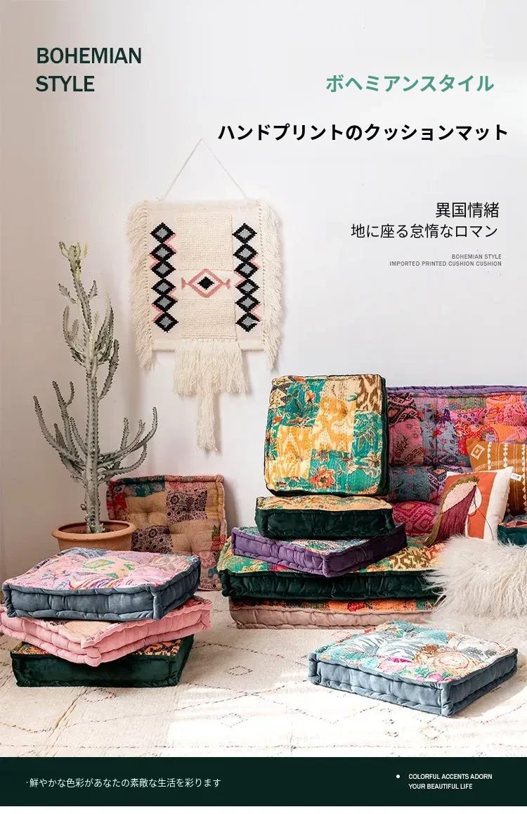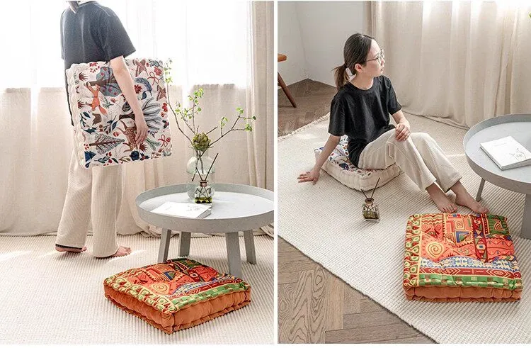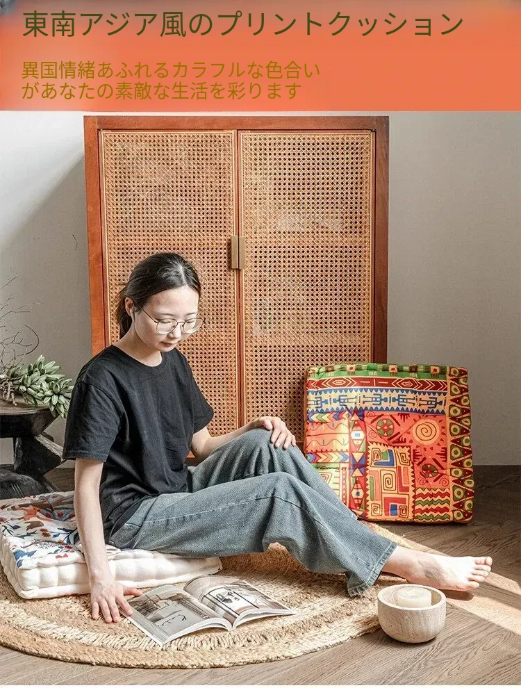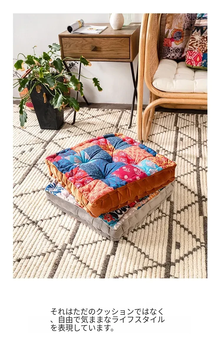 ビジュアルな風味のボヘミアンスタイル!座り心地抜群のヨガクッション、バルコニーや畳にもぴったりな華やかなプリント装飾。リラックスした空間を演出し、心身のバランスを整えます!