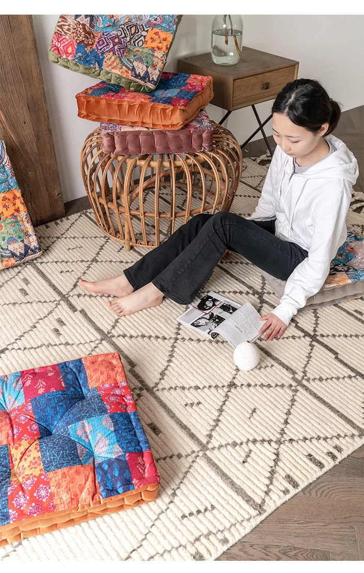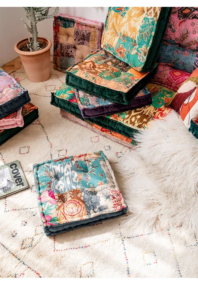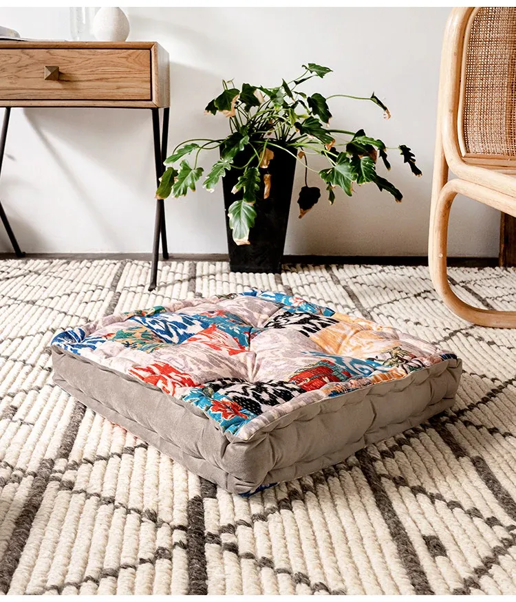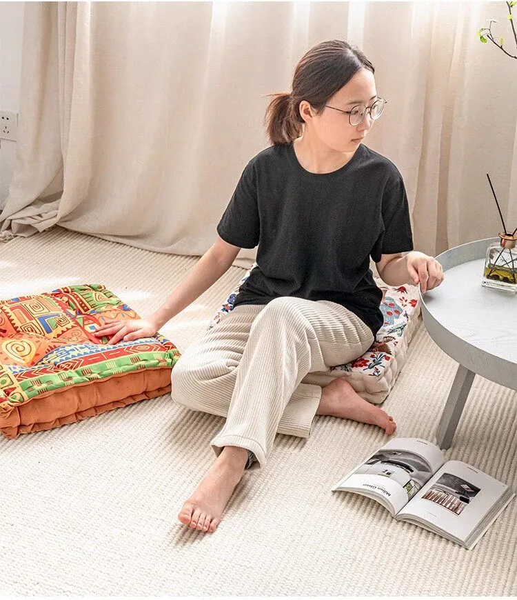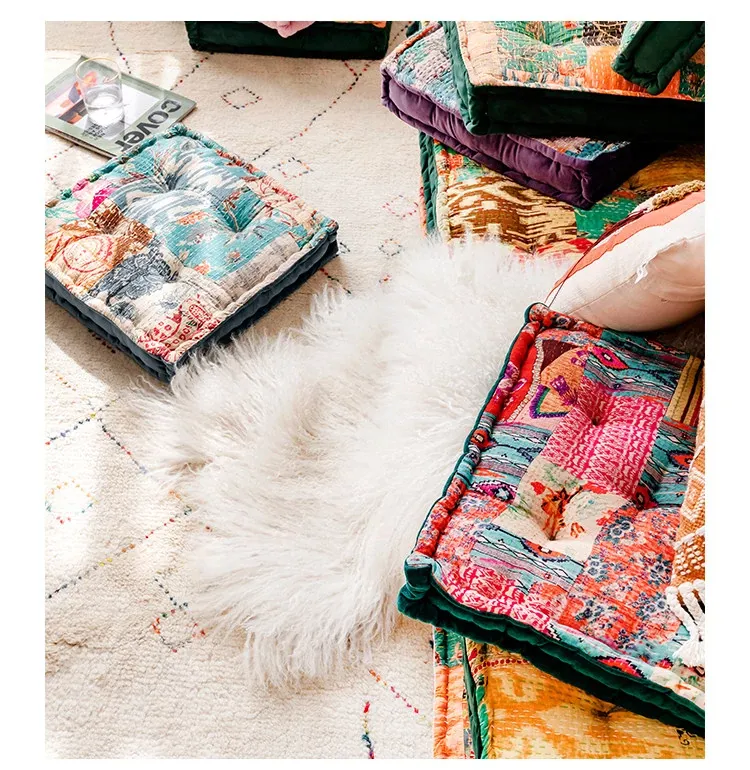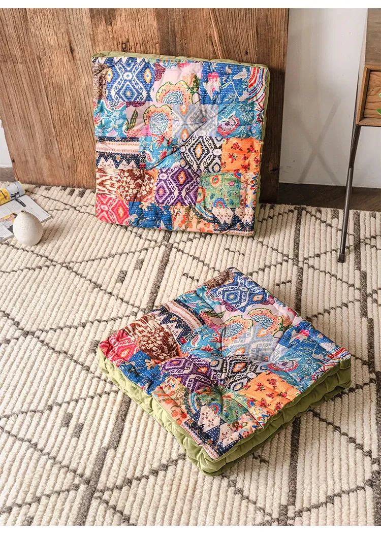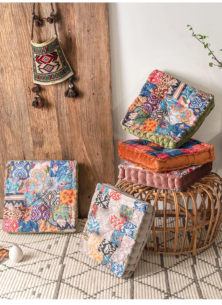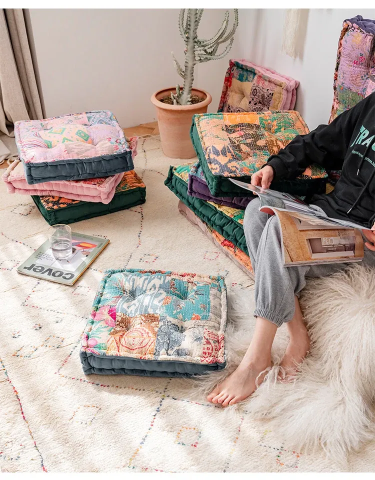 ビジュアルな風味のボヘミアンスタイル!座り心地抜群のヨガクッション、バルコニーや畳にもぴったりな華やかなプリント装飾。リラックスした空間を演出し、心身のバランスを整えます!