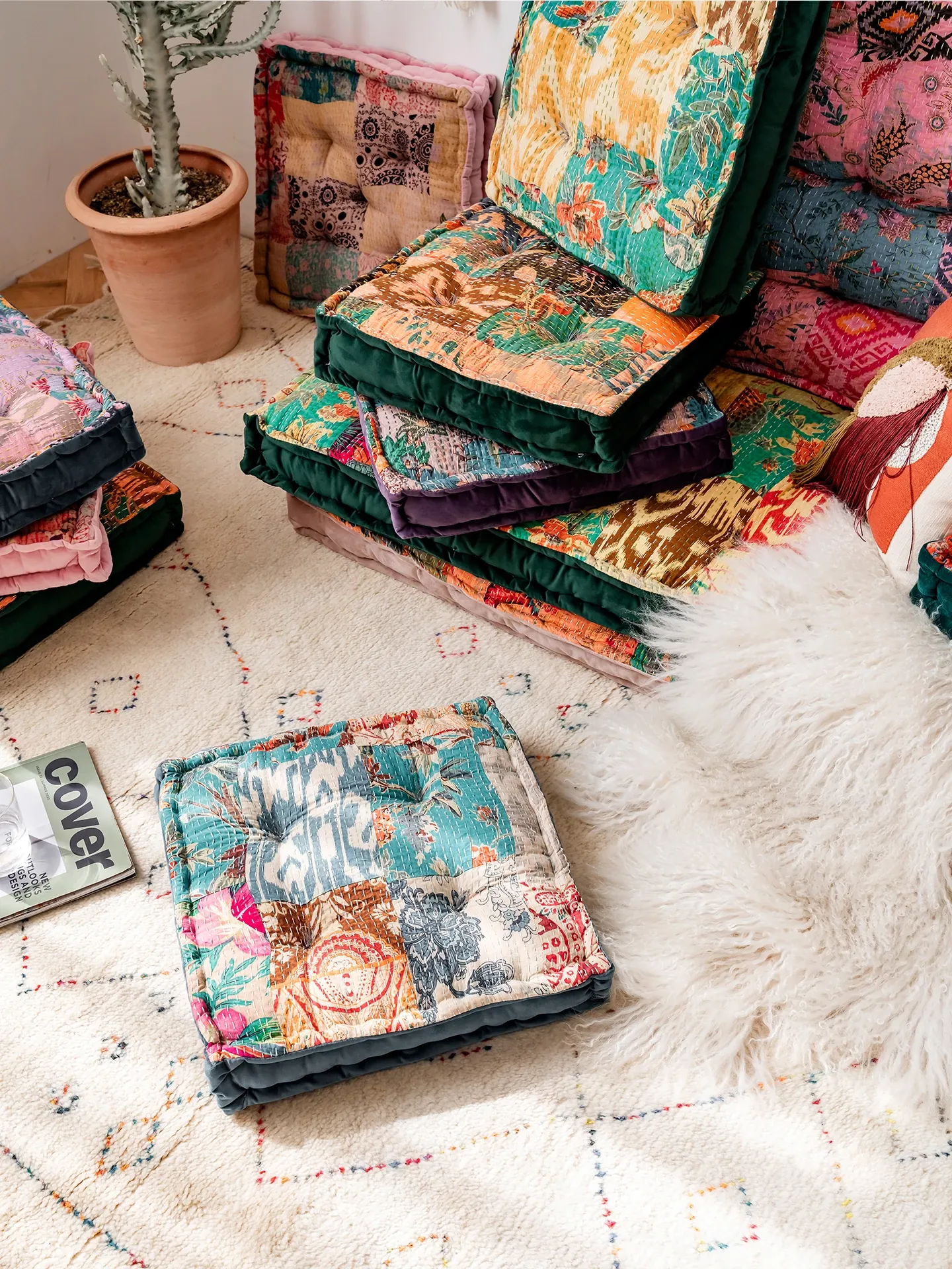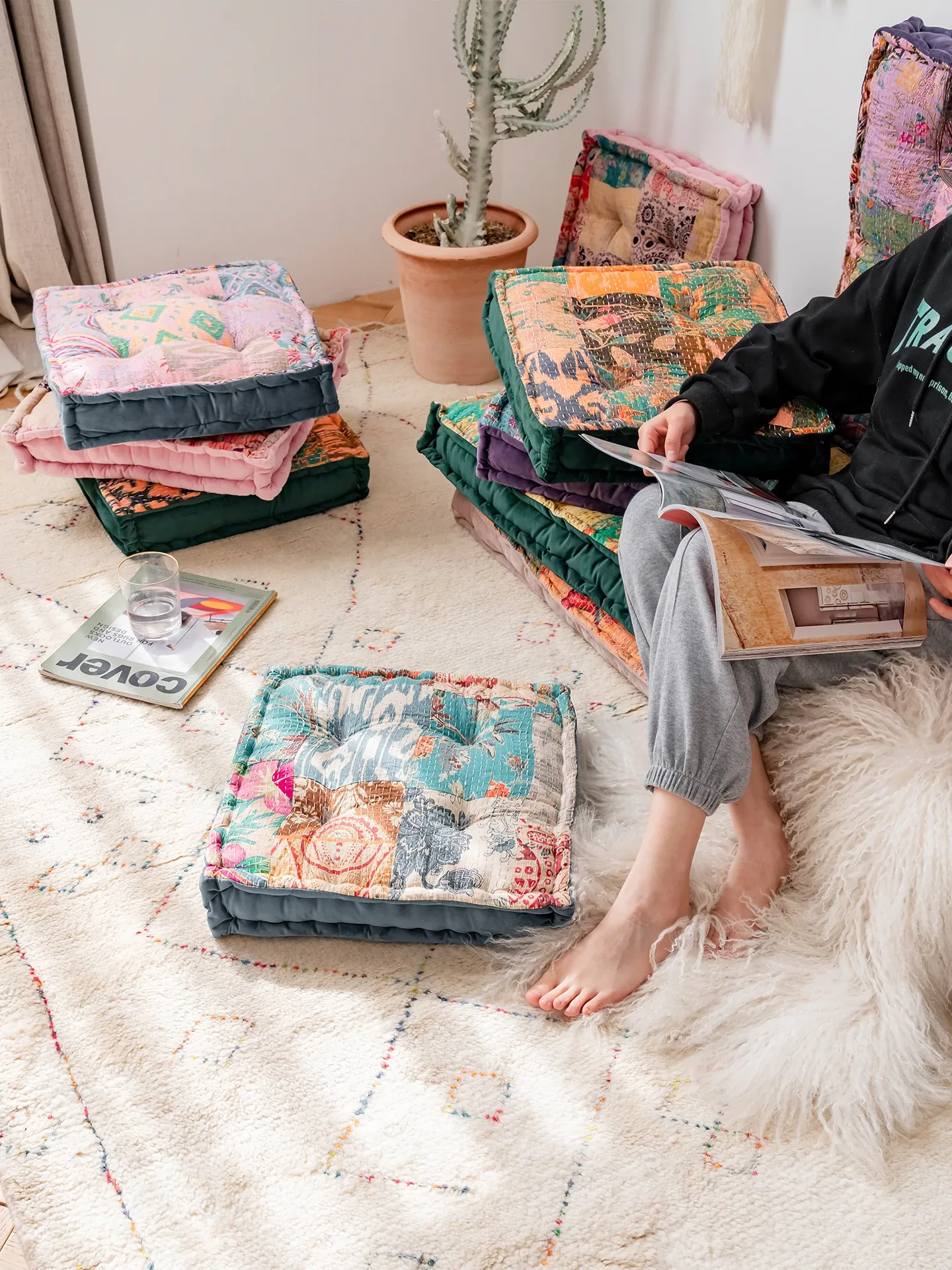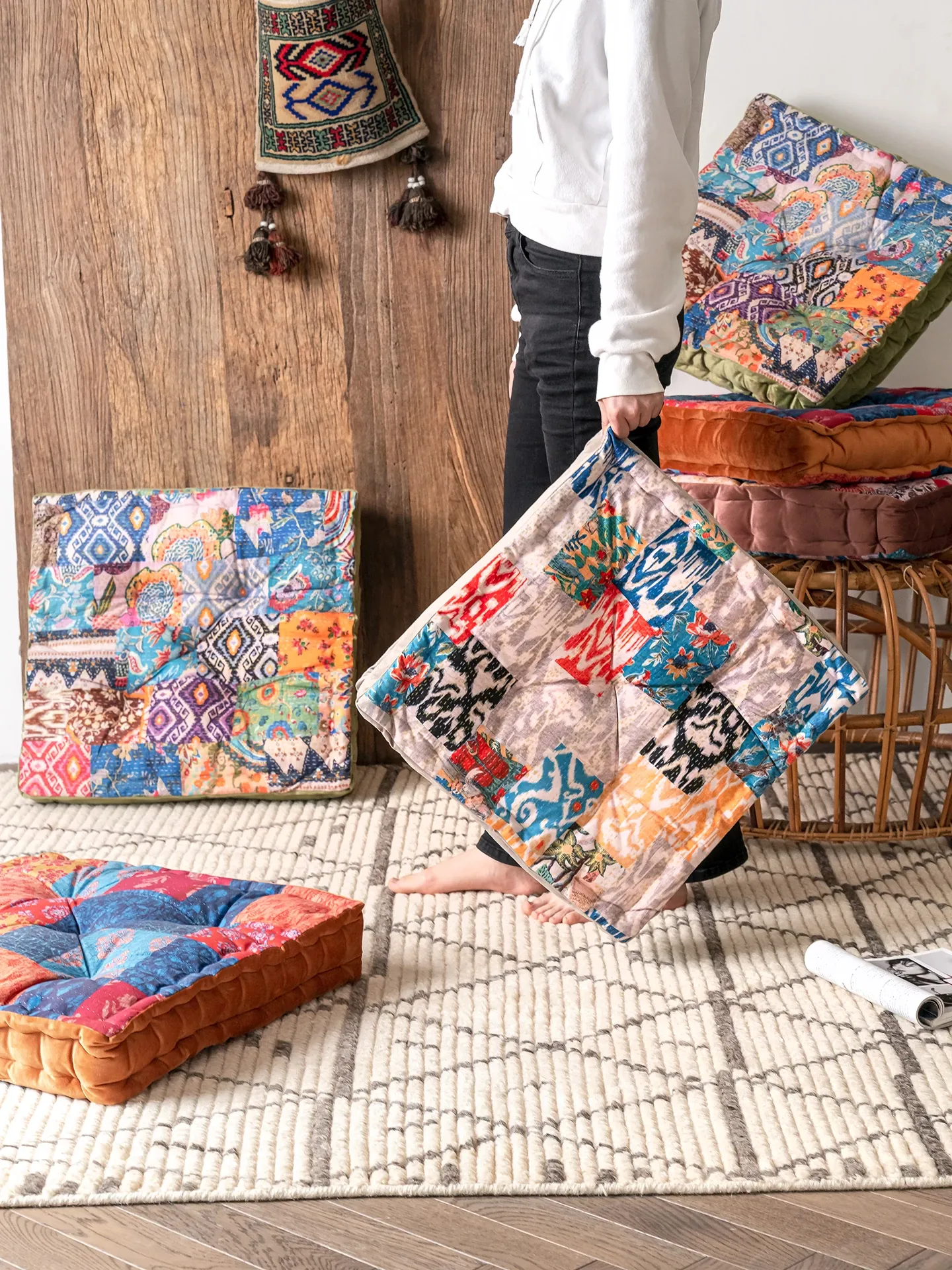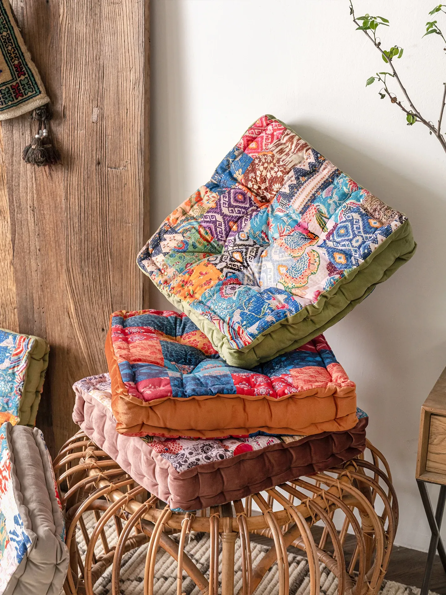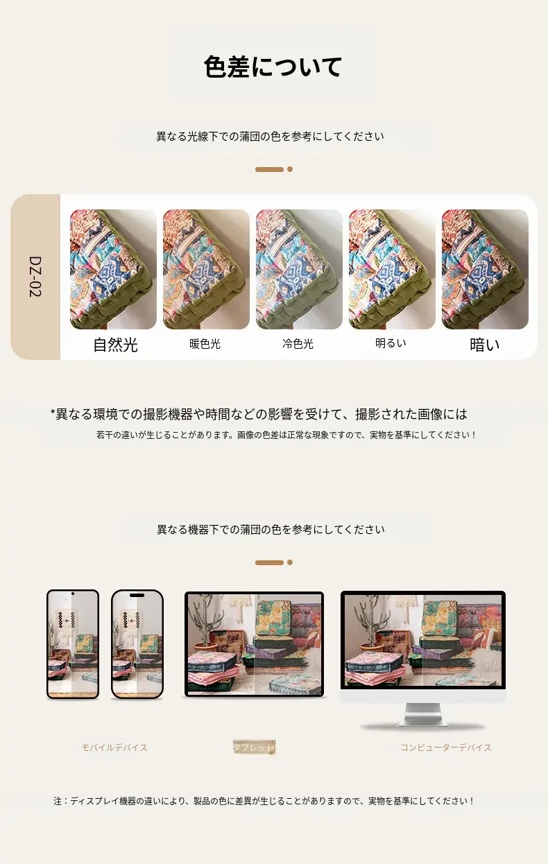ビジュアルな風味のボヘミアンスタイル!座り心地抜群のヨガクッション、バルコニーや畳にもぴったりな華やかなプリント装飾。リラックスした空間を演出し、心身のバランスを整えます!