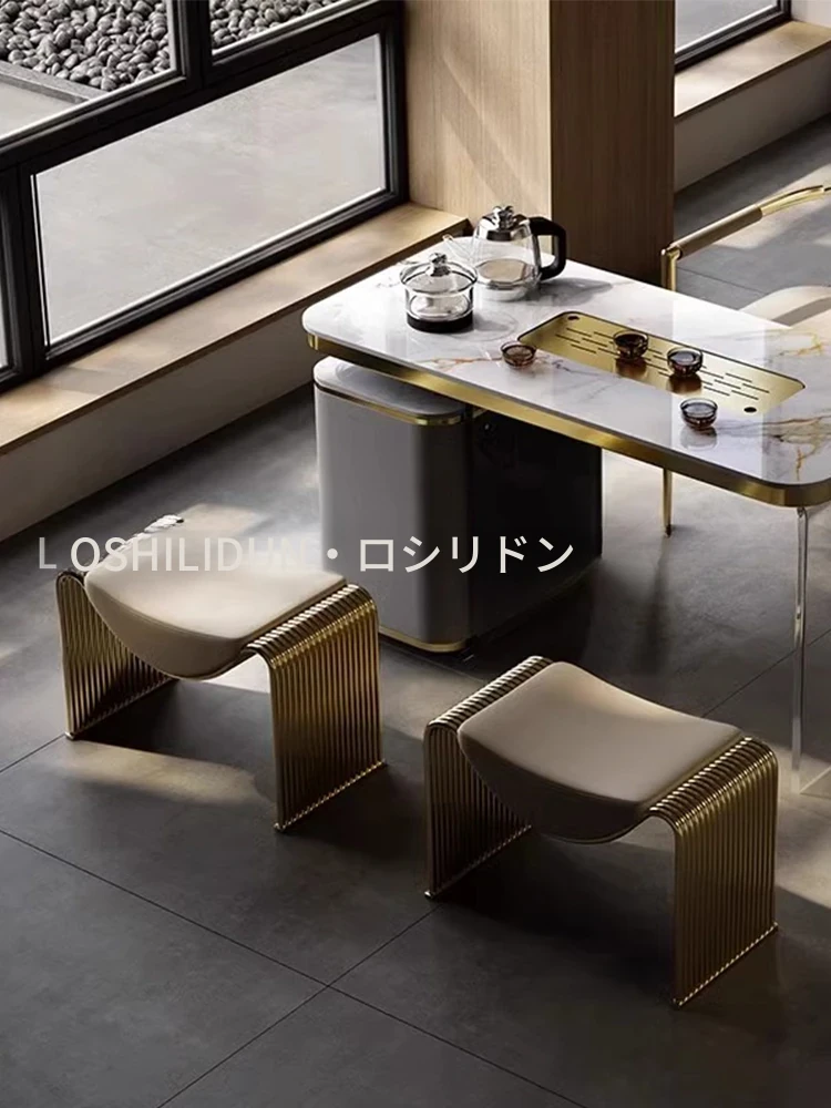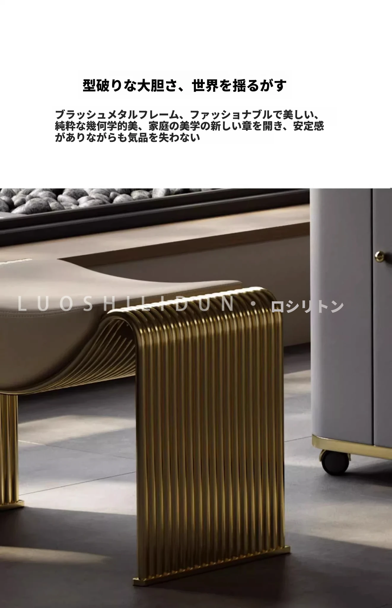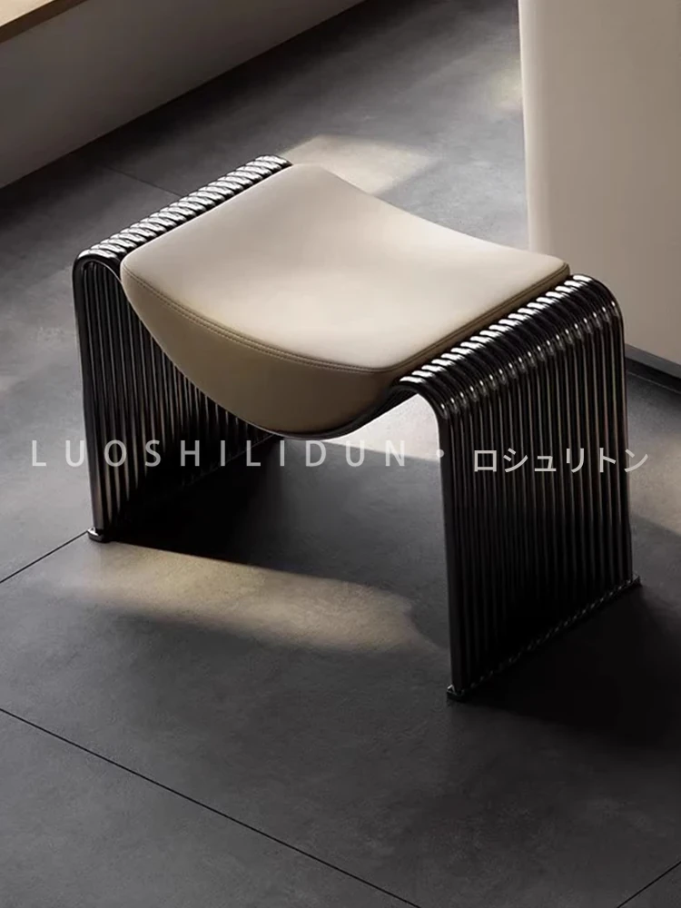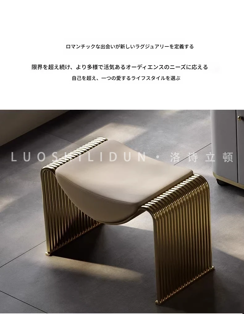 軽奢デザインの化粧台スツール - シンプルでおしゃれなベッドルーム用、ティーテーブルにも最適な革製スツール。おしゃれなシューズチェンジにも対応し、高級感あふれる空間を演出します!