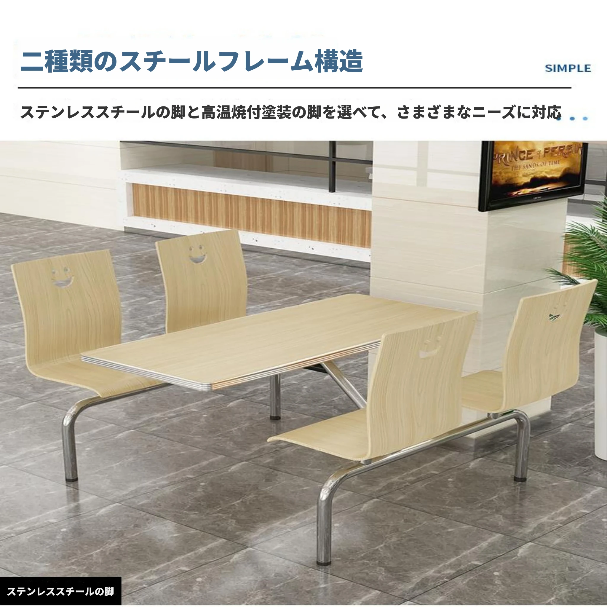従業員食堂や学校向けのシンプルで経済的な4人用コンビネーションセット!快適なダイニング体験を提供するテーブルと椅子のセットで、工場や学生のニーズにも最適です。