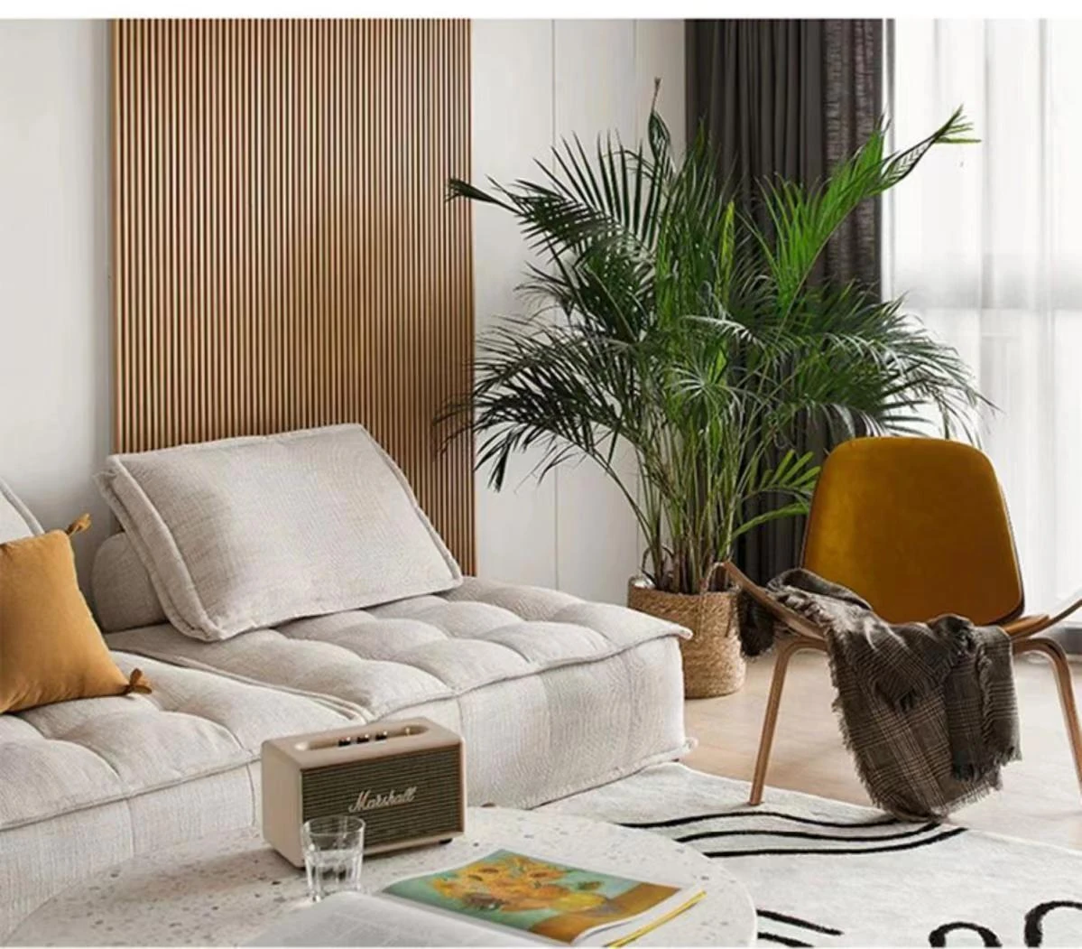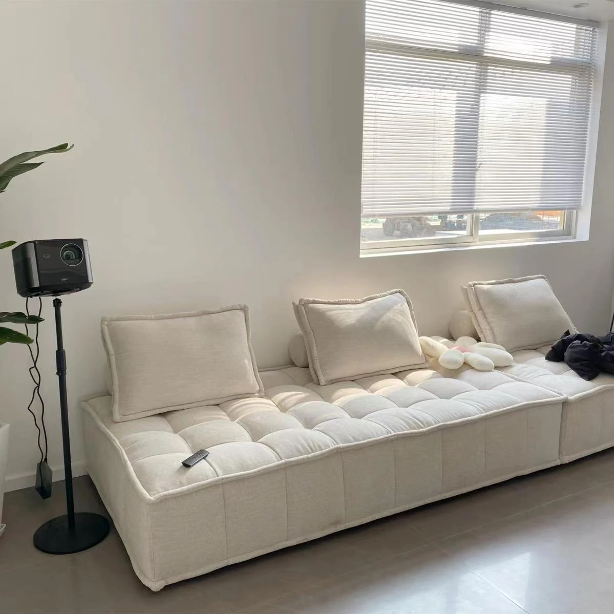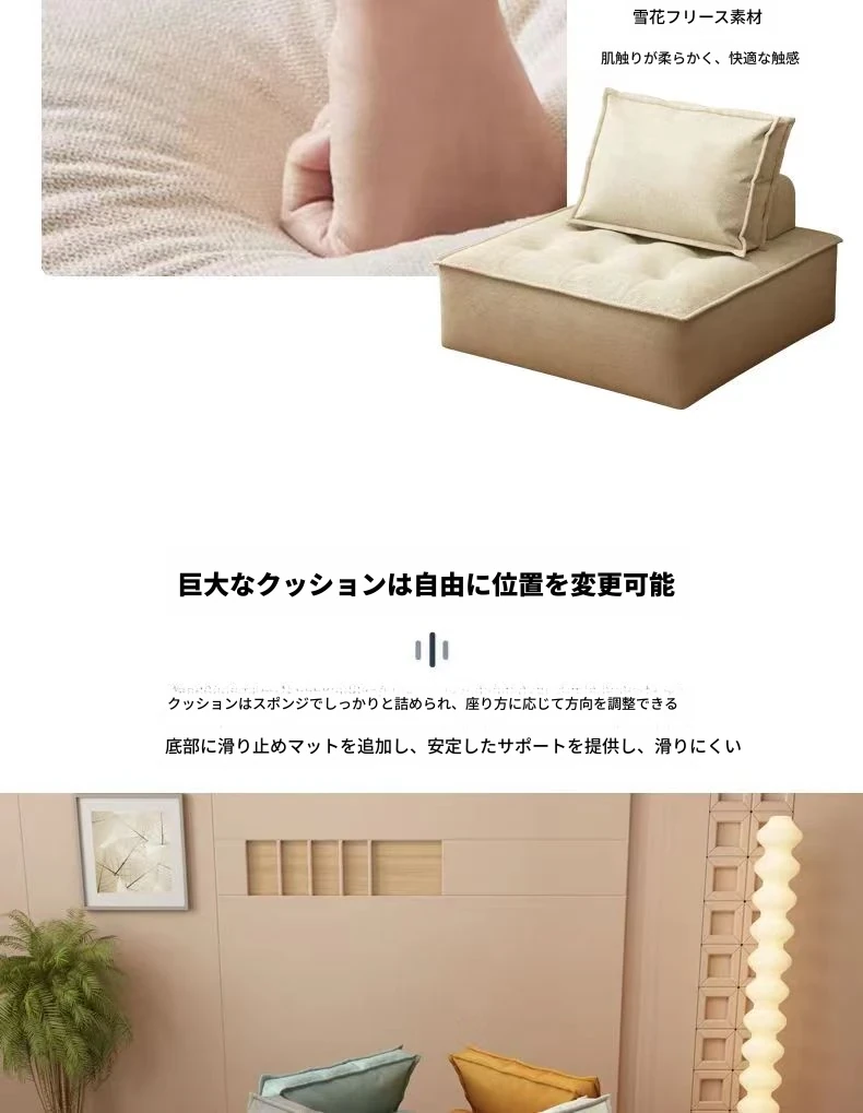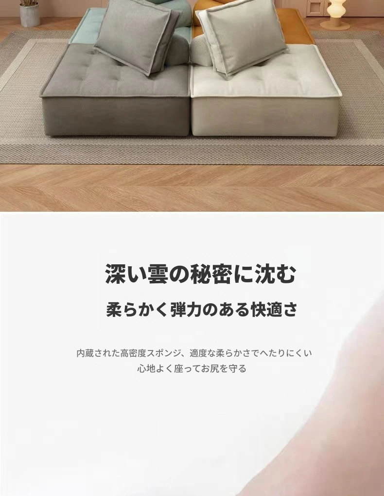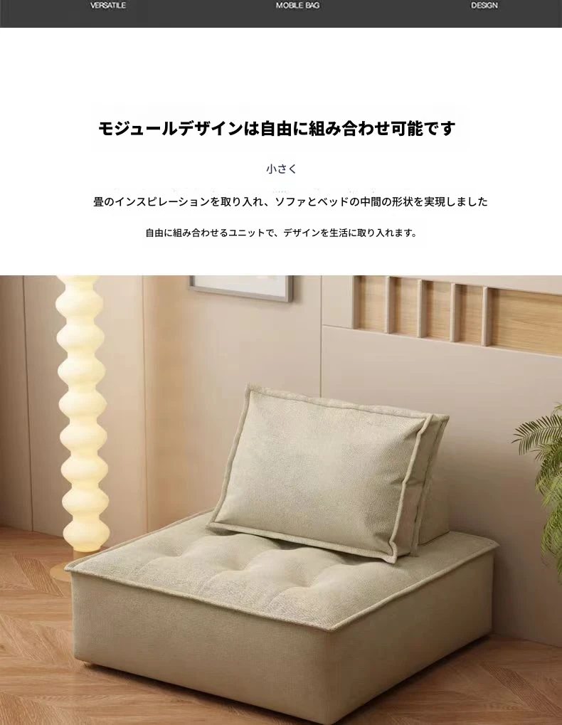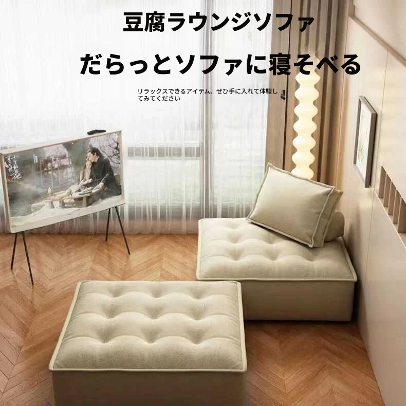 コンパクトな豆腐ブロックソファー - アパートやリビングルーム、バルコニーに最適なスタイリッシュな組み合わせ。リラックスできる畳スタイルの一人掛けソファで、あなたのくつろぎ空間を演出します!