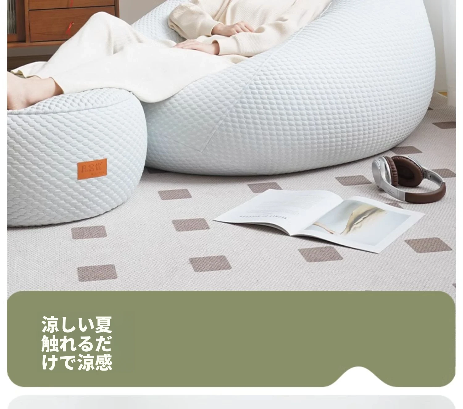 ひんやりとしたアイスシルクのリラックスソファ、寝ても使える!リビングやバルコニーに最適な一人用、洗えるカバー付きのコンパクトな畳スタイルのリクライニングチェア。快適さとスタイルを両立!