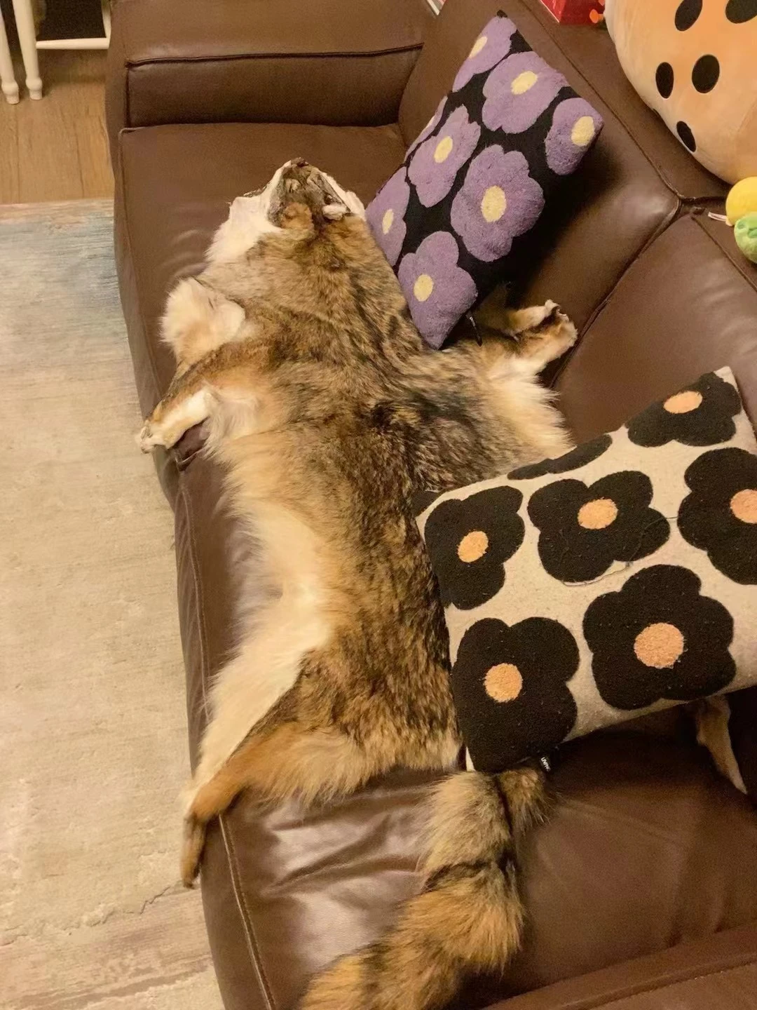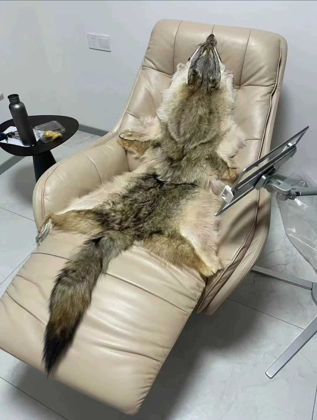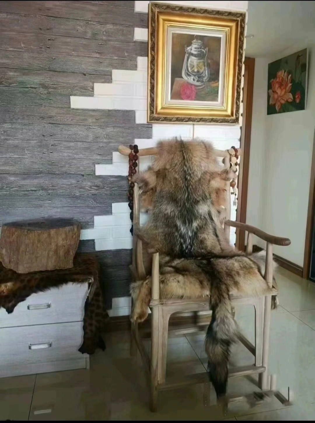 本物のコヨーテ毛皮使用!厚手で暖かく、滑り止め付きのクッション一体型チェアカバー。ソファやスツールに最適な座布団!快適な座り心地を実現し、インテリアを華やかに演出します。