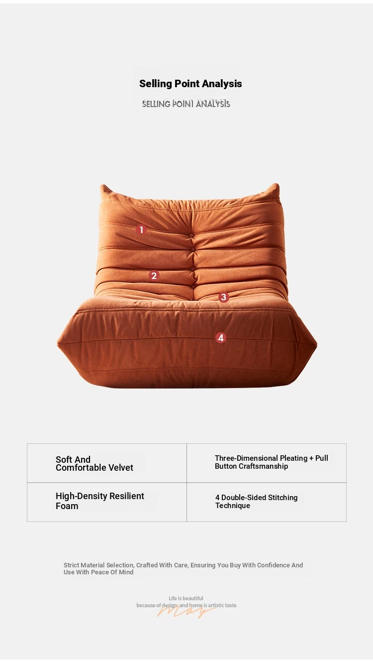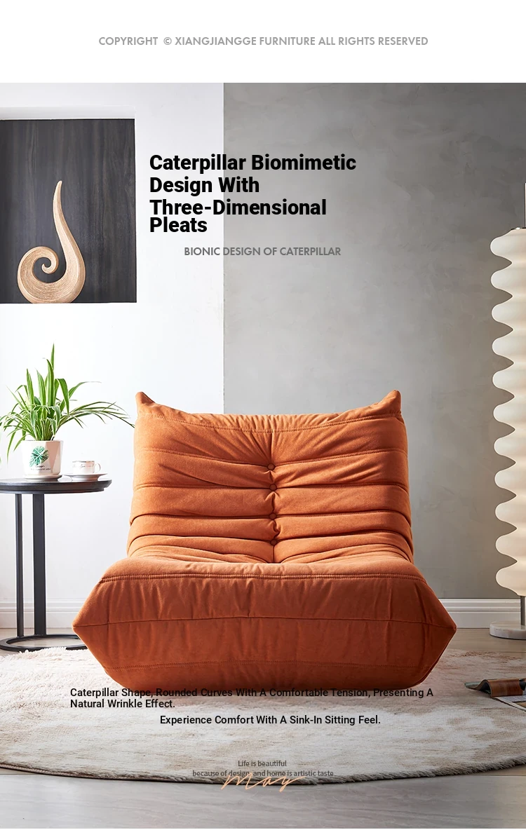 Cozy Caterpillar Lazy Sofa - Versatile Reclining Chair for Balcony and Living Room, Perfect for Napping! Ideal for Bedroom and Nordic-Style Single Tatami Seating.