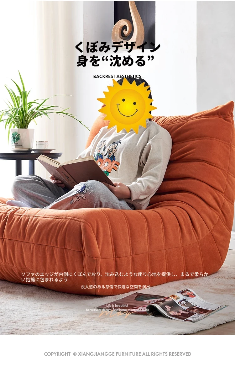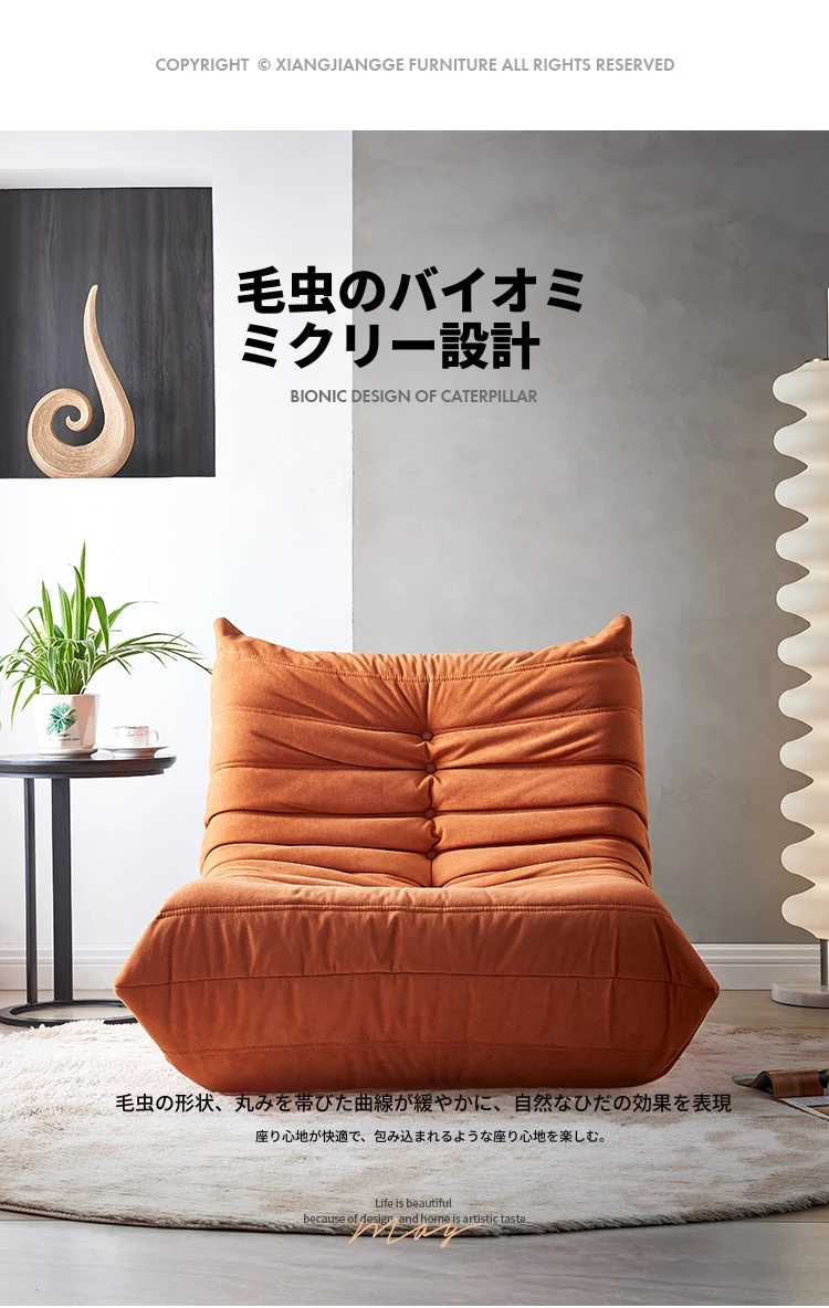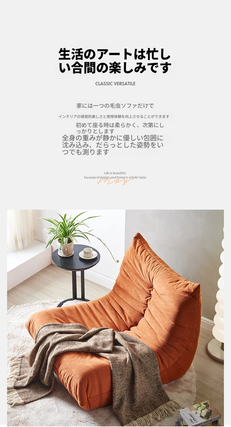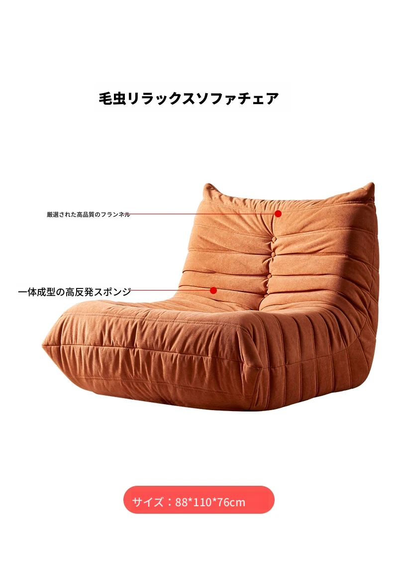 ふわふわ毛虫ソファ!リラックスできるバルコニー用のカジュアルチェア。寝転びもできる、居間や寝室にもぴったりな北欧スタイルの一人用榻榻米ソファ。心地よいひとときをお楽しみください!