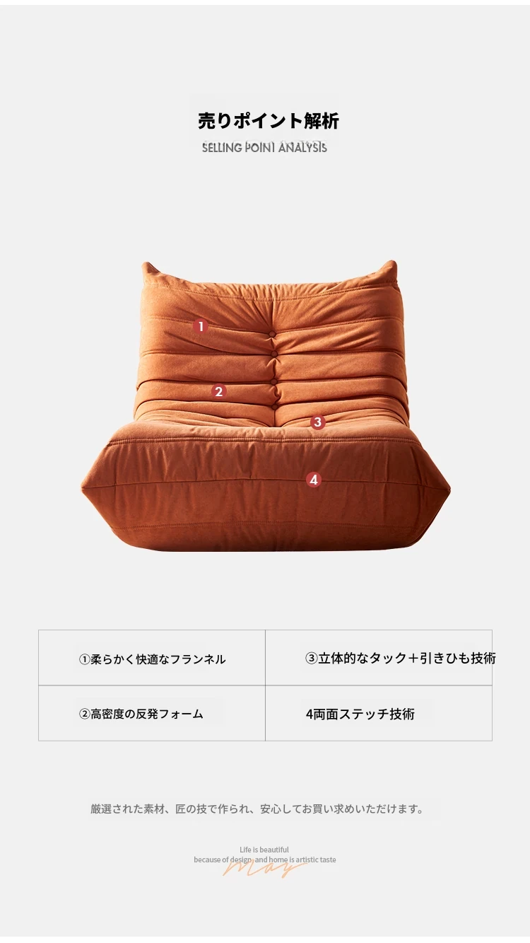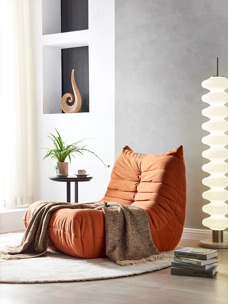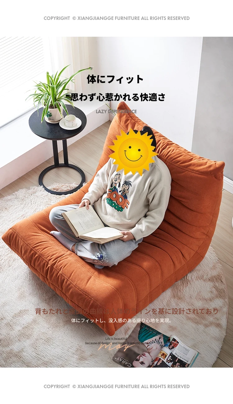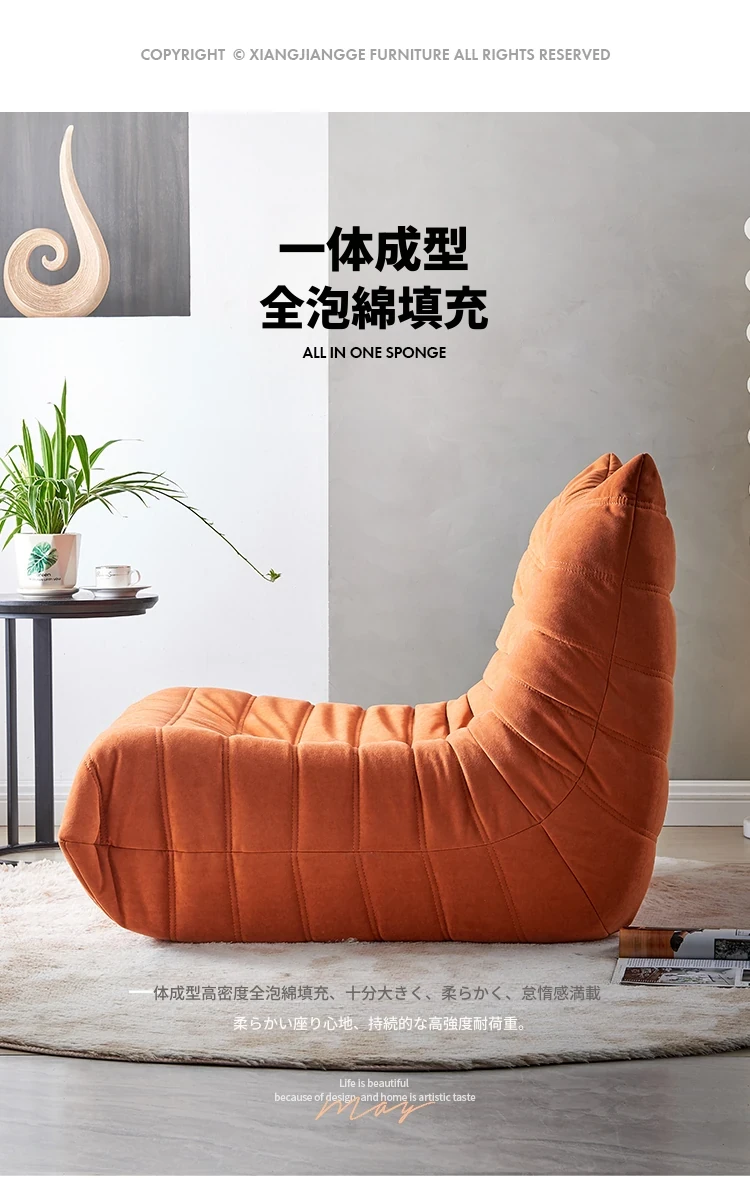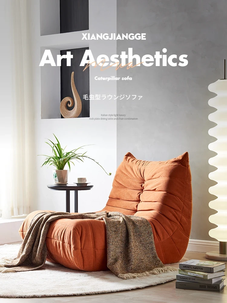 ふわふわ毛虫ソファ!リラックスできるバルコニー用のカジュアルチェア。寝転びもできる、居間や寝室にもぴったりな北欧スタイルの一人用榻榻米ソファ。心地よいひとときをお楽しみください!