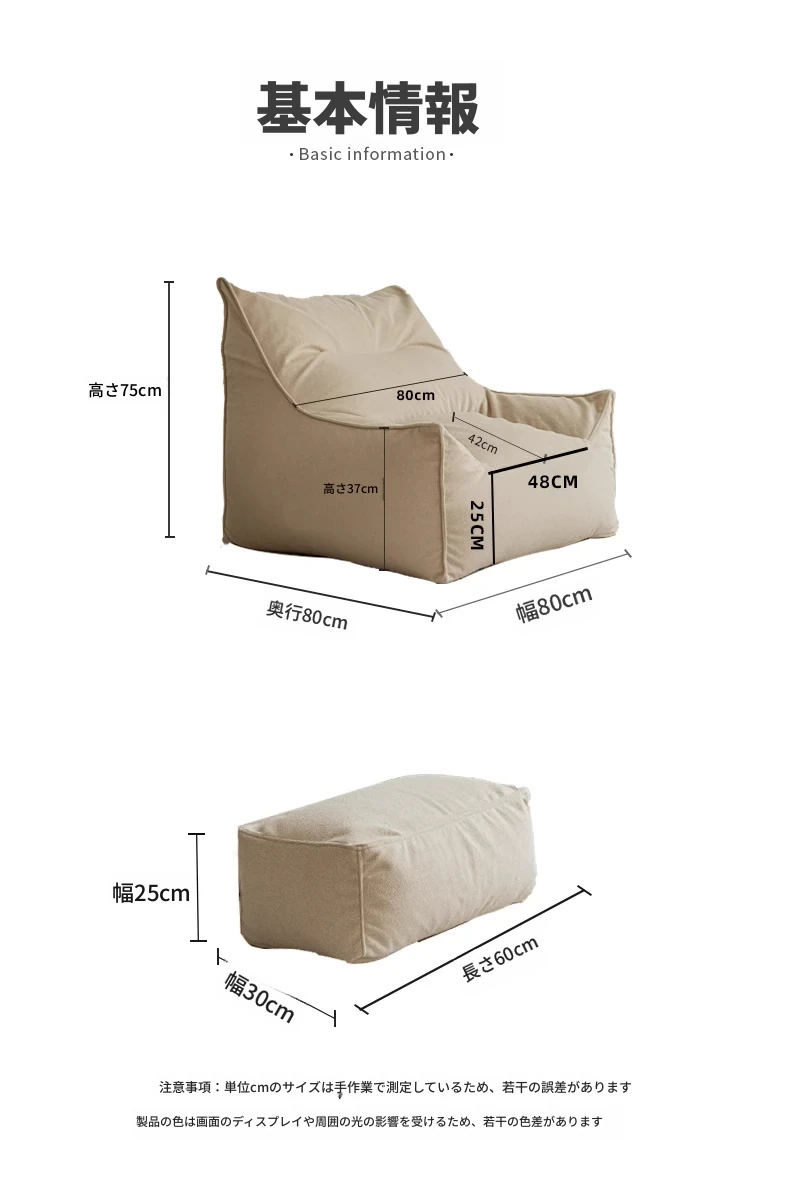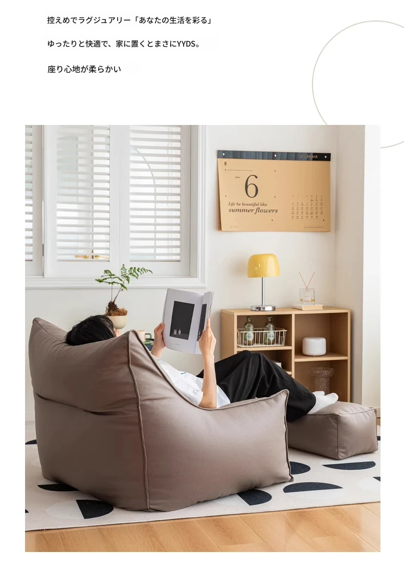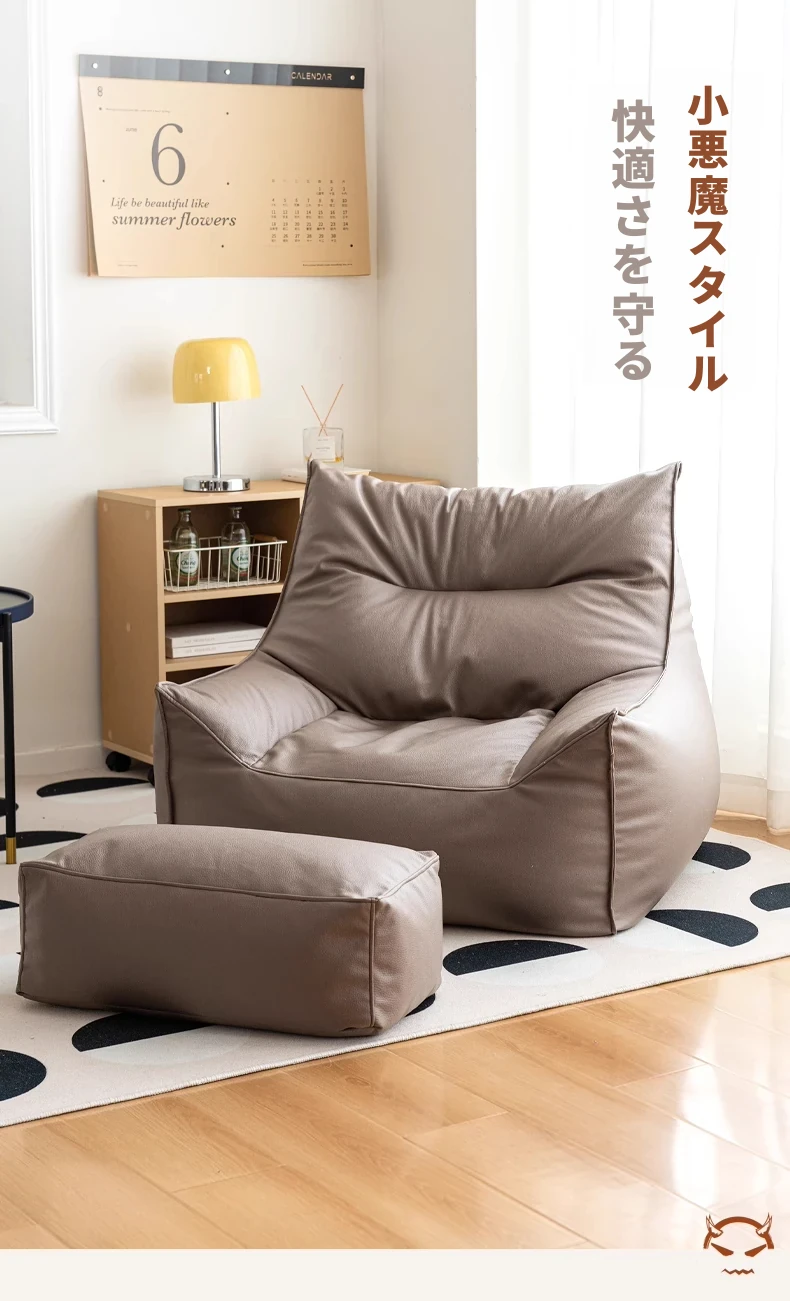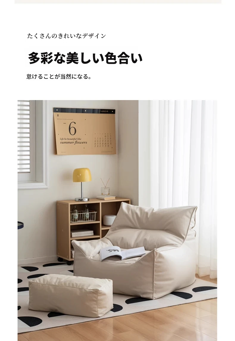 クリーミーな風合いのリラックスソファー!寝転がりもできる小悪魔ソファーは、寝室やバルコニーにぴったりの一人用チェア。心地よさとおしゃれを兼ね備えた日本風デザインで、あなたの空間を特別に演出します。