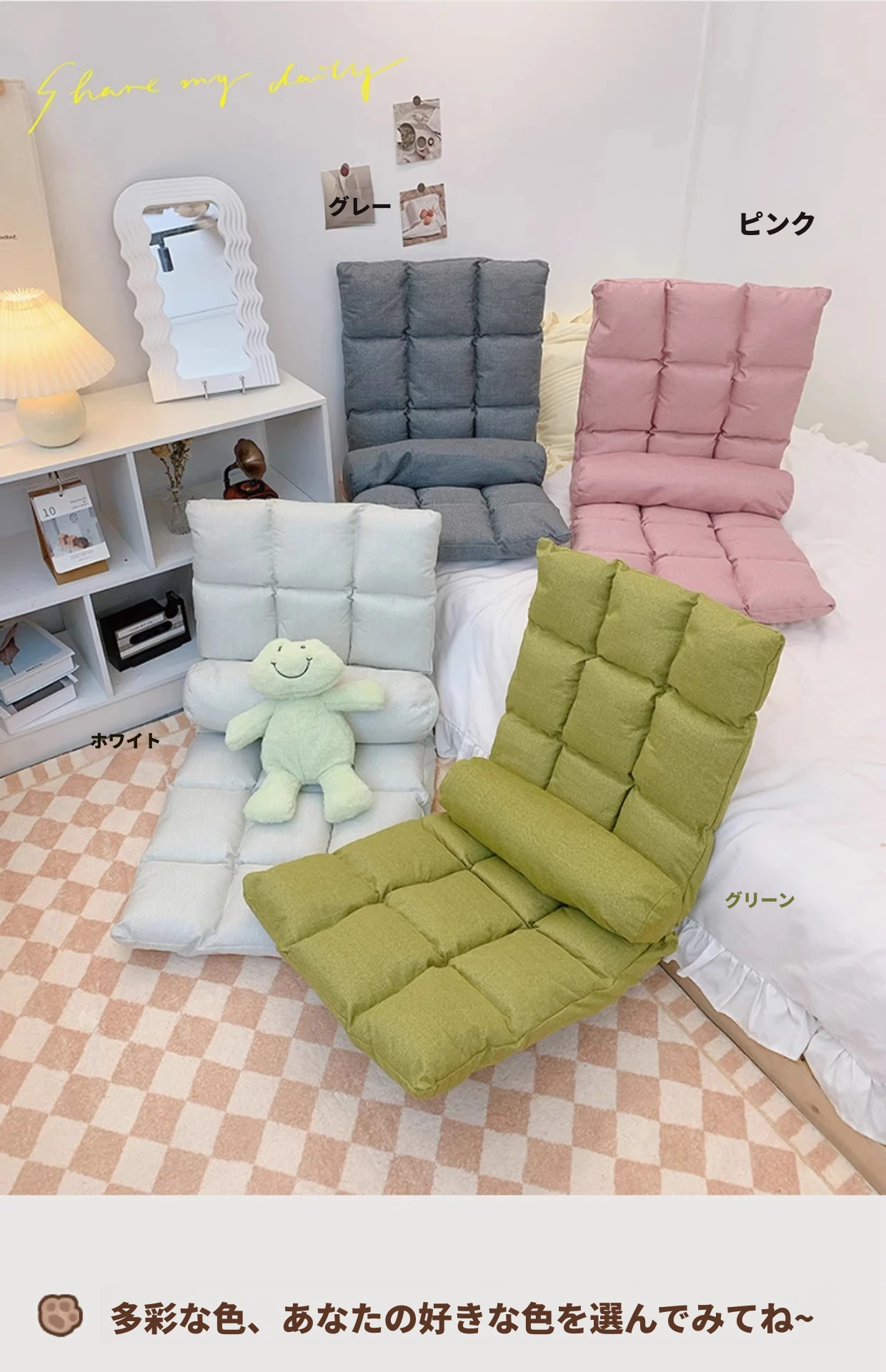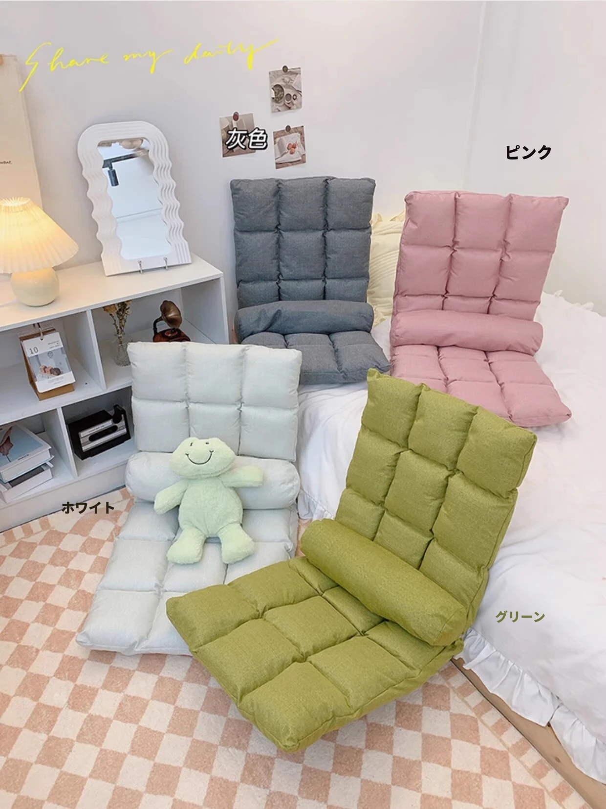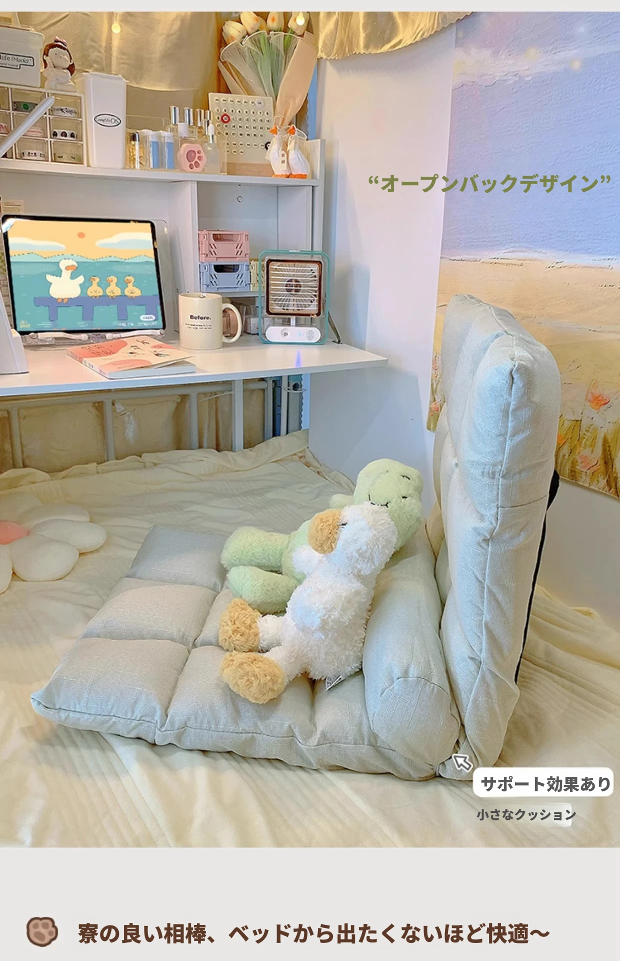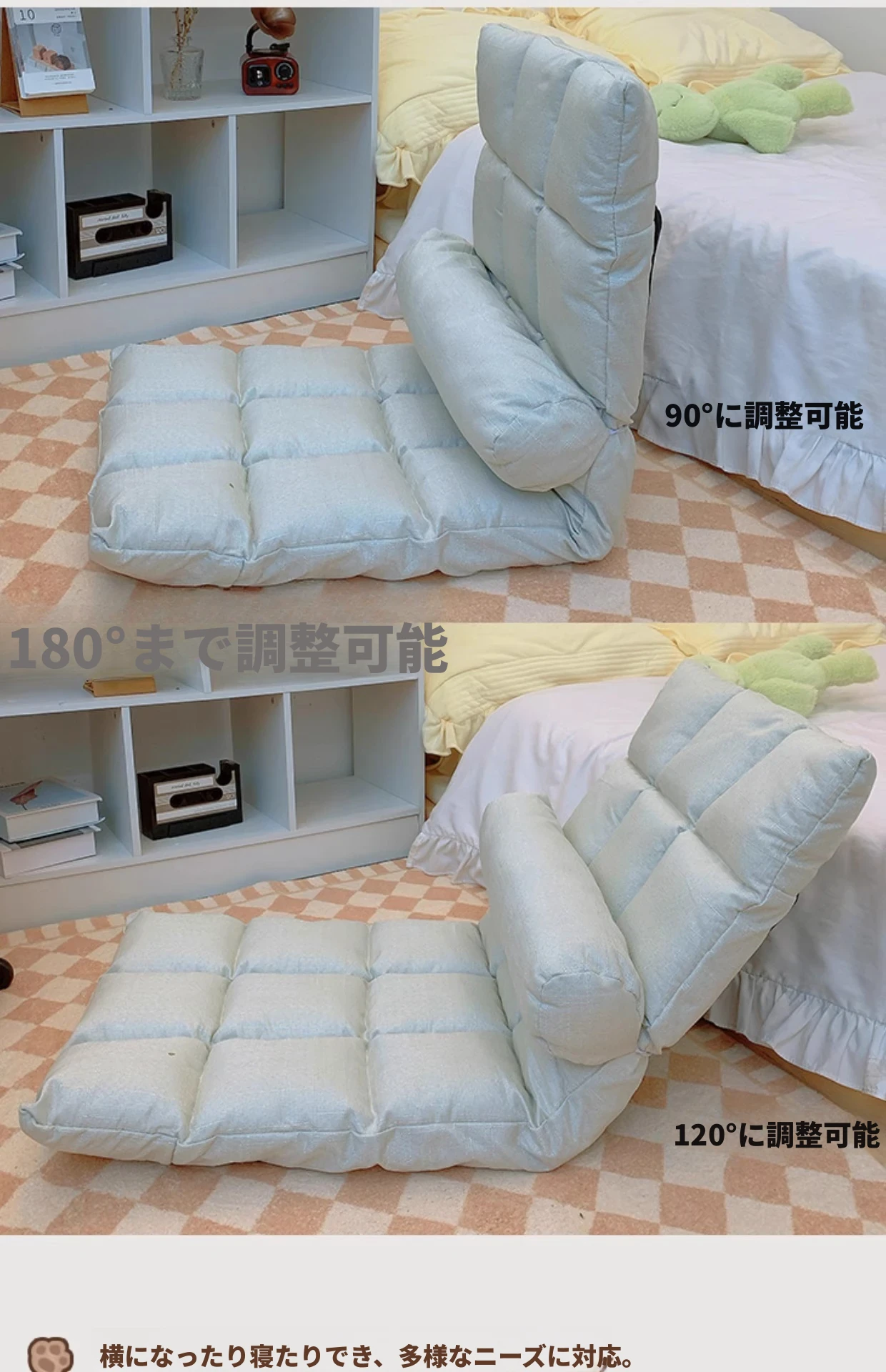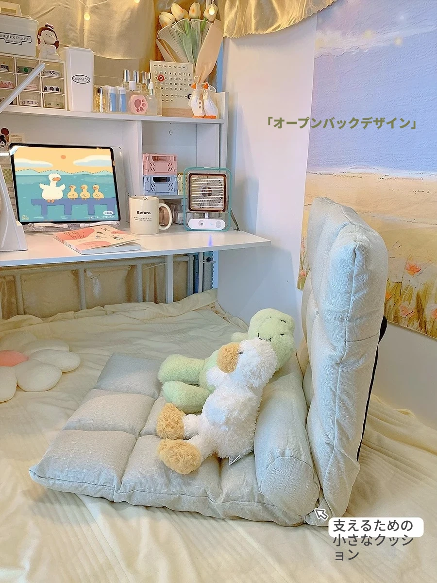学生必見!宿舎用リラックスソファクッション|背もたれ付きで快適|窓辺や床でも使える便利アイテム|折りたたみ式で収納も簡単|勉強やリラックスタイムに最適な座椅子!