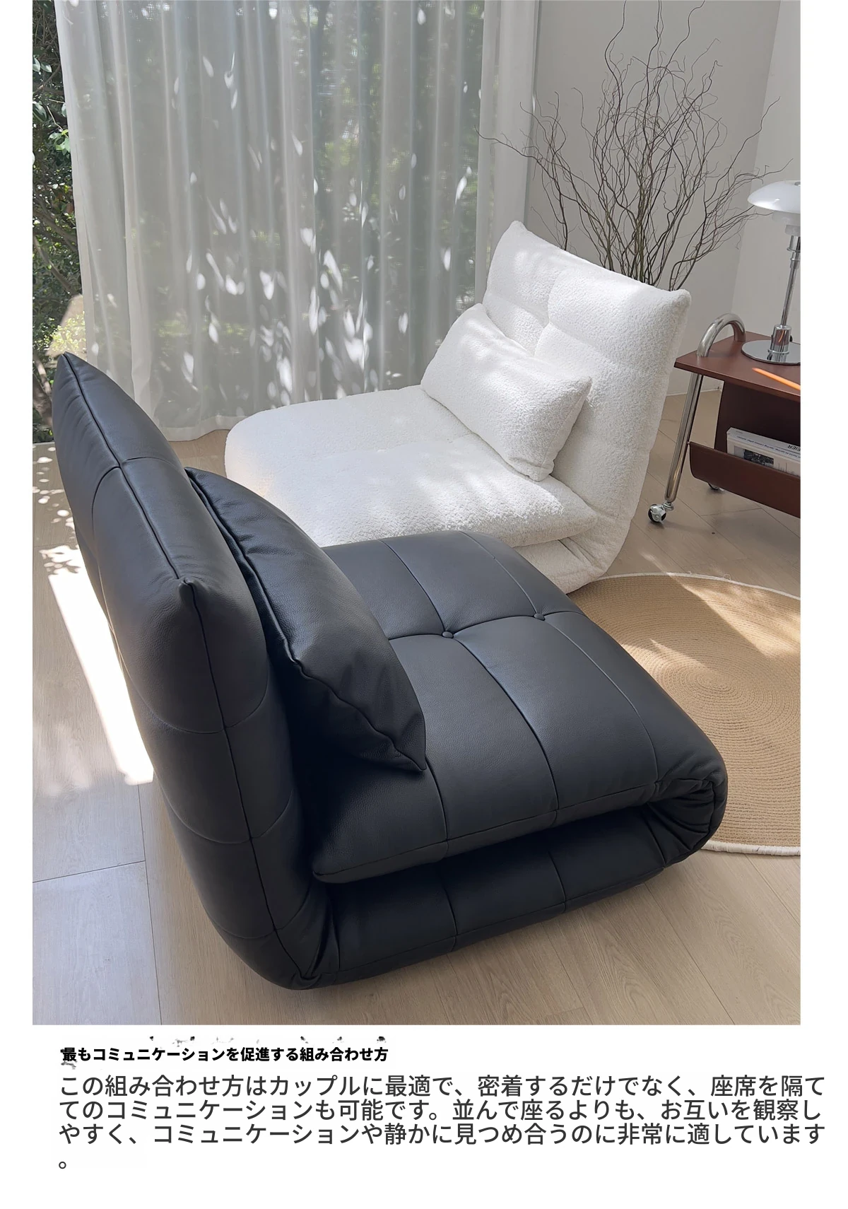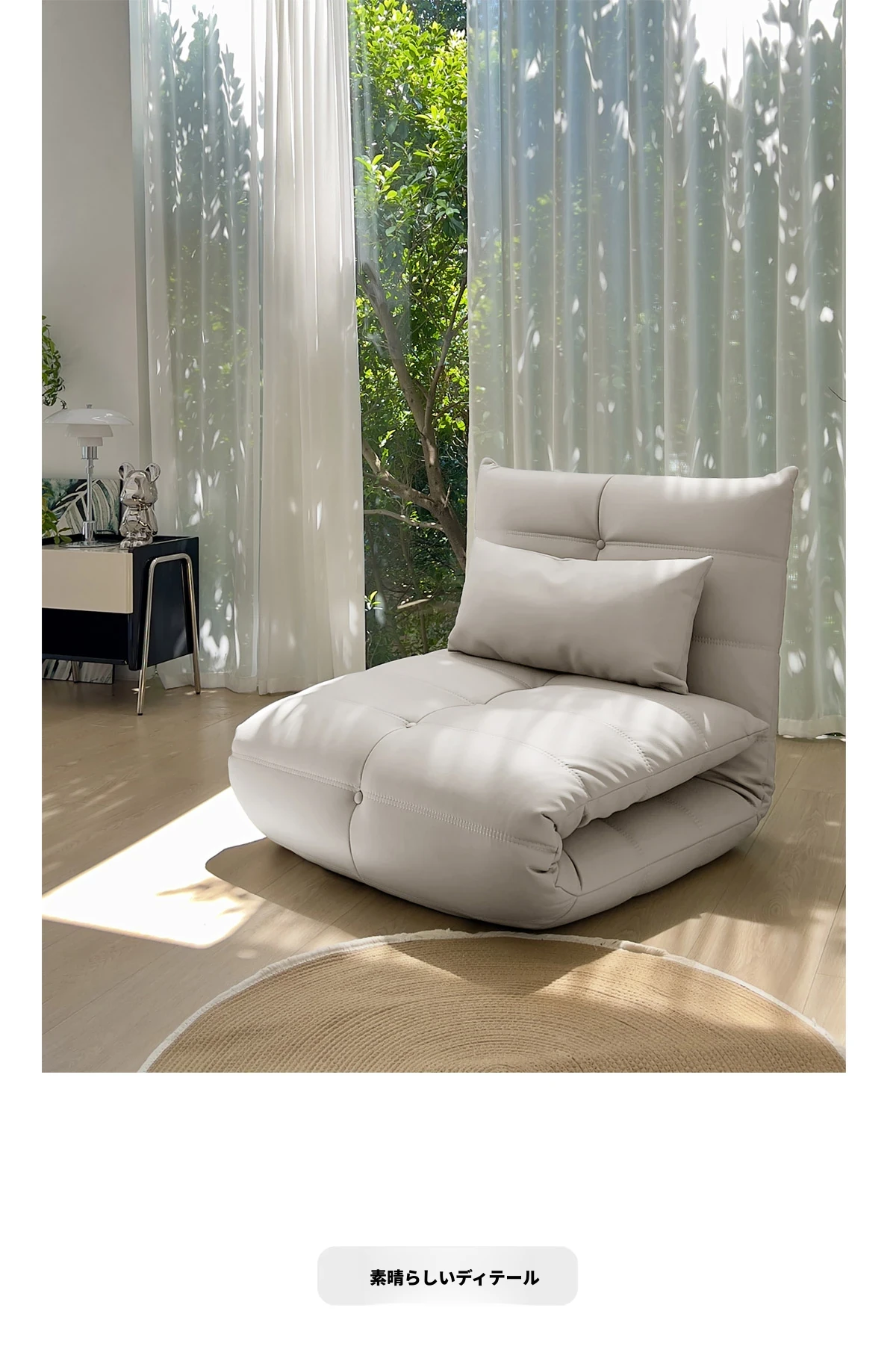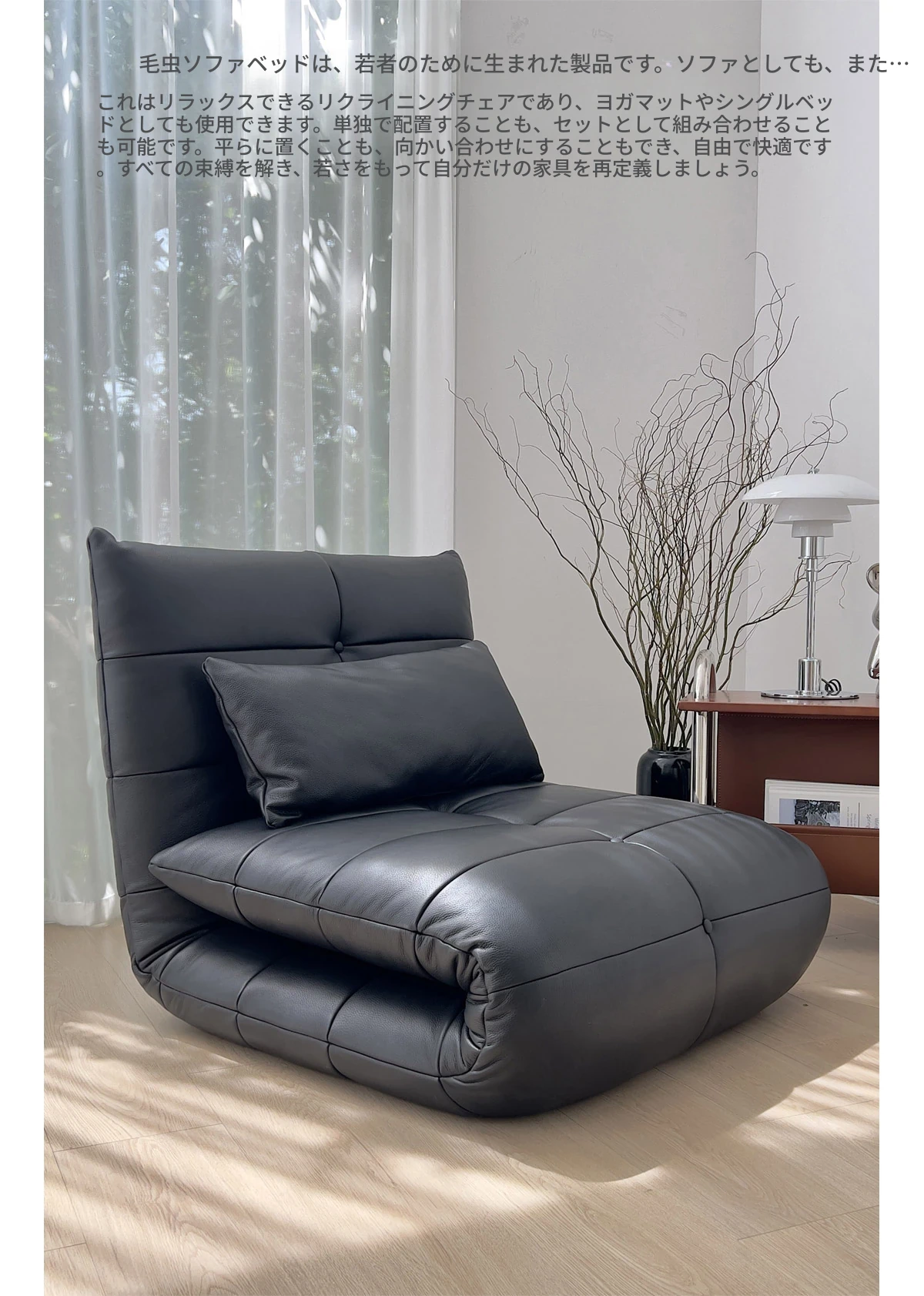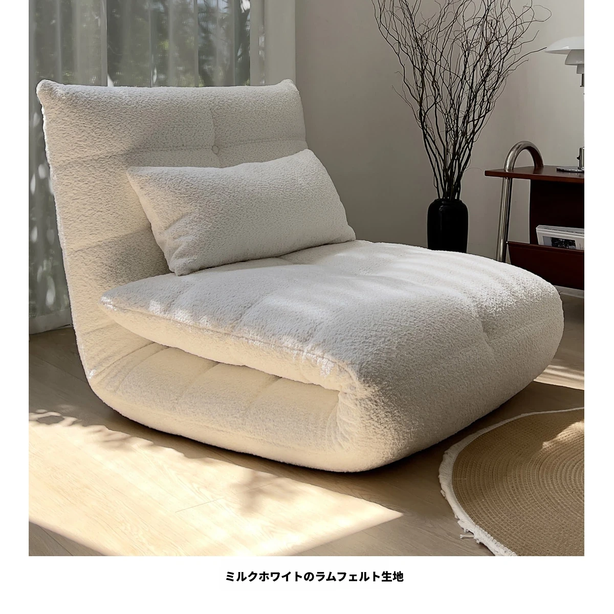 「リラックスできるモフモフのカタツムリソファベッド - 折りたたみ式で座り心地抜群、寝転びもできる!モジュール式でリビングや書斎、畳の部屋にも最適な快適空間を提供します。」