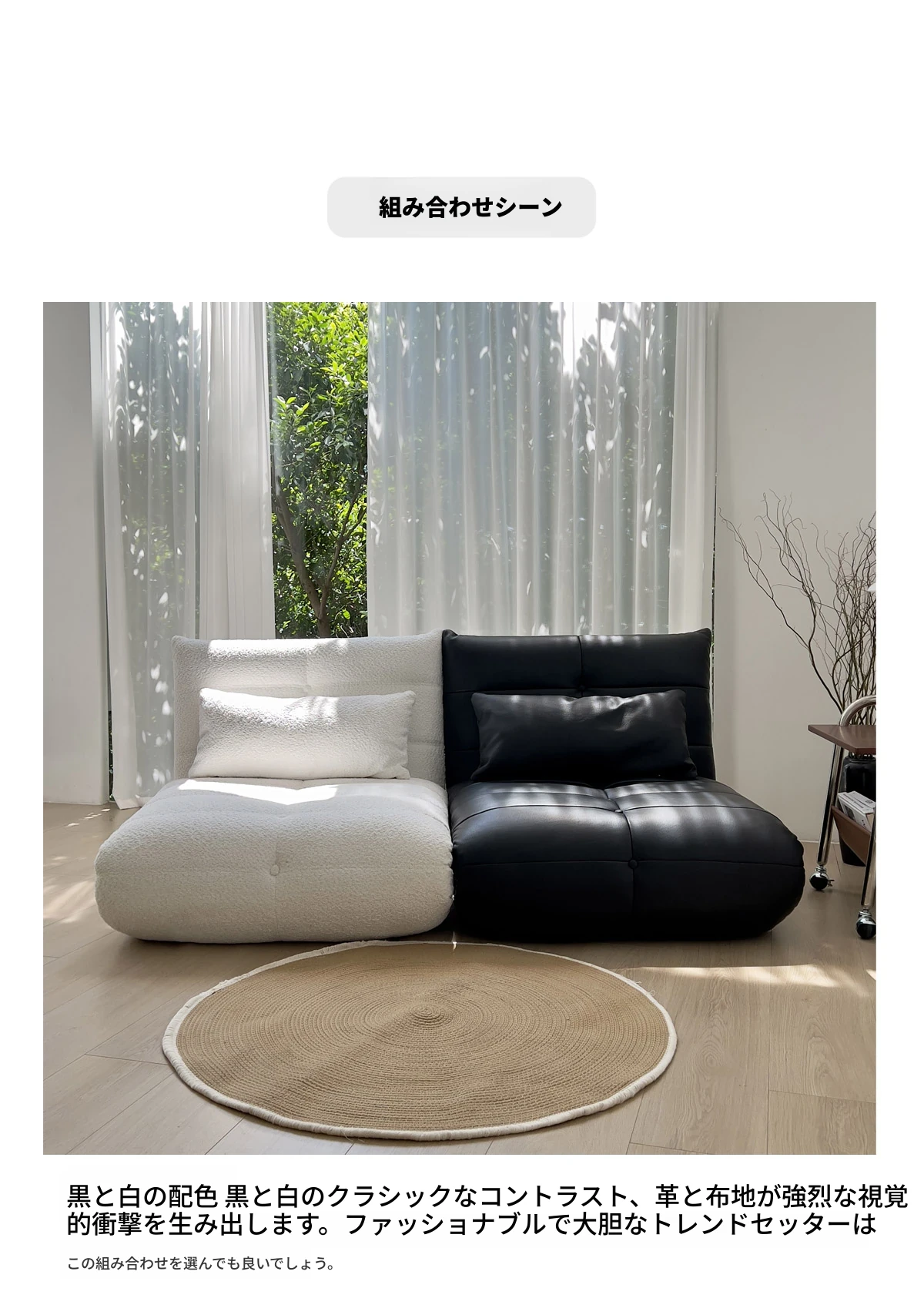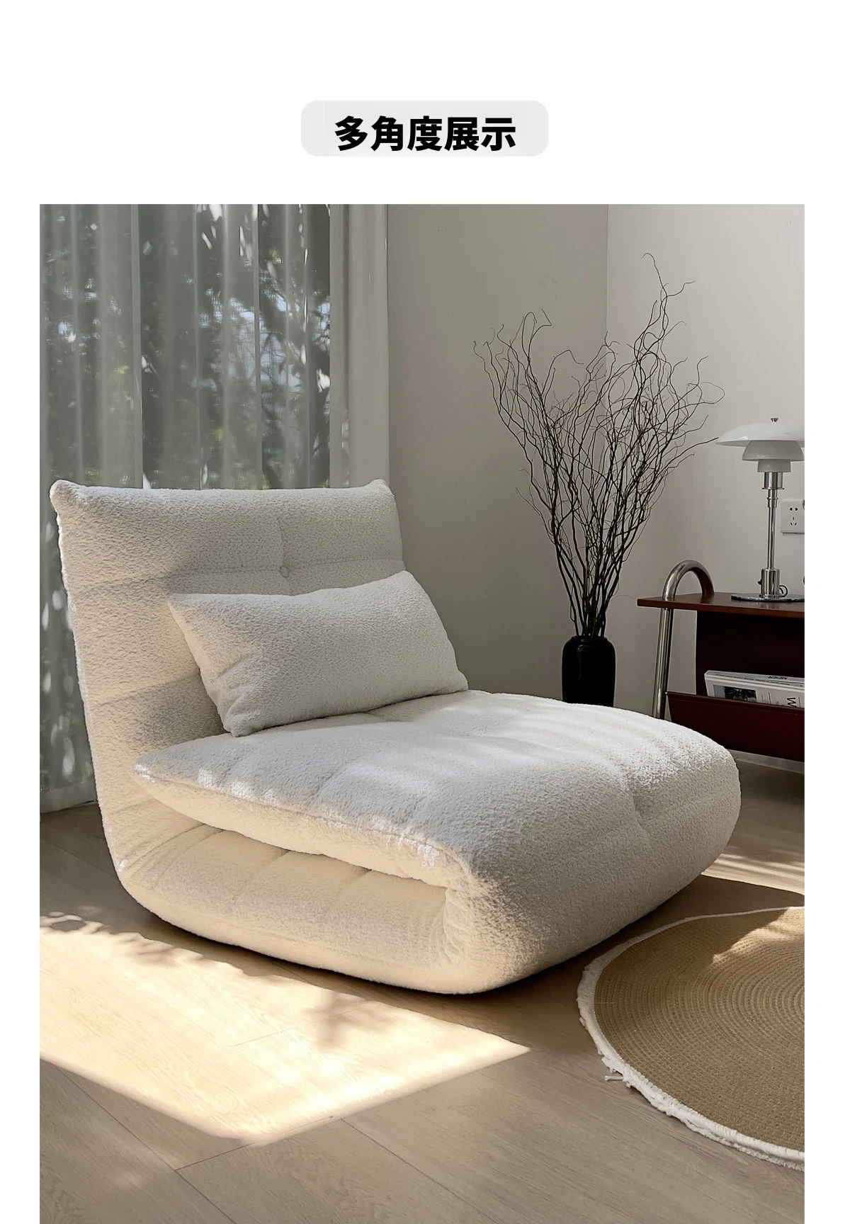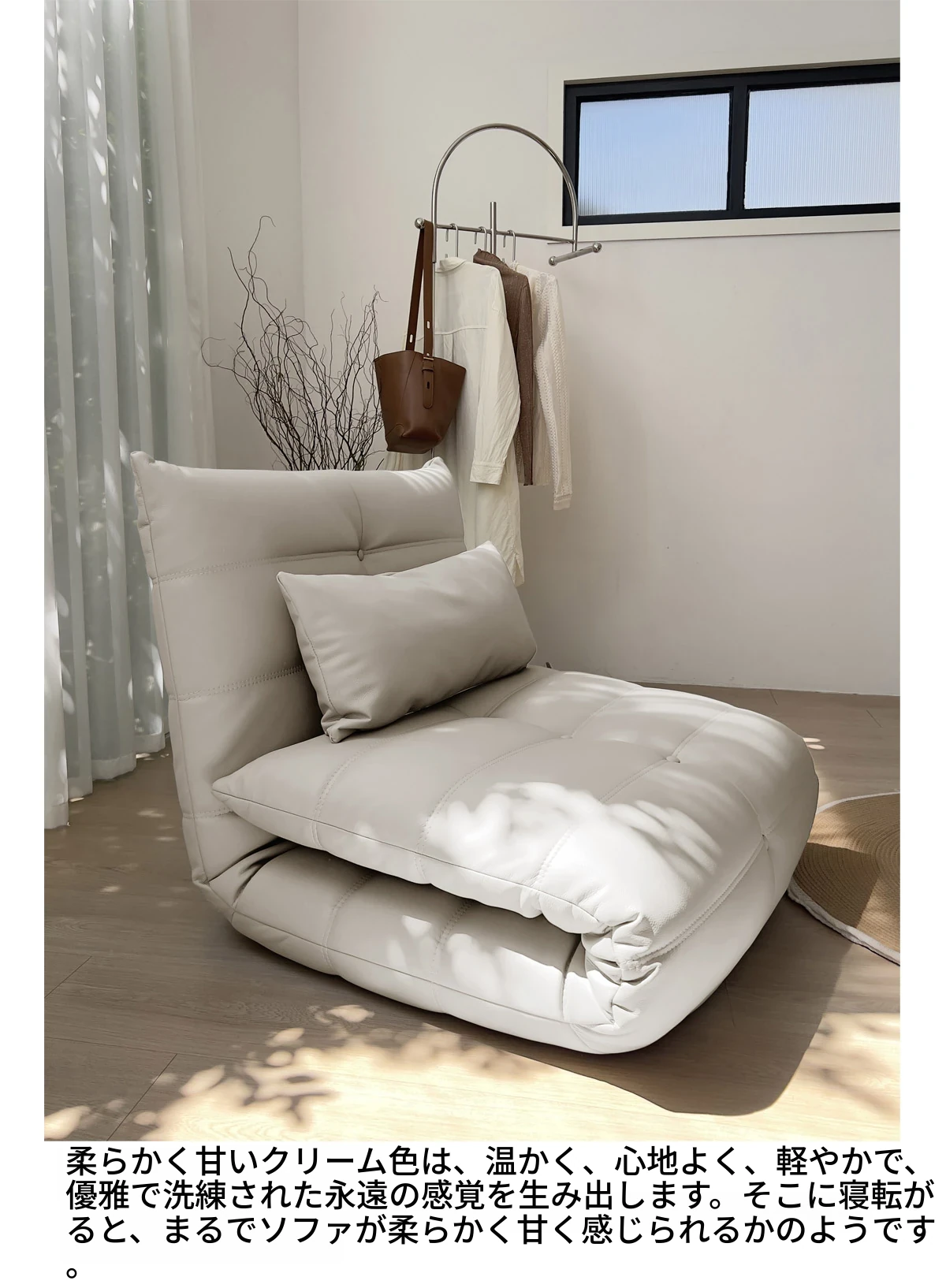「リラックスできるモフモフのカタツムリソファベッド - 折りたたみ式で座り心地抜群、寝転びもできる!モジュール式でリビングや書斎、畳の部屋にも最適な快適空間を提供します。」