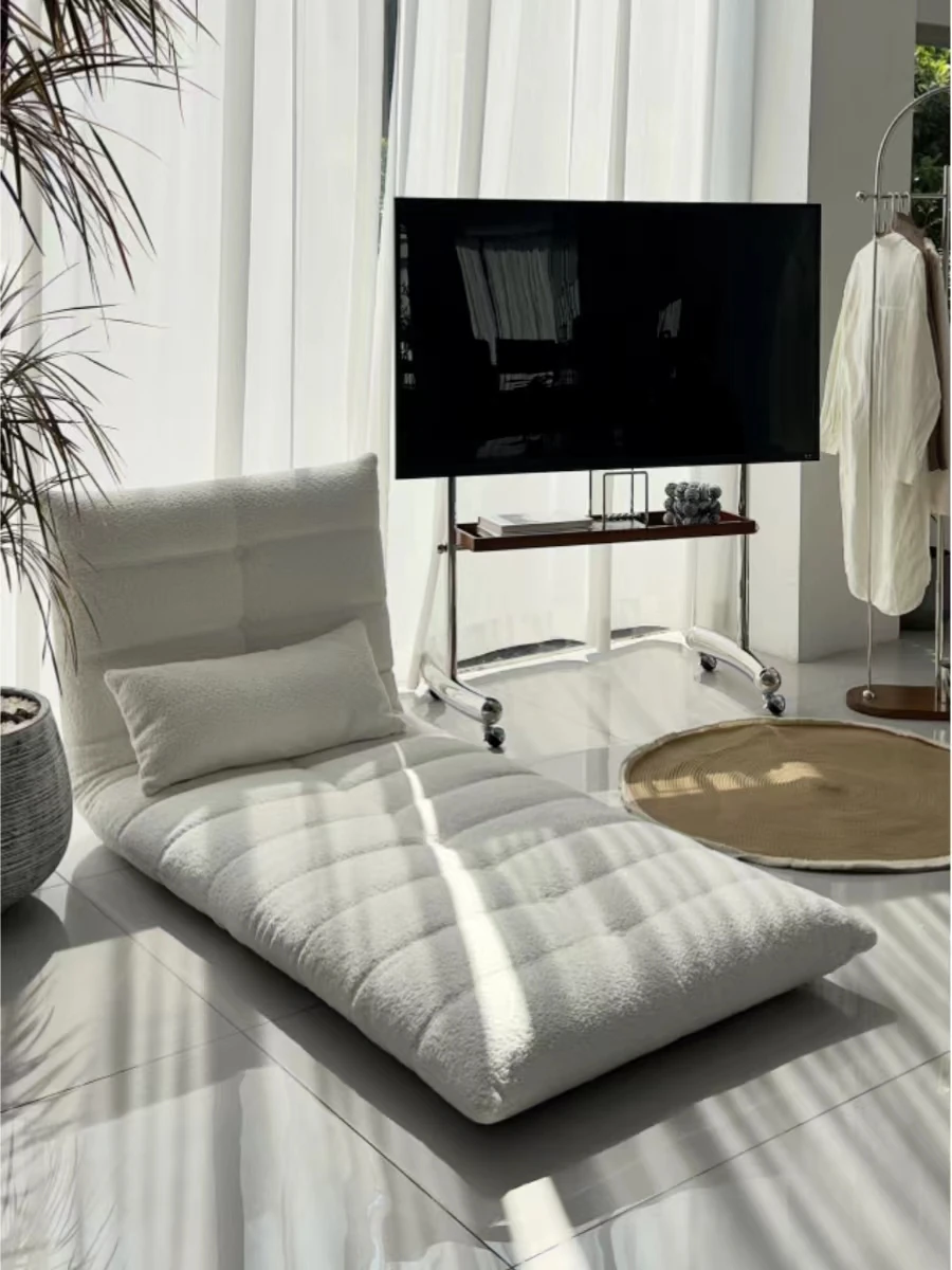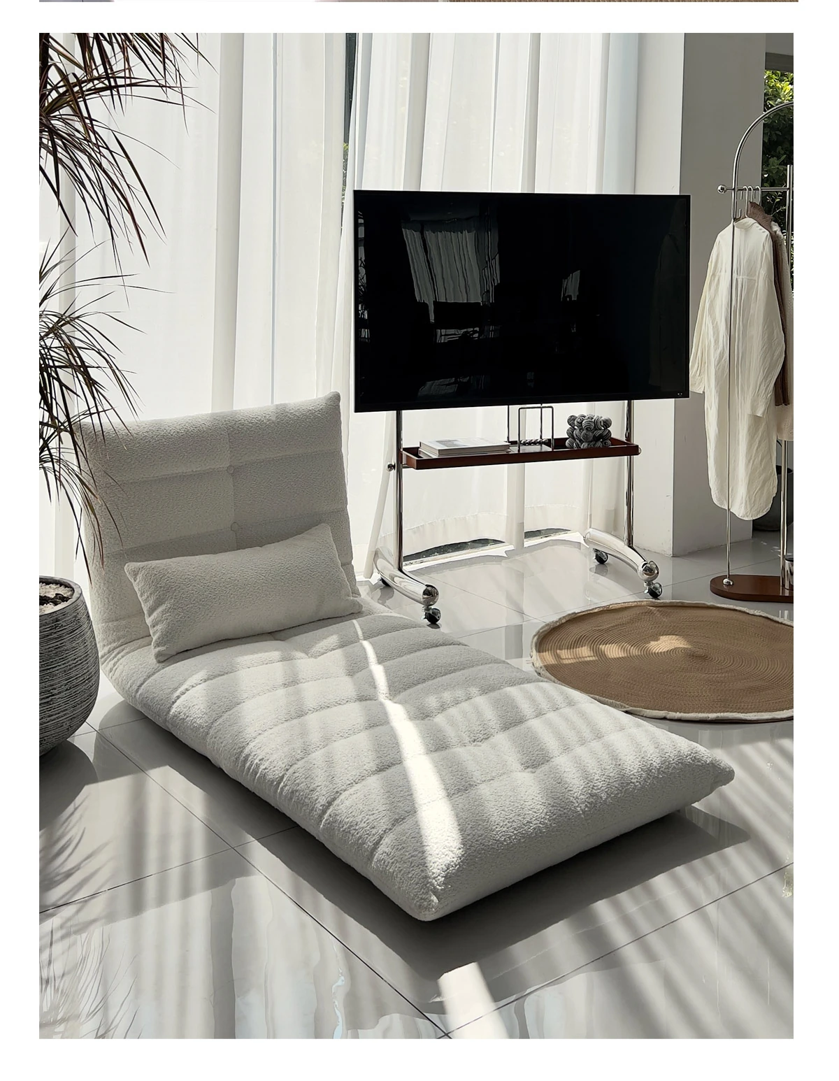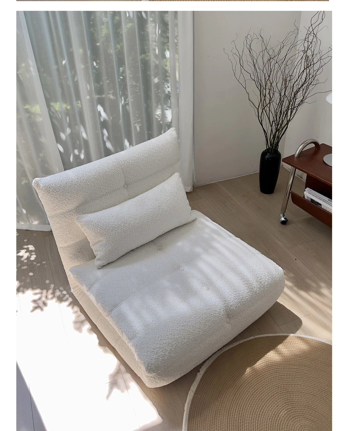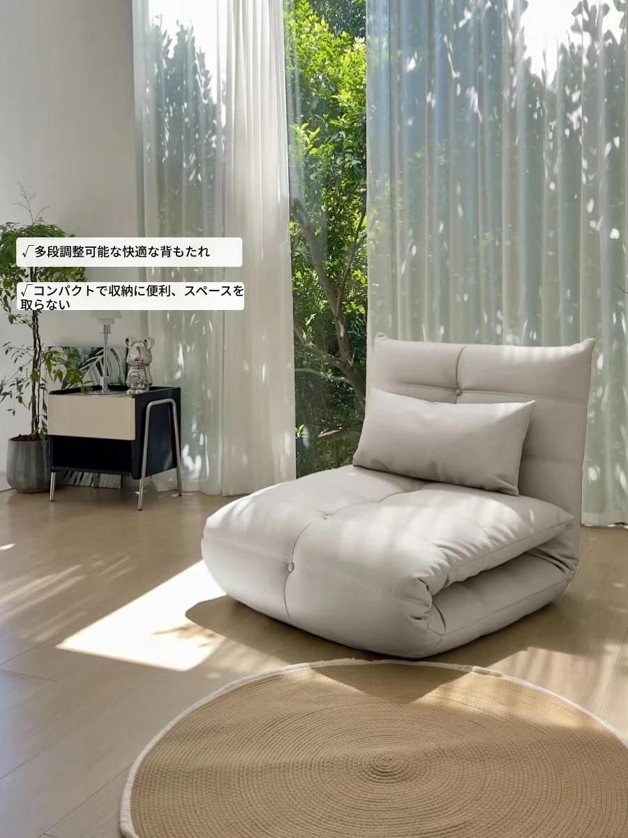 「リラックスできるモフモフのカタツムリソファベッド - 折りたたみ式で座り心地抜群、寝転びもできる!モジュール式でリビングや書斎、畳の部屋にも最適な快適空間を提供します。」