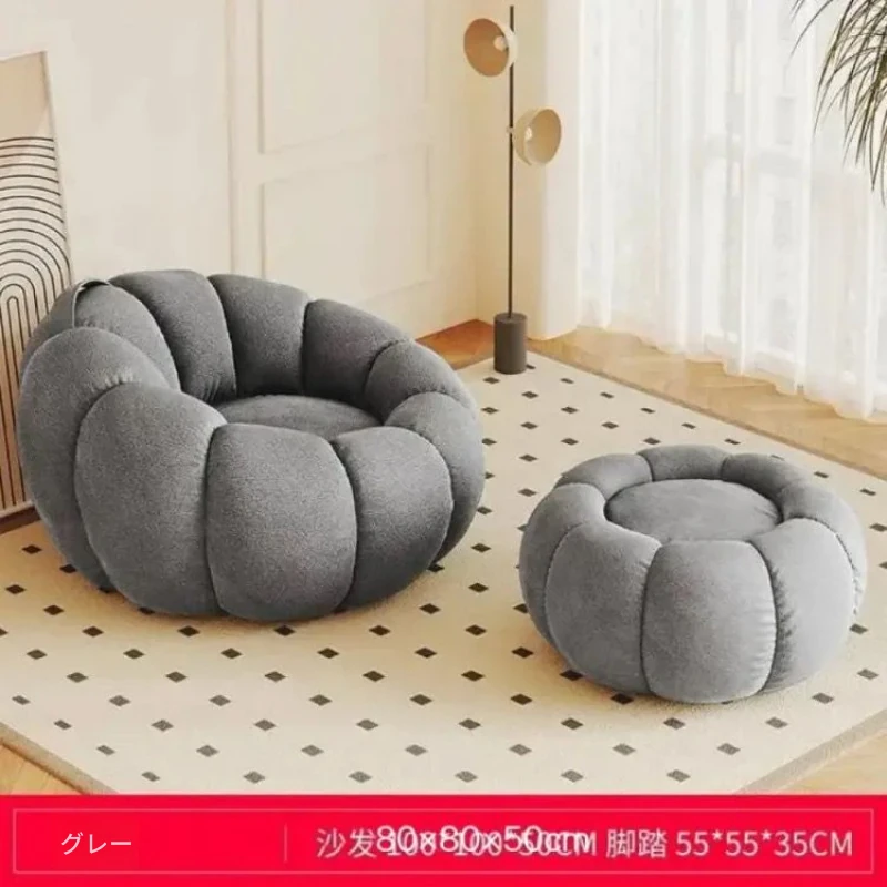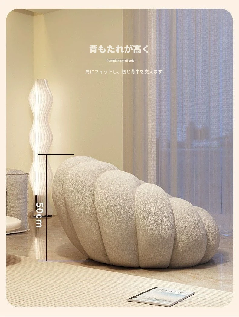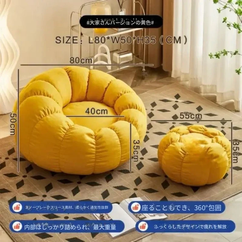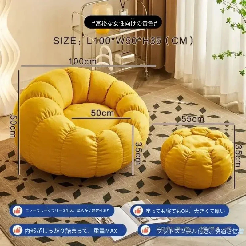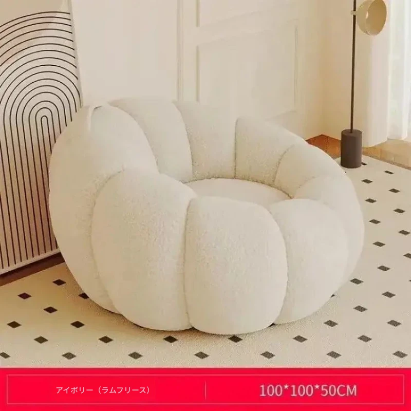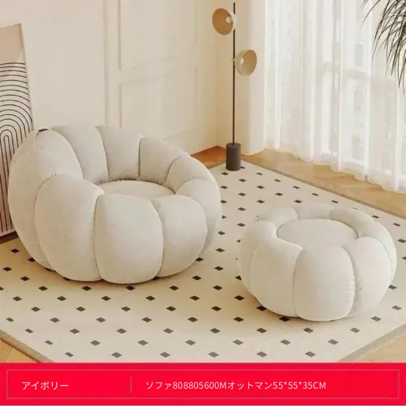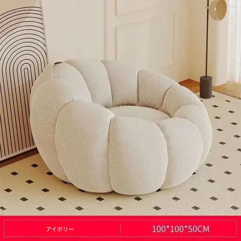 リラックスできる南瓜型ソファー - ひとり用クリームカラー、寝そべりも可能!狭い部屋やバルコニーに最適な快適な休憩椅子。おしゃれで癒しの空間を演出します!