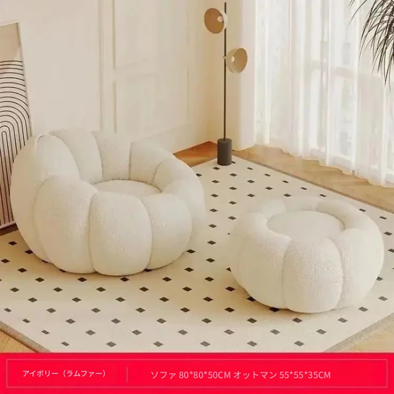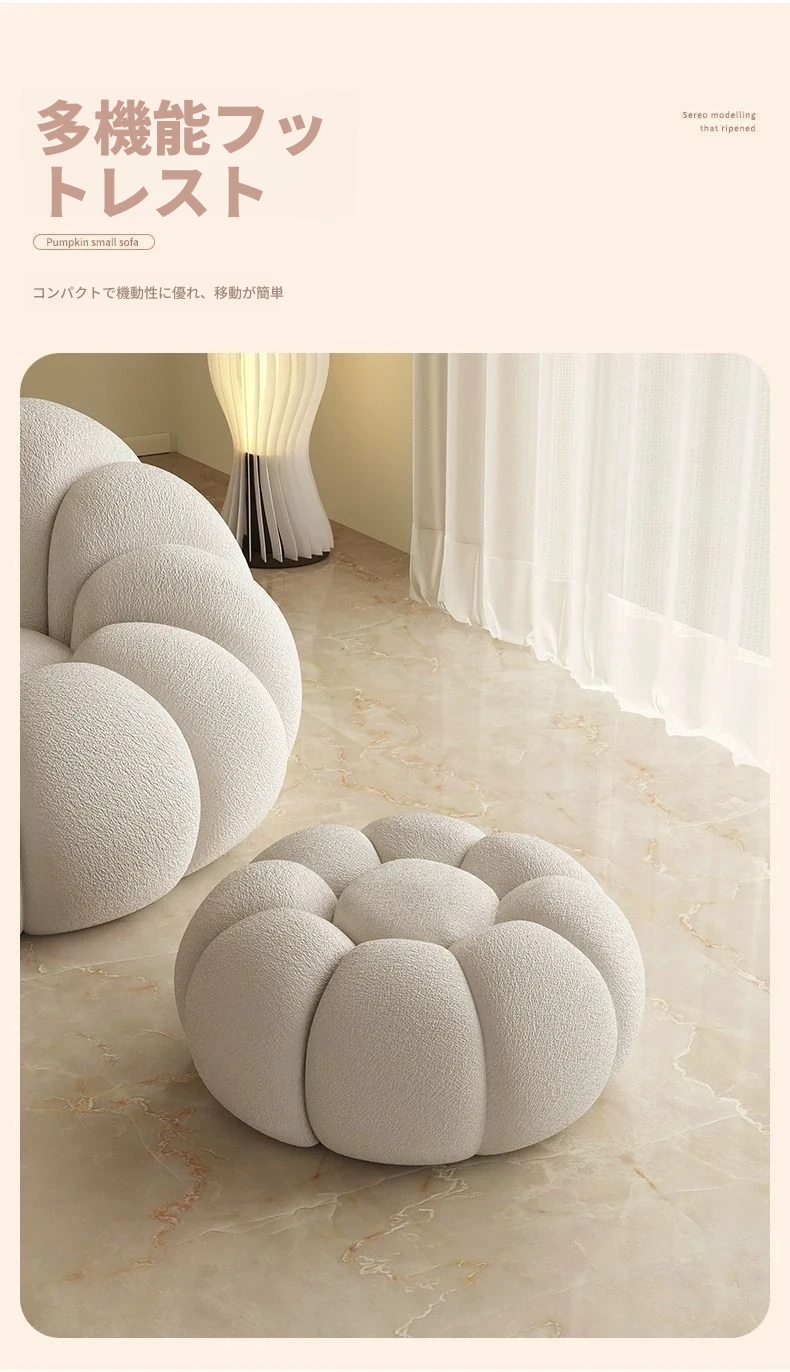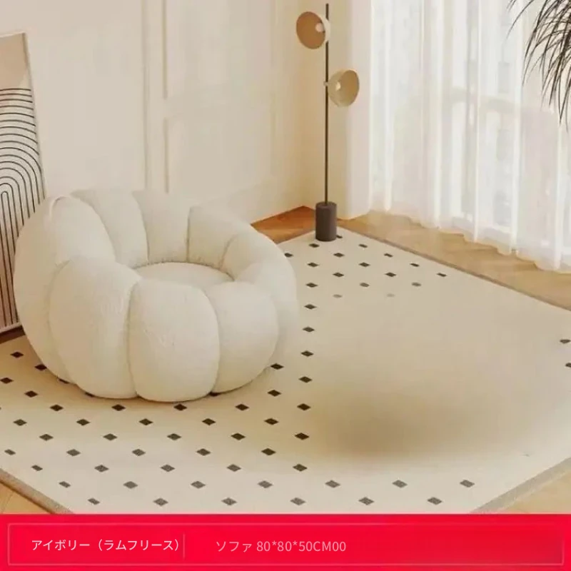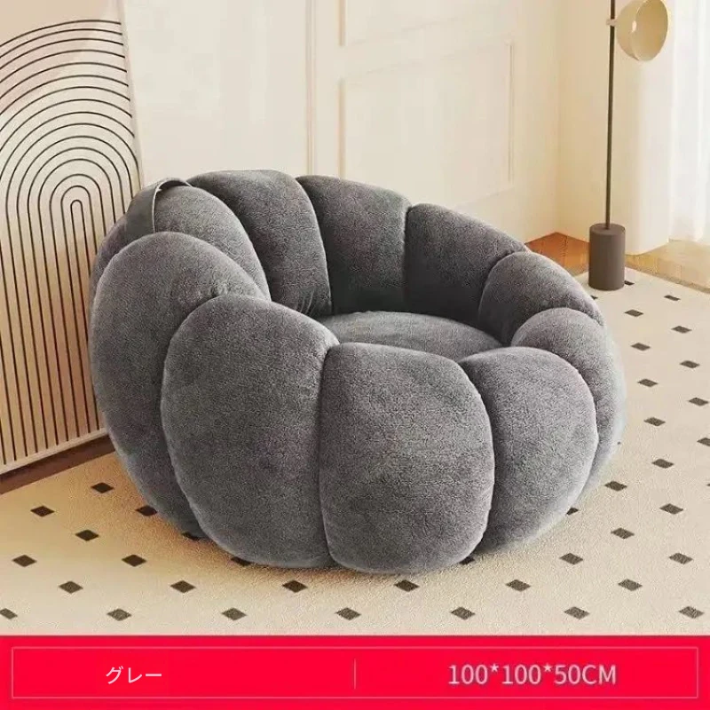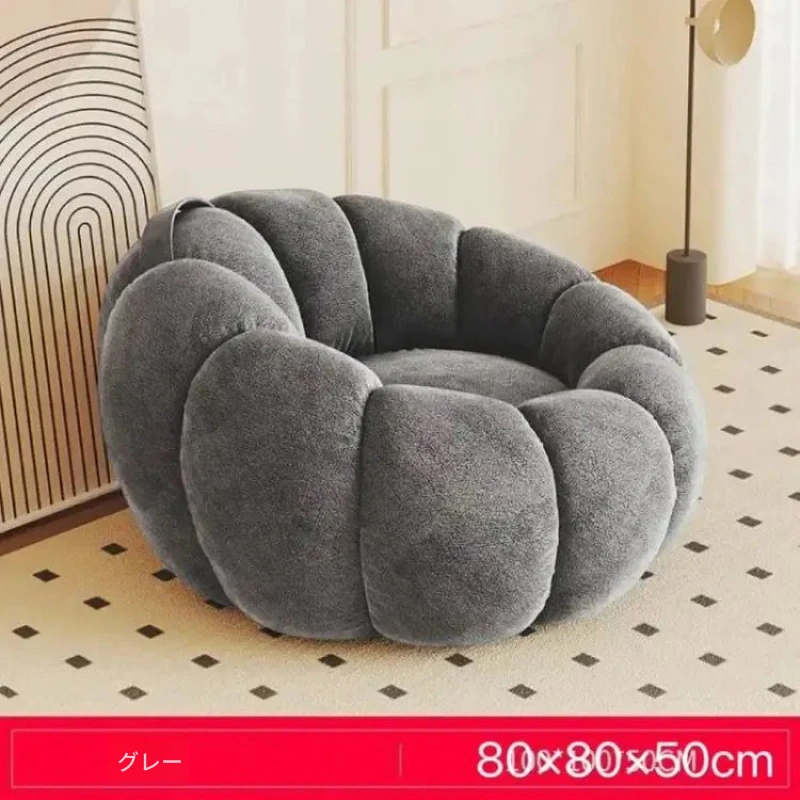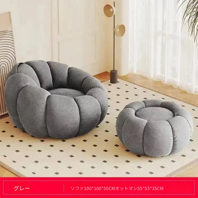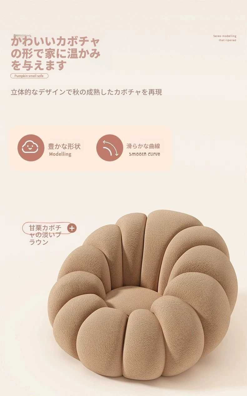 リラックスできる南瓜型ソファー - ひとり用クリームカラー、寝そべりも可能!狭い部屋やバルコニーに最適な快適な休憩椅子。おしゃれで癒しの空間を演出します!