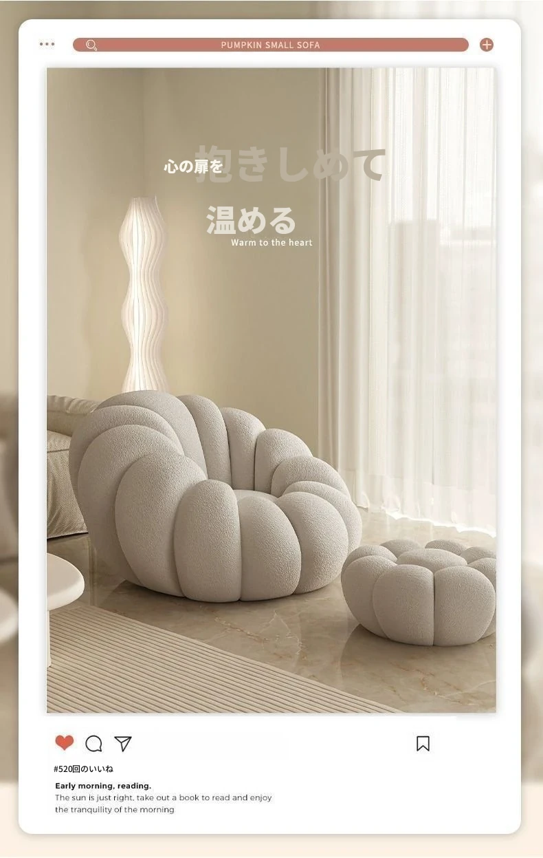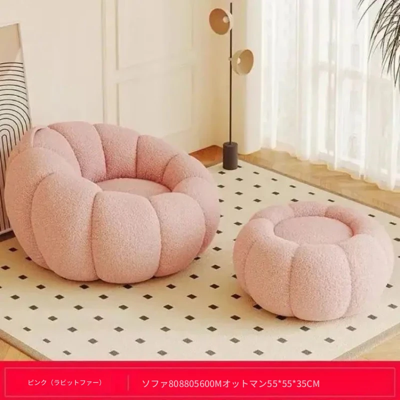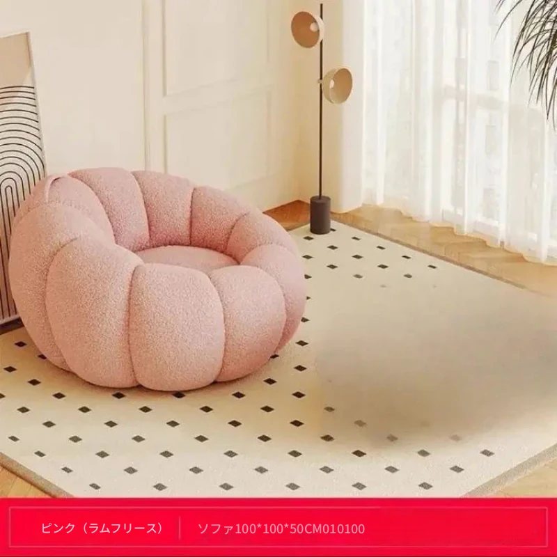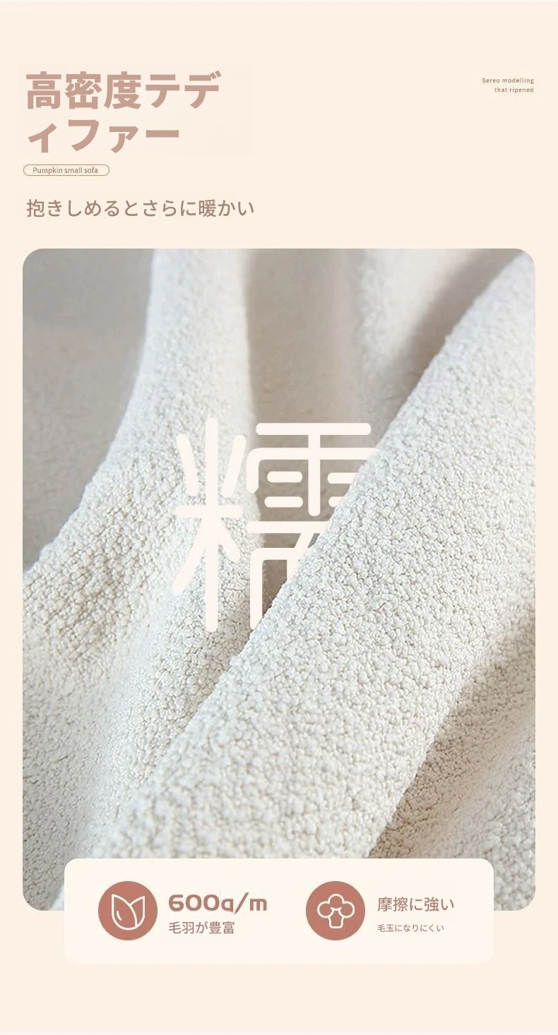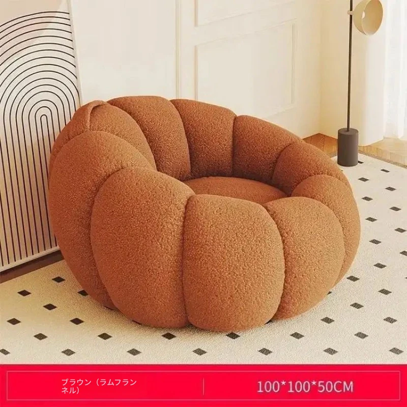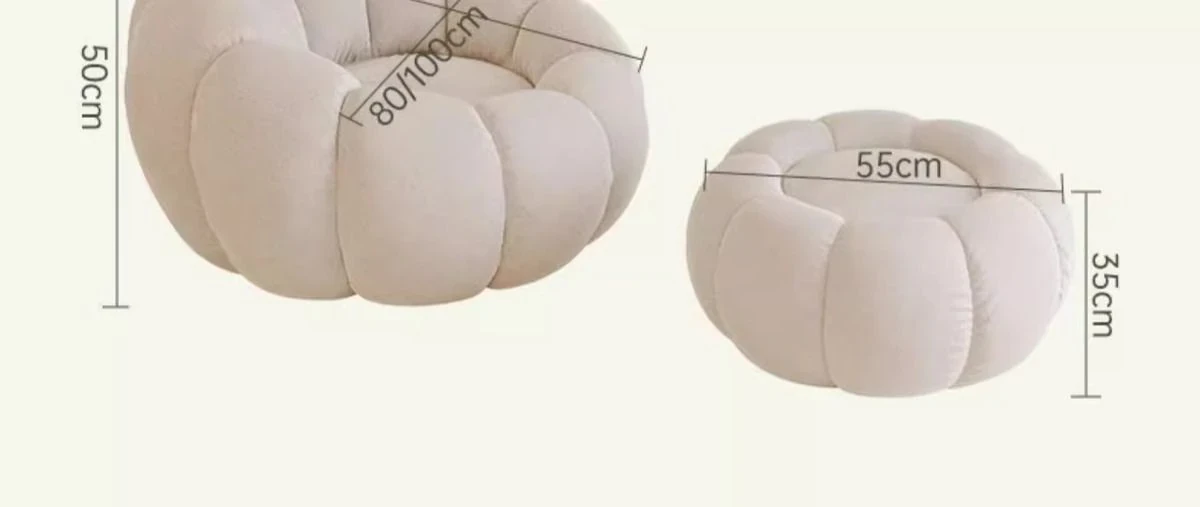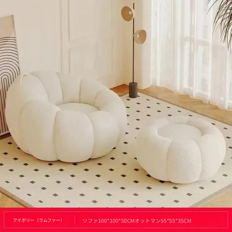 リラックスできる南瓜型ソファー - ひとり用クリームカラー、寝そべりも可能!狭い部屋やバルコニーに最適な快適な休憩椅子。おしゃれで癒しの空間を演出します!