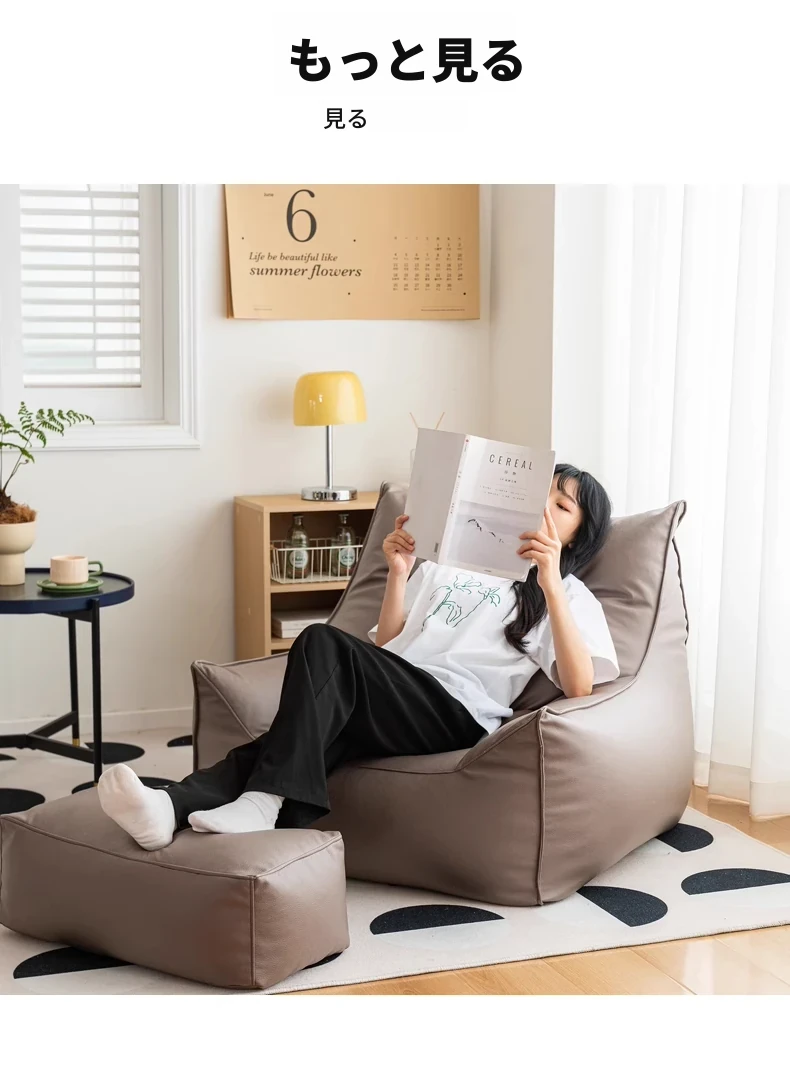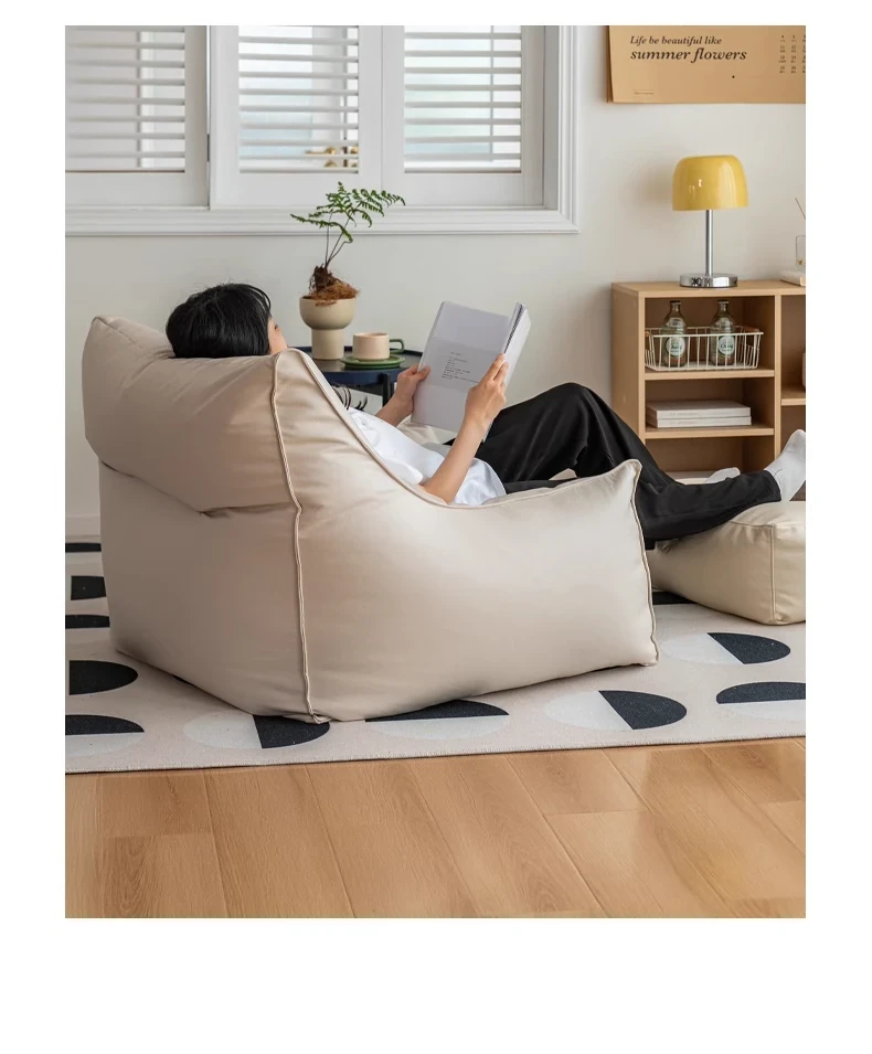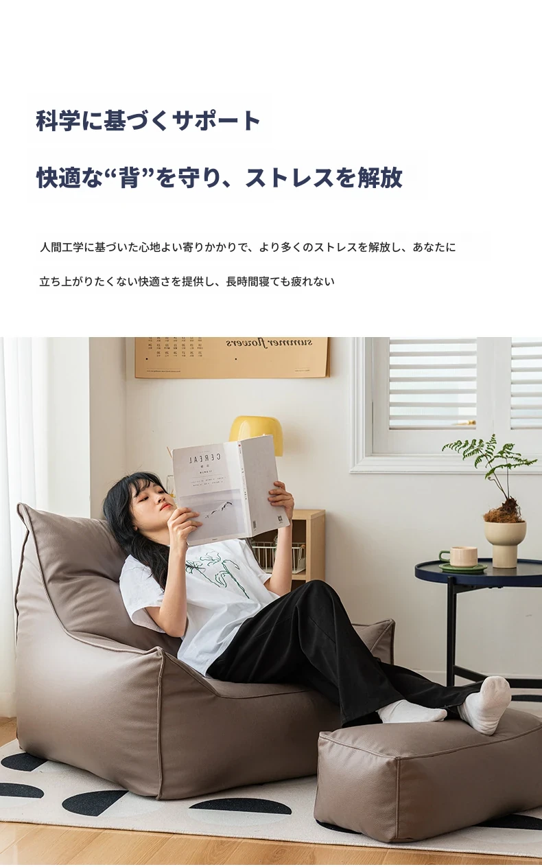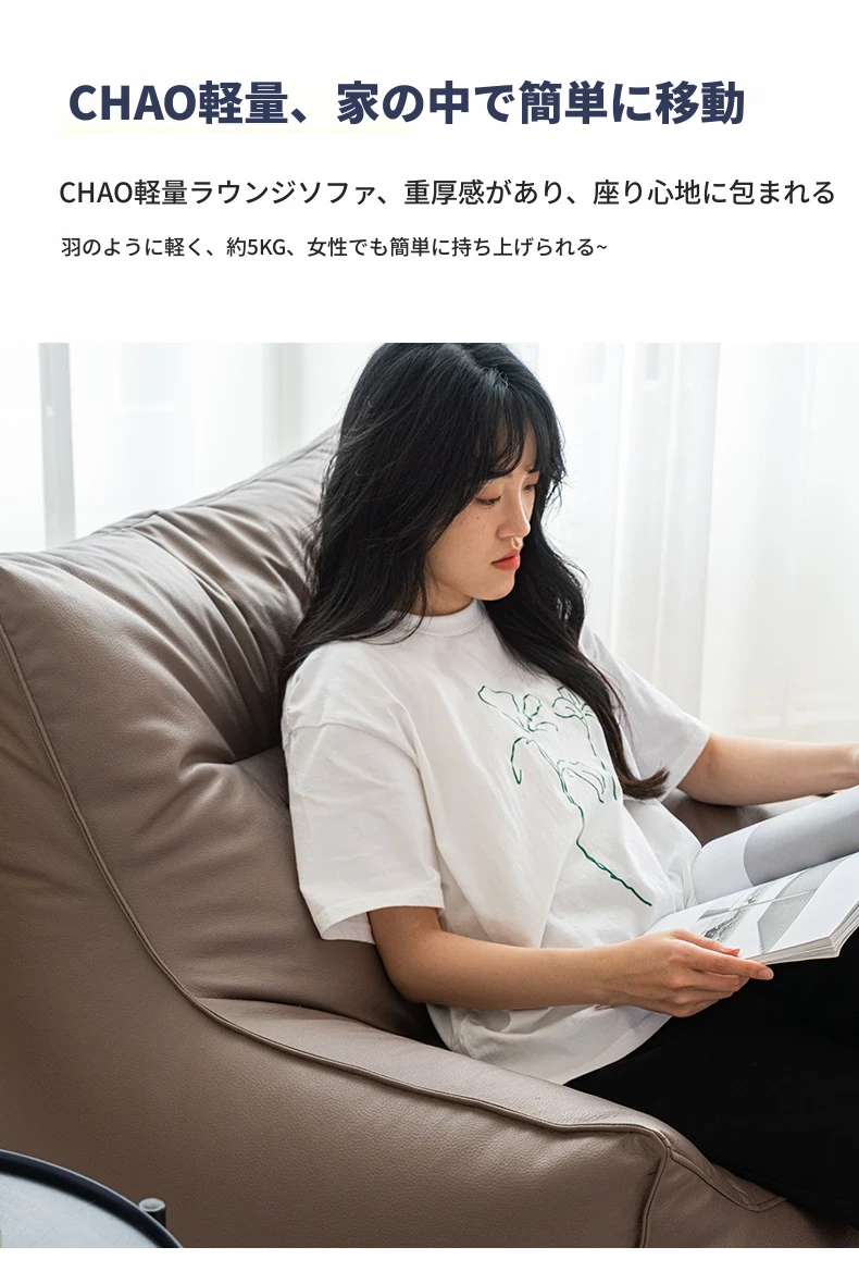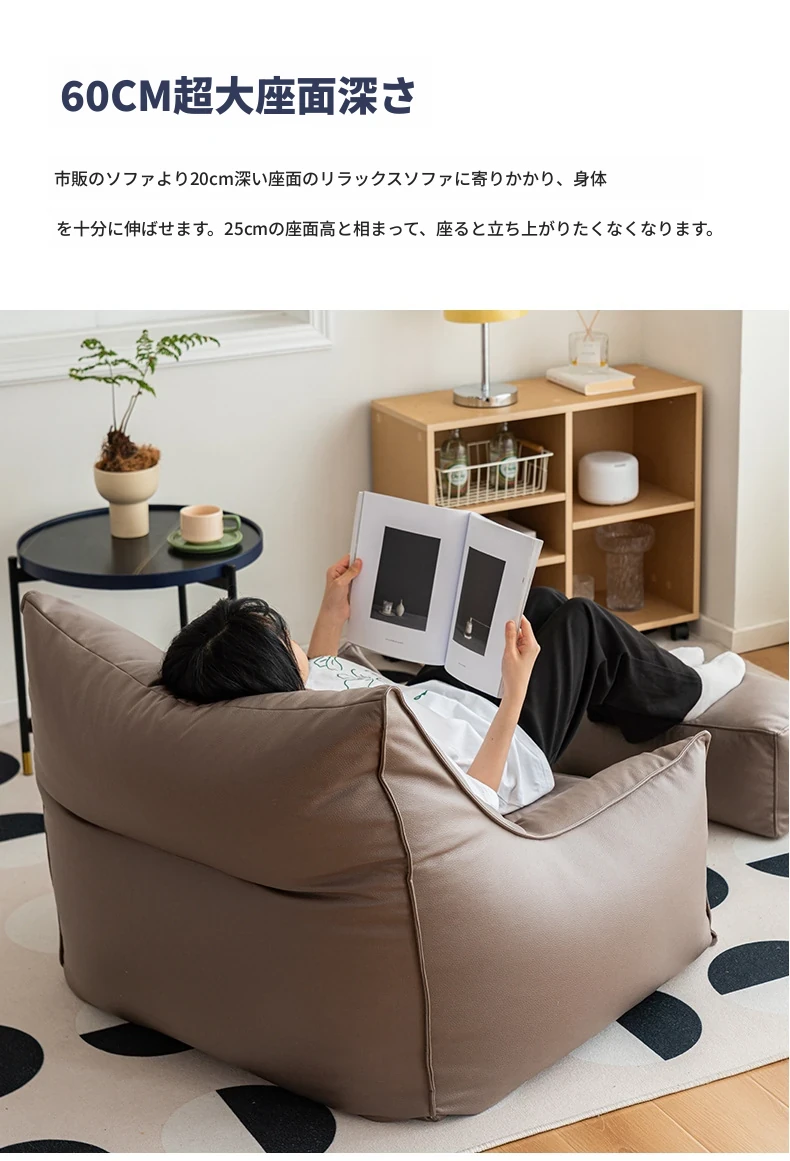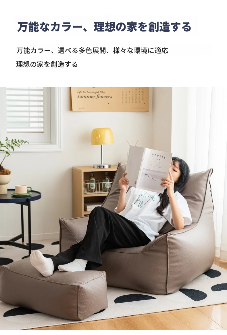 クリーミー風のリラックスソファ!豆袋デザインで、軽やかな贅沢感を楽しめる一人用ソファ。寝転んだり、寝たりできるので、寝室やバルコニーに最適な家用チェアです!