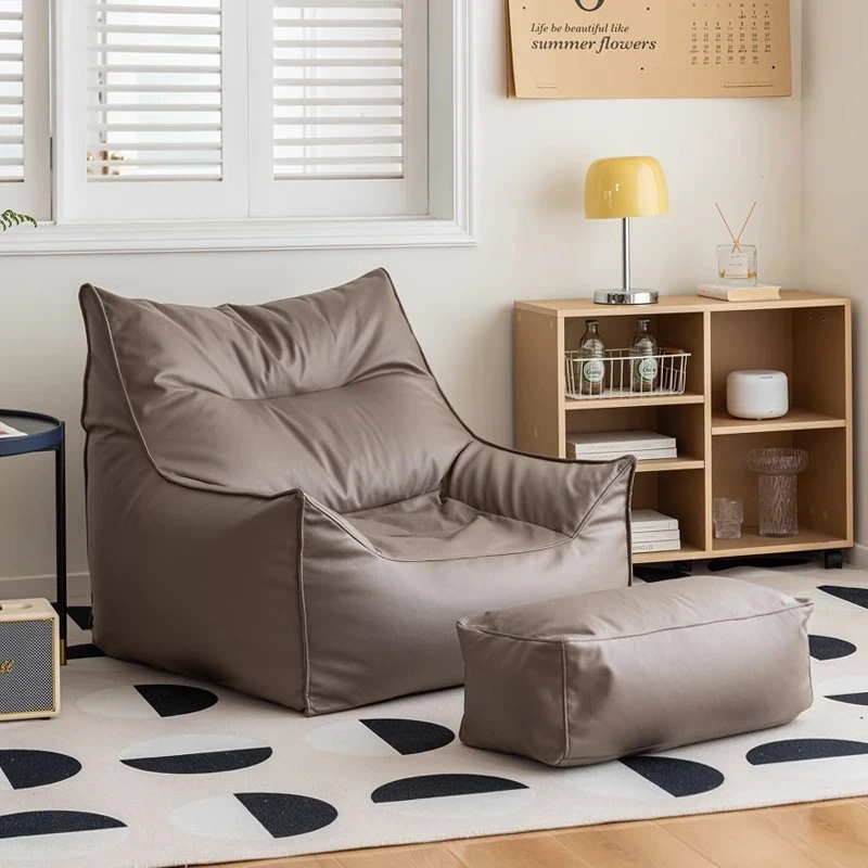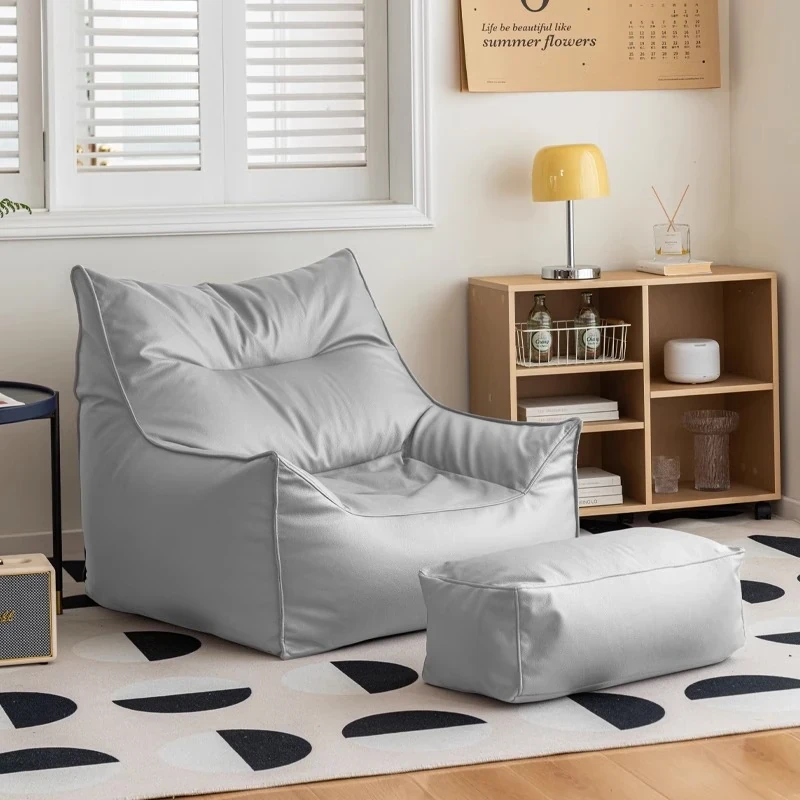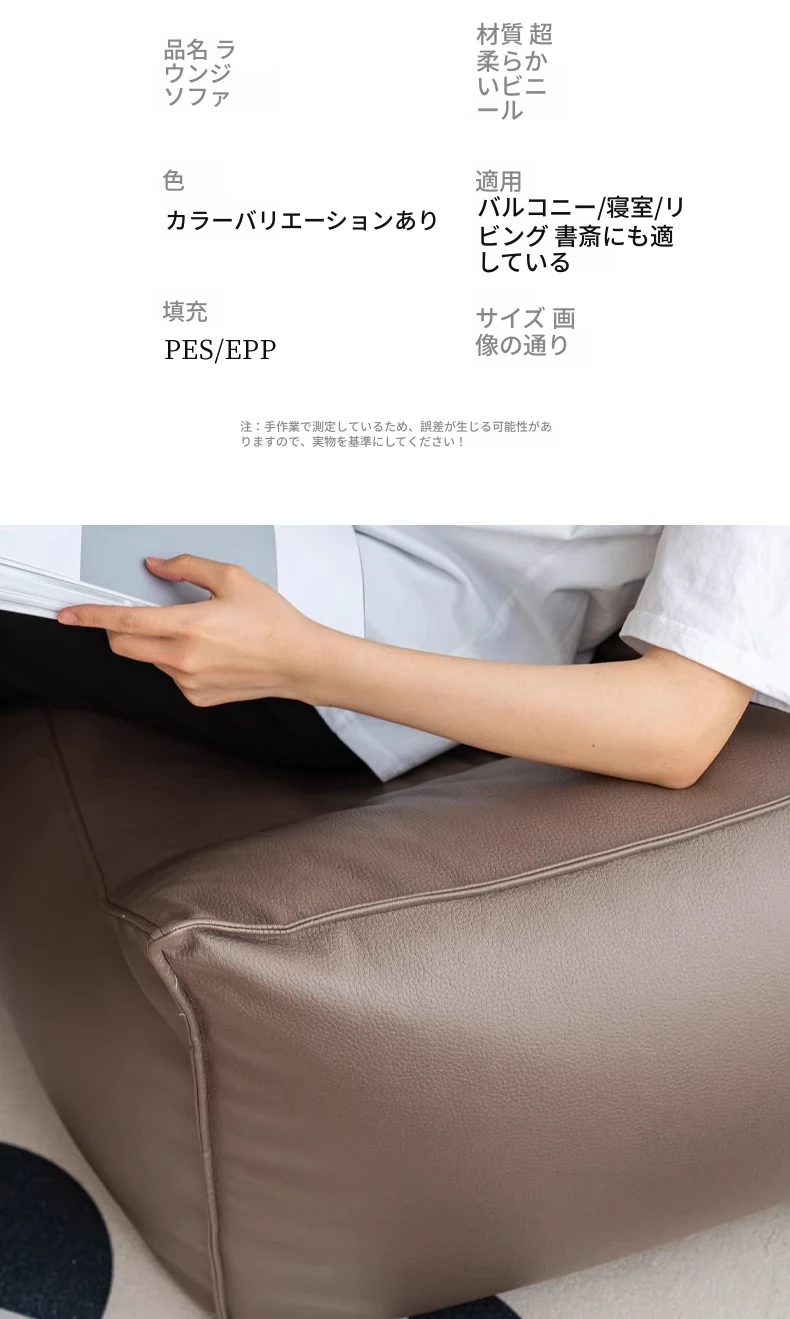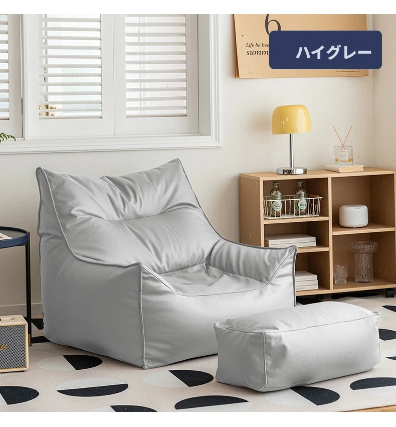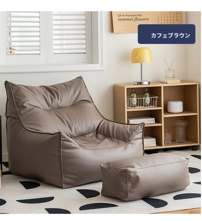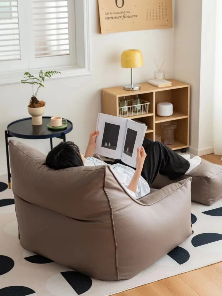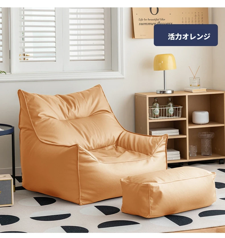 クリーミー風のリラックスソファ!豆袋デザインで、軽やかな贅沢感を楽しめる一人用ソファ。寝転んだり、寝たりできるので、寝室やバルコニーに最適な家用チェアです!