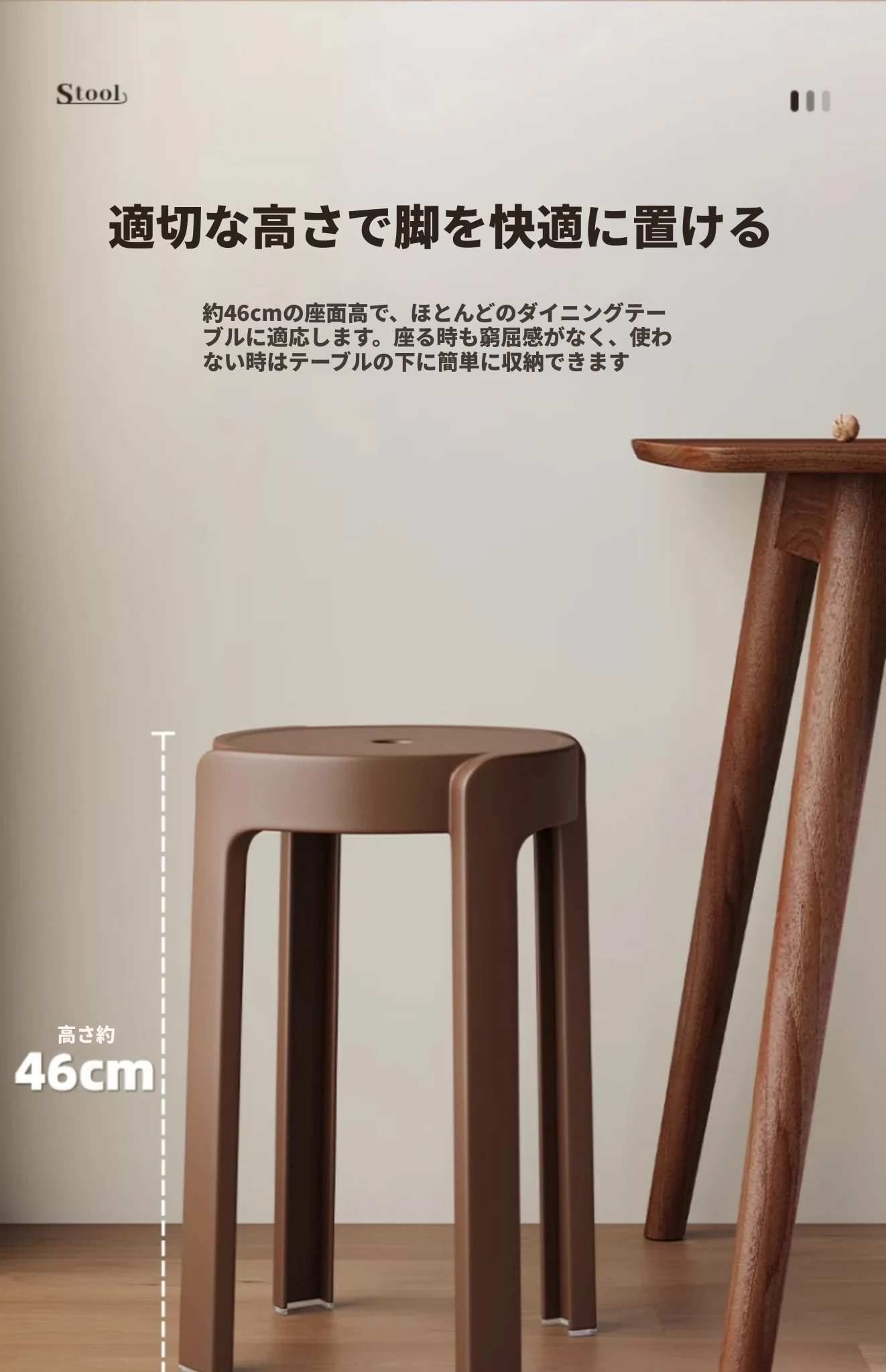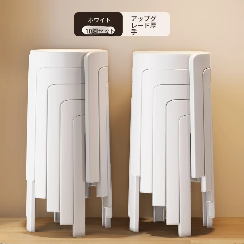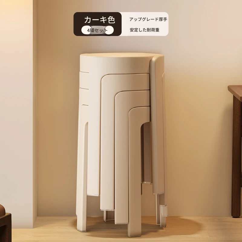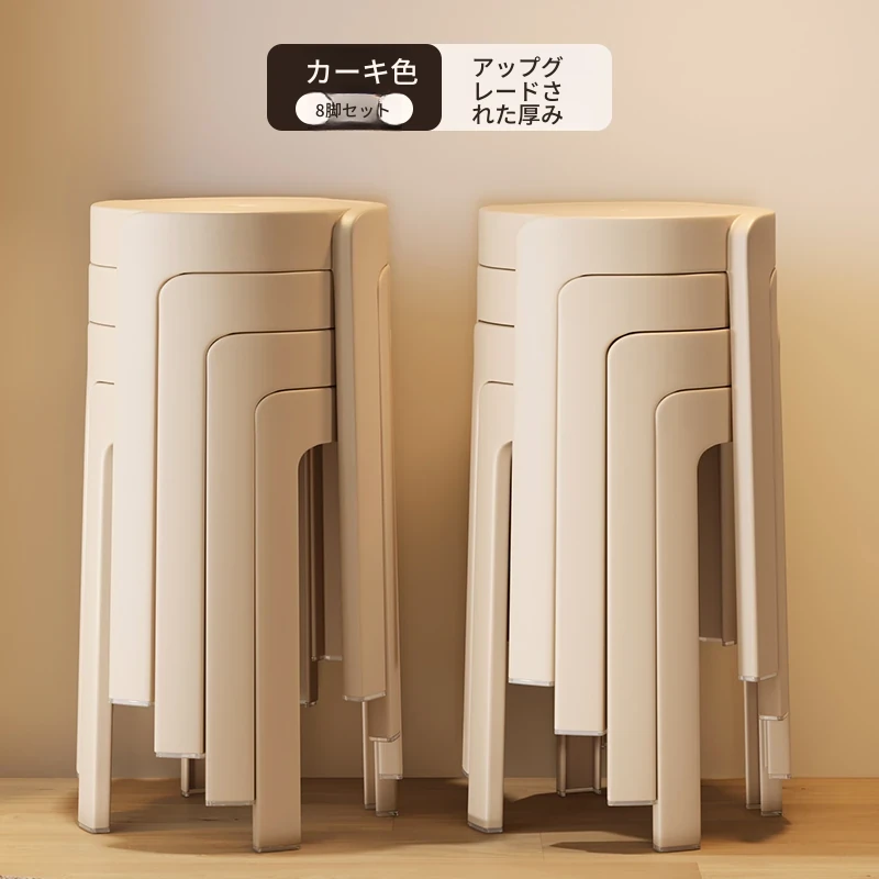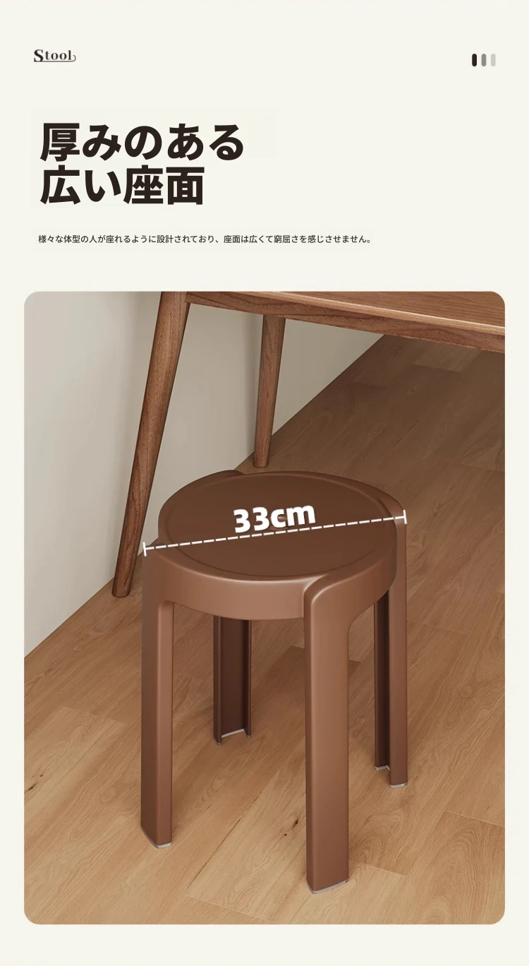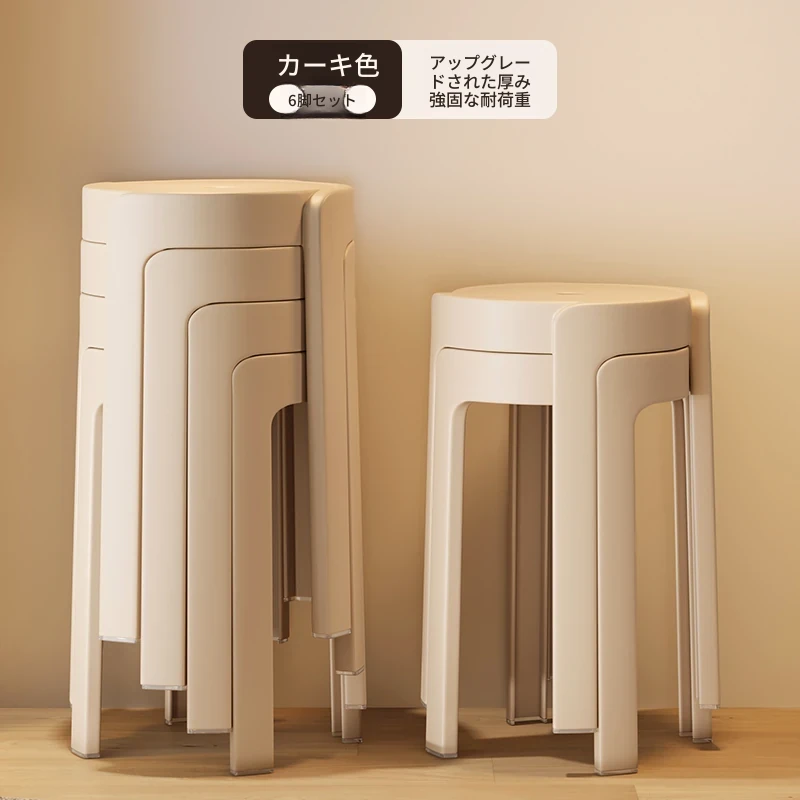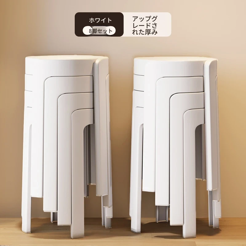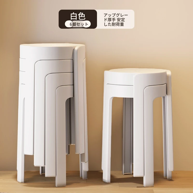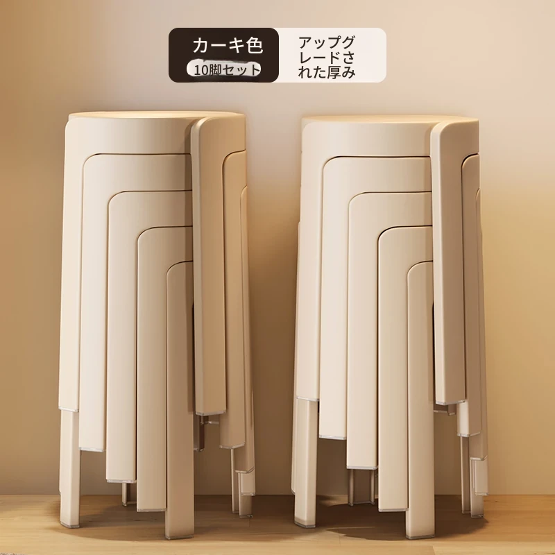 クリーム風のプラスチック製スツール|家庭用・スタッキング可能・頑丈で耐久性抜群|高級感溢れるデザイン|ダイニングテーブルのサブチェアにも最適な厚みのある椅子!
