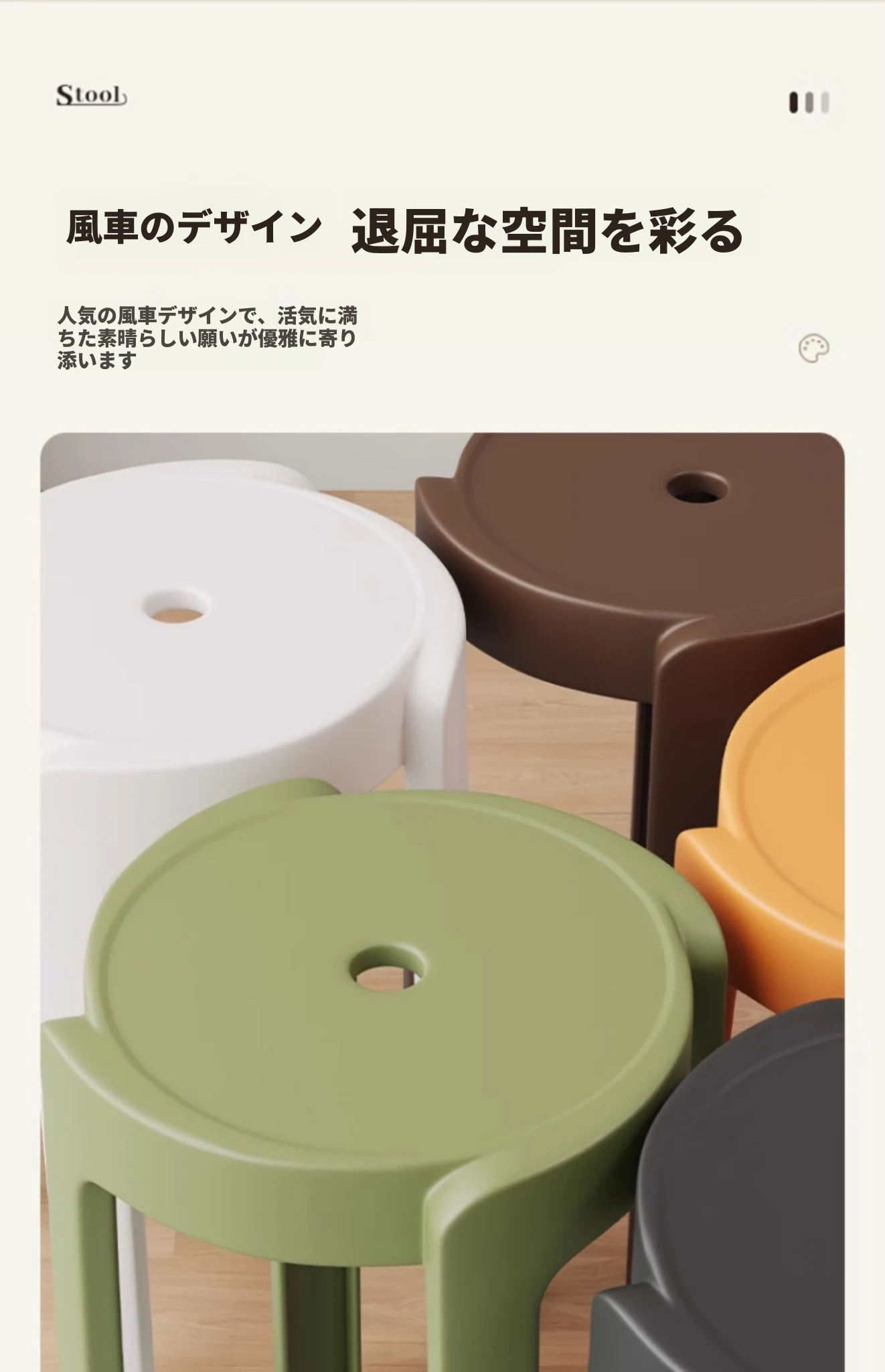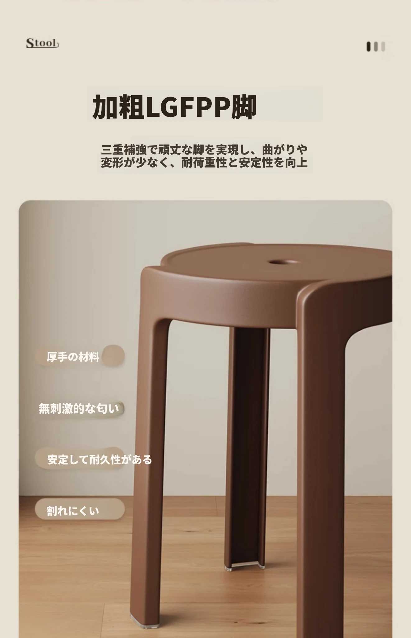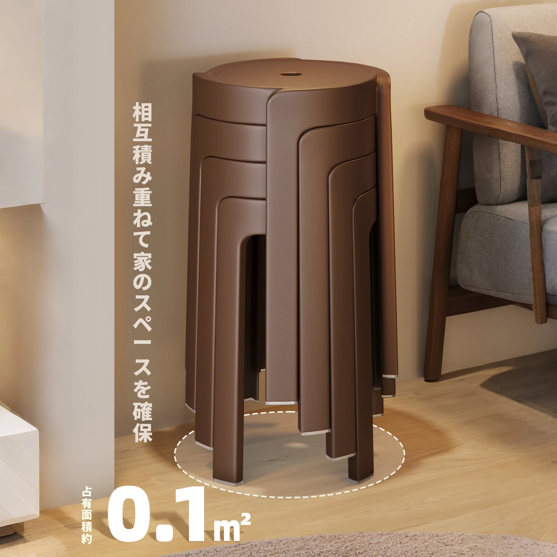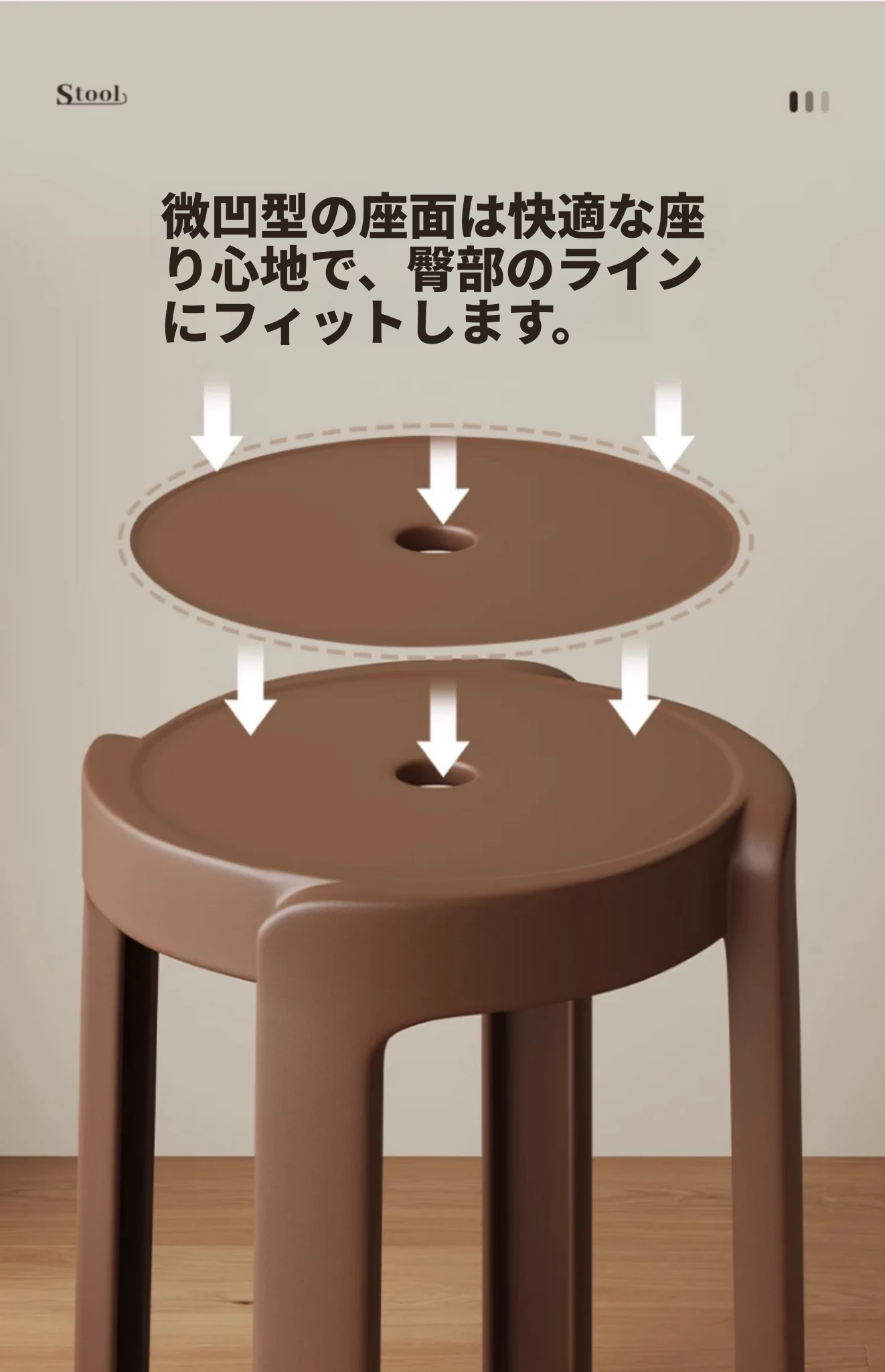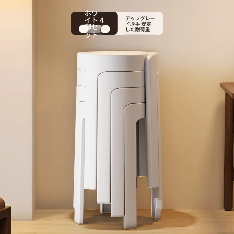 クリーム風のプラスチック製スツール|家庭用・スタッキング可能・頑丈で耐久性抜群|高級感溢れるデザイン|ダイニングテーブルのサブチェアにも最適な厚みのある椅子!