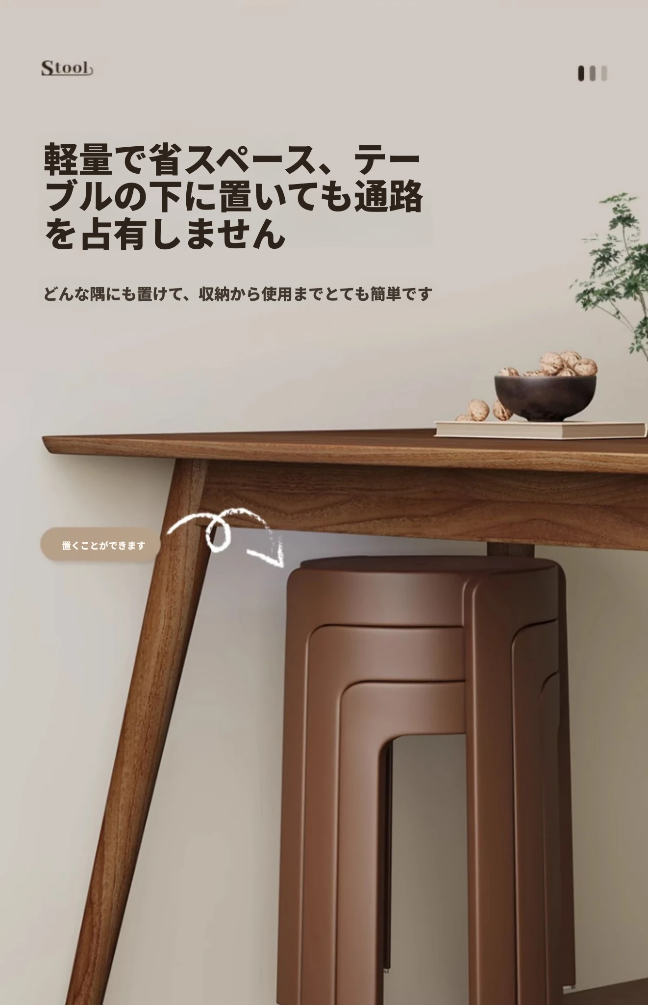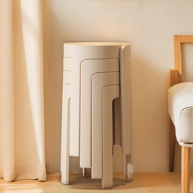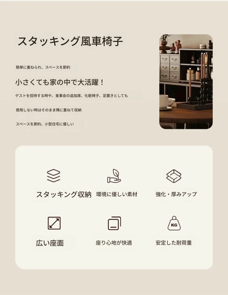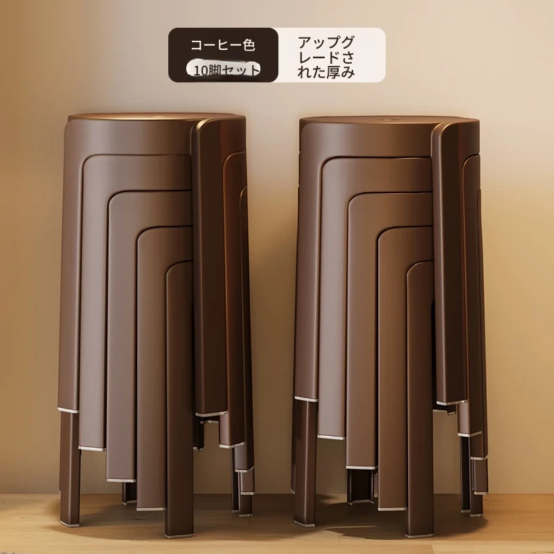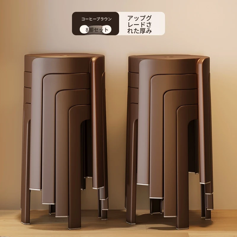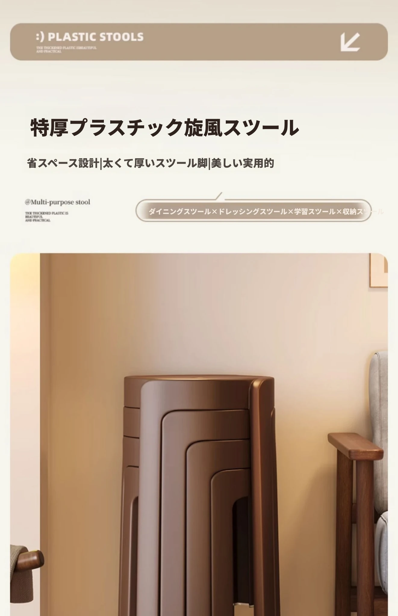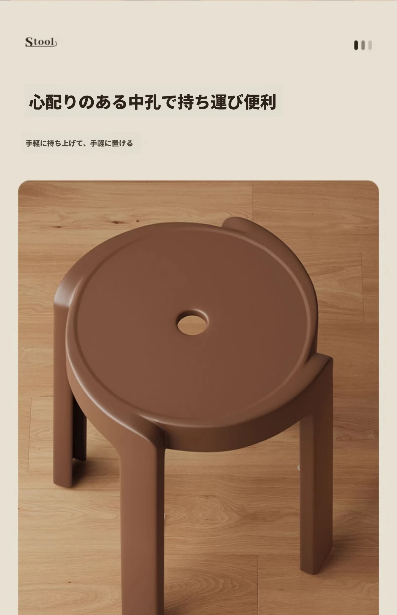 クリーム風のプラスチック製スツール|家庭用・スタッキング可能・頑丈で耐久性抜群|高級感溢れるデザイン|ダイニングテーブルのサブチェアにも最適な厚みのある椅子!