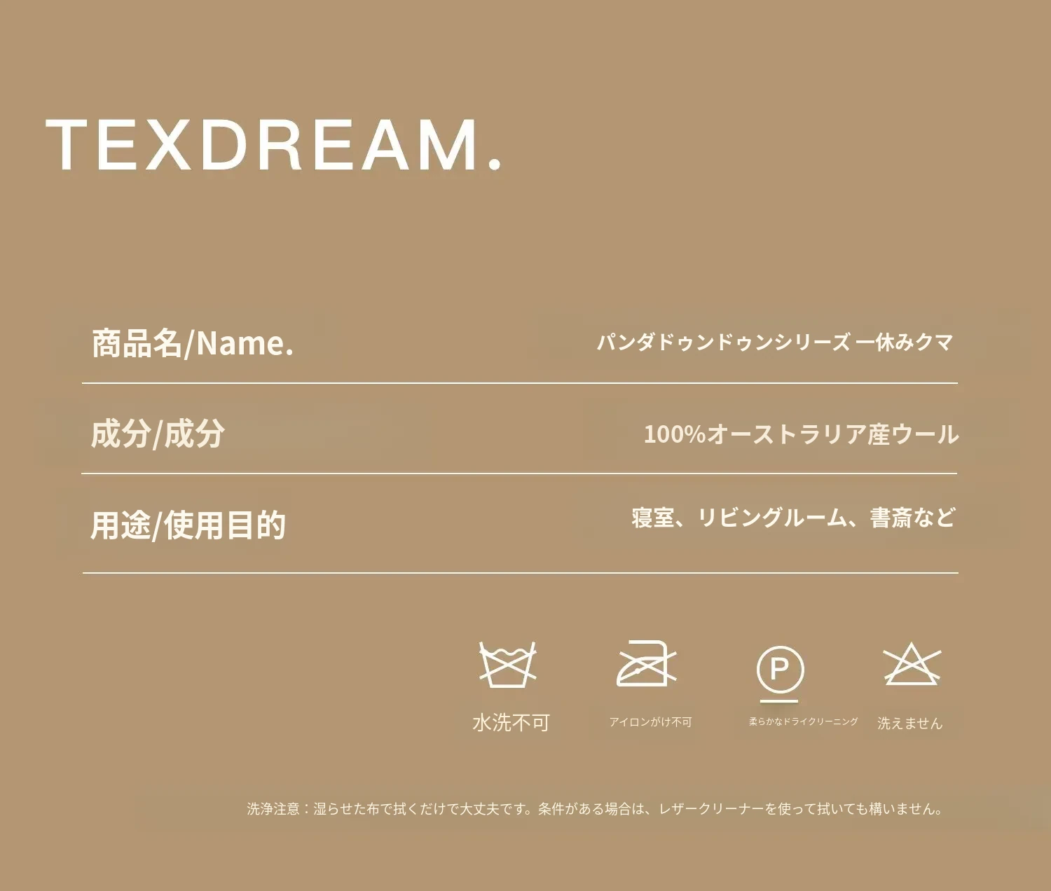 【パンダドゥンドゥンシリーズ】本物の羊毛、水洗いしないでください!