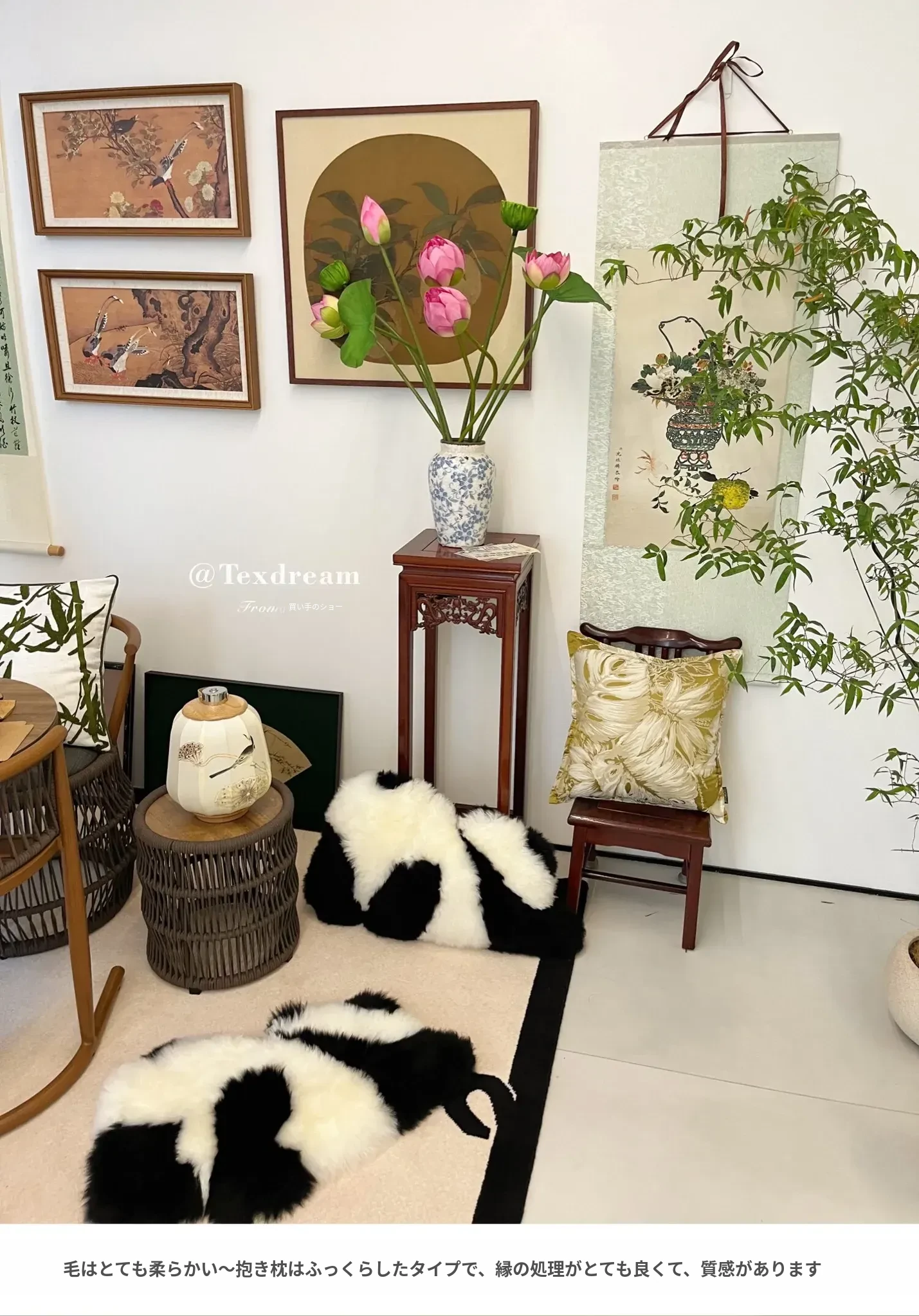 Texdreamのキュートなパンダ抱き枕!花柄デザインで、リビングやソファにぴったりのウールクッション。ふわふわの質感で、贈り物にも最適!あなたの空間に愛らしさをプラス!